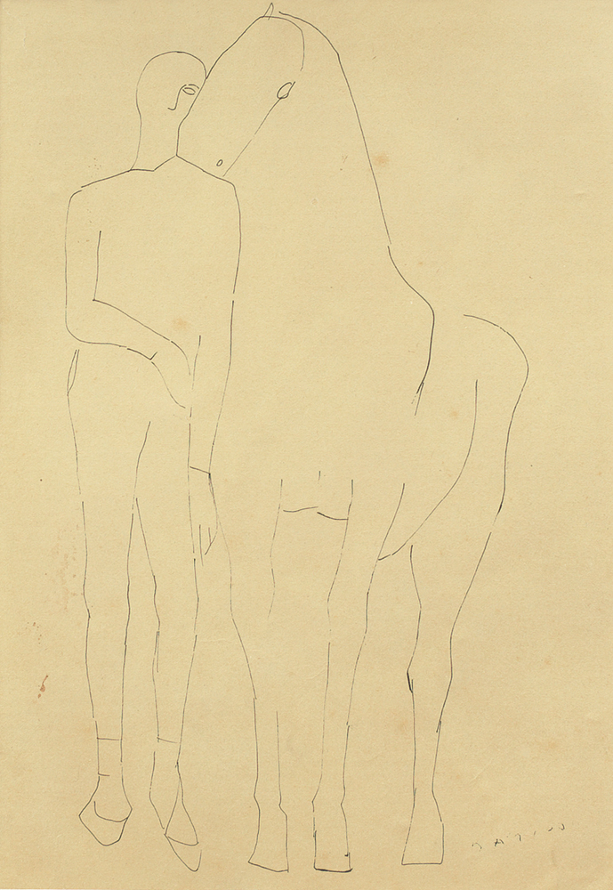 MARINO MARINI Pistoia 27/02/1901 - Viareggio (Lu) 06/08/1980 Cavallo e cavaliere, (1938) inchiostro di china su carta cm. 31,4x23,2; firma in basso a destra, opera registrata presso l'Archivio della Fondazione Marino Marini come da dichiarazione su foto.