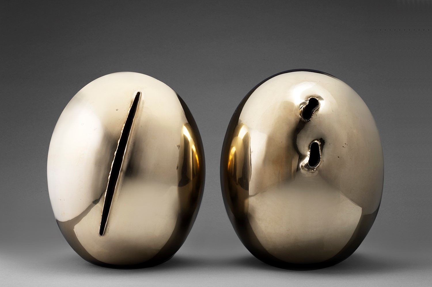 Lucio Fontana Concetto Spaziale, Natura 1967 coppia di sculture in bronzo lucidato h cm 27 (cadauna)