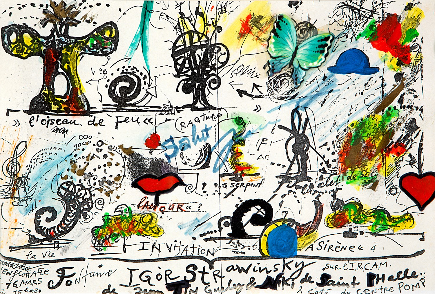 Jean Tinguely L'oiseu de Feu di I. Strawinsky tecnica mista su carta cm...