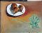 SALVATORE PROVINO Bagheria (Pa) 04/06/1943  Natura morta con pere e fiore, 1964 olio su tela cm. 40x50, firma e anno in basso a destra e al retro, dichiarazione d'autenticità dell'artista su foto.