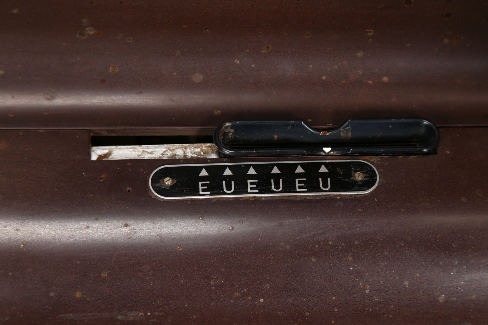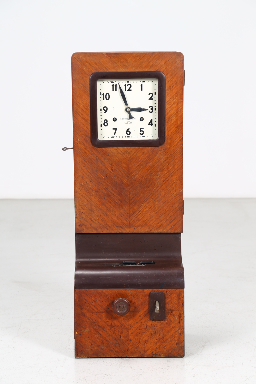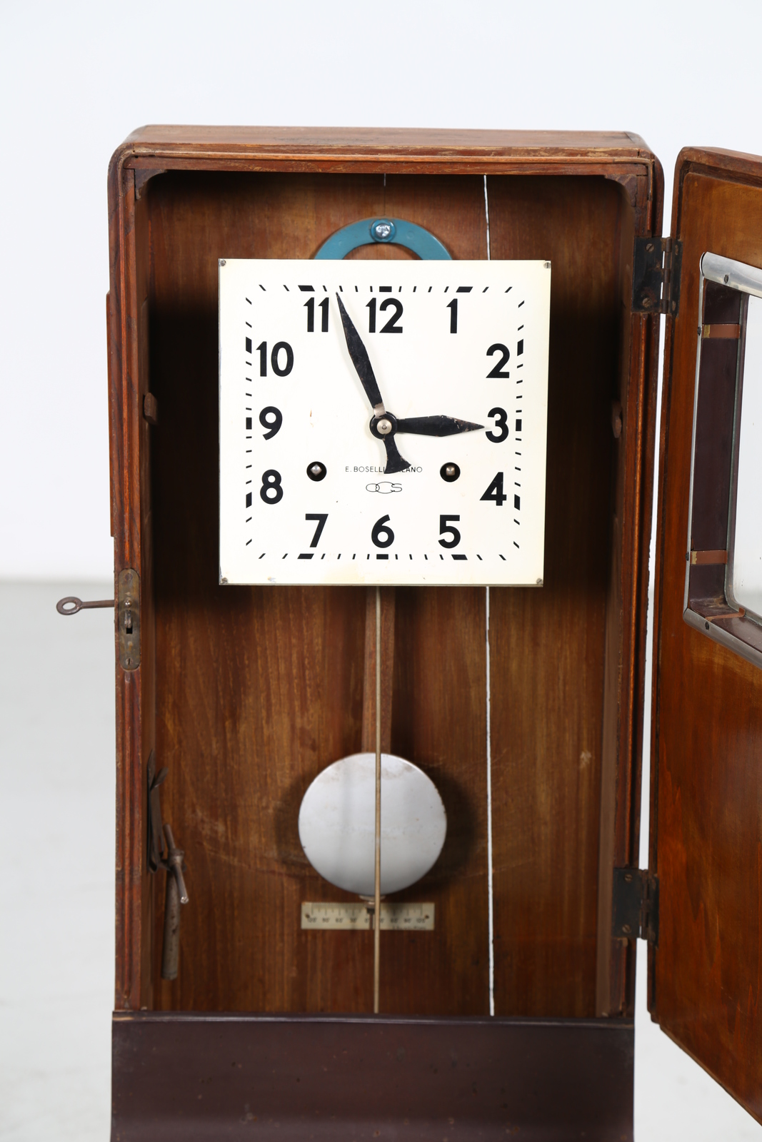 PONTI GIO' (1891 - 1979) Employee control clock. Wood and metal. Cm 38,00 x 102,00 x 34,00. Wood and Bakelite and metal, for Boselli, 1936.