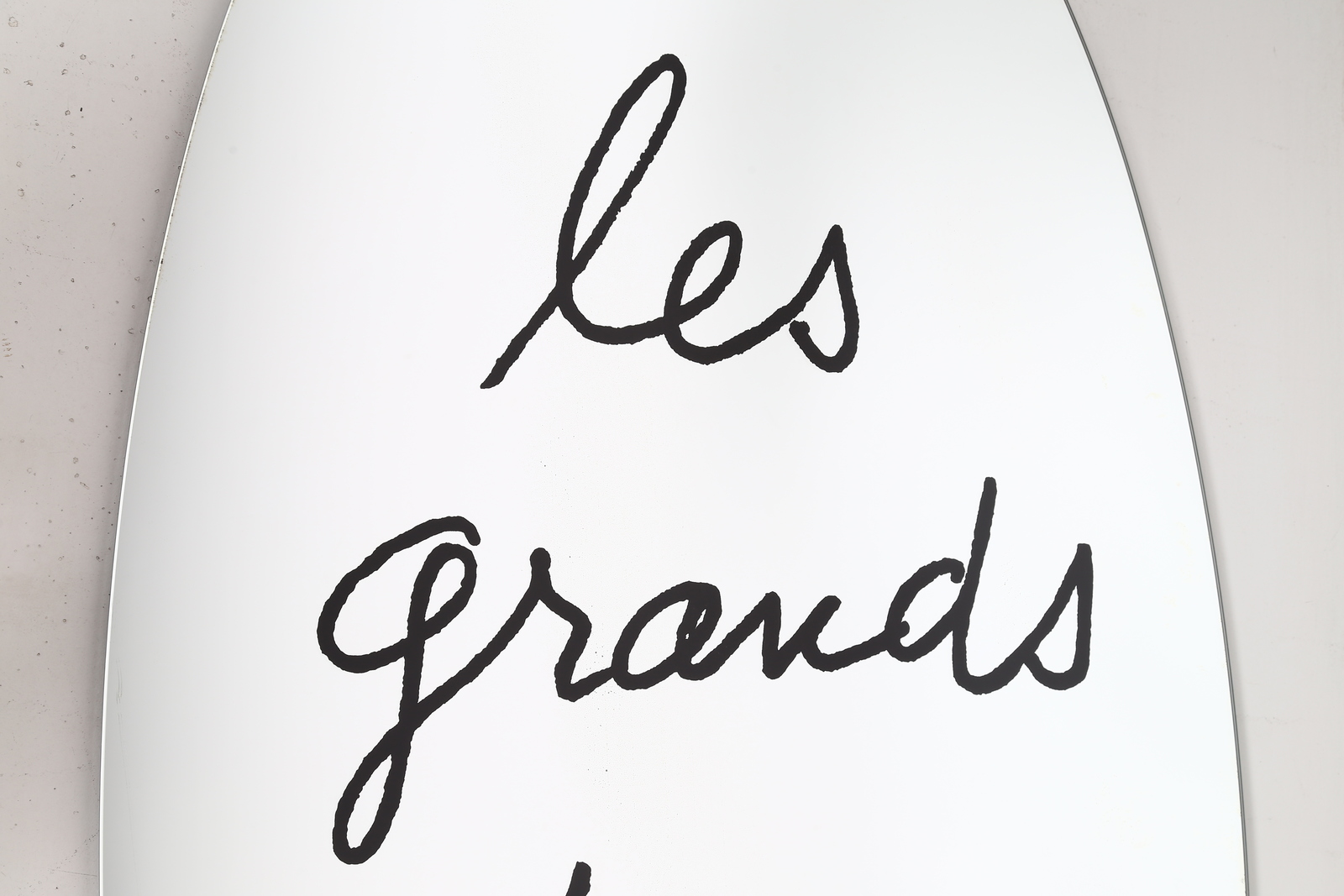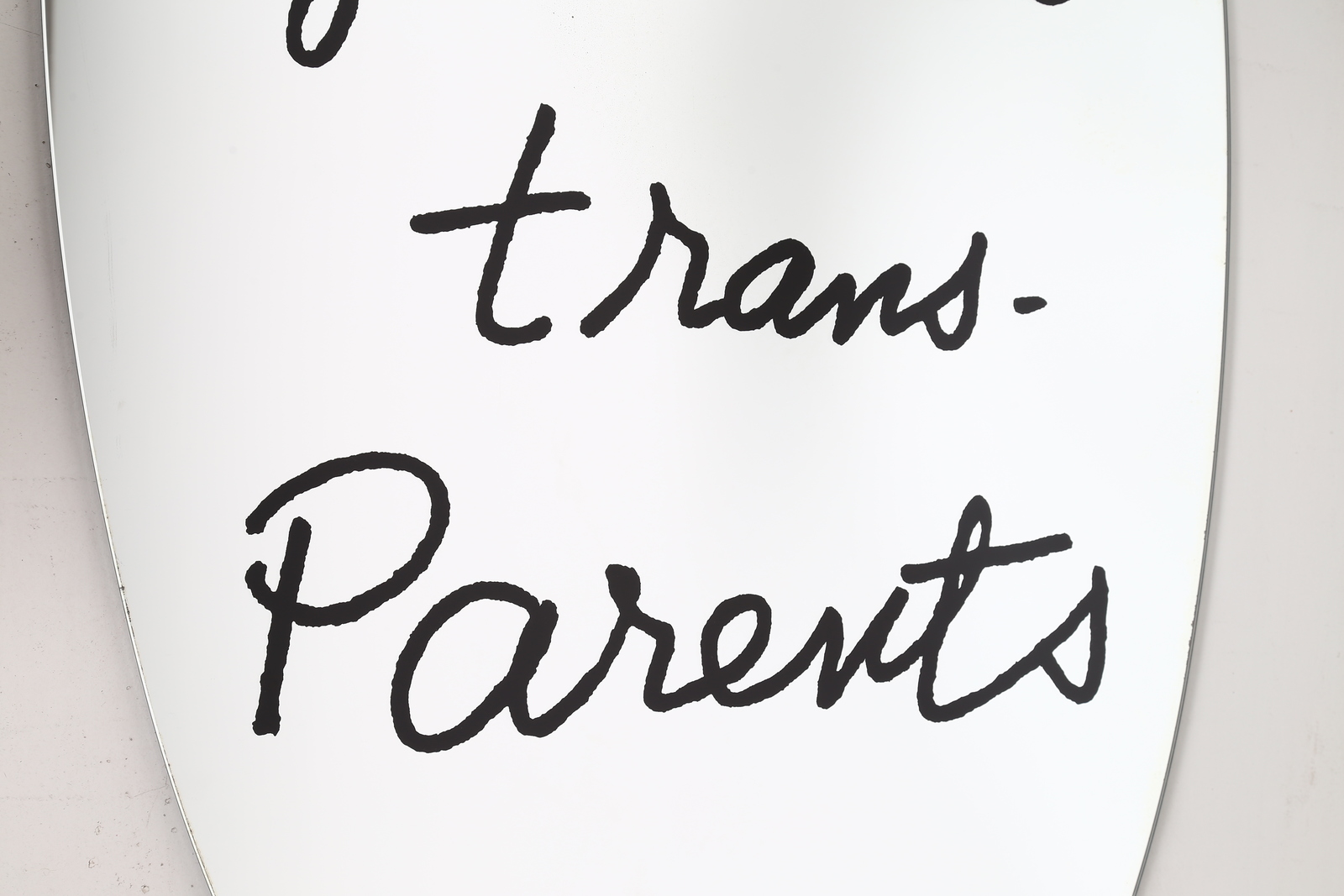 MAN RAY (1890 - 1976) "Les grands trans-parents" mirror . Mirror. Cm 92,00 x 180,00 x 2,00. Silk-screened elliptical mirror with rigid polyurethane support. Serial production of the original work by Man Ray of 1938. For Cassina, 1971.