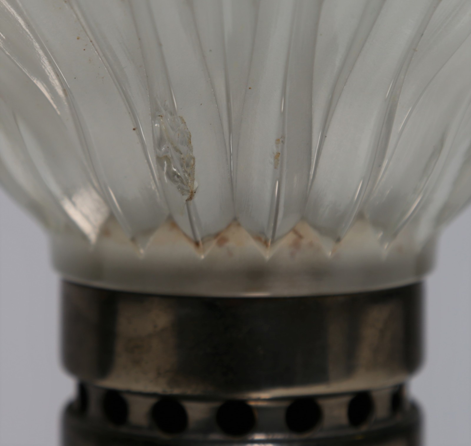 STUDIO BBPR (BANFI, BELGIOIOSO, PERESSUTTI, ROGERS) Lampada da tavolo mod. Polinnia. Metallo e vetro. Cm 26,00 x 45,00 x 26,00. Metallo e vetro, per Artemide,1964. (Vetro scheggiato),