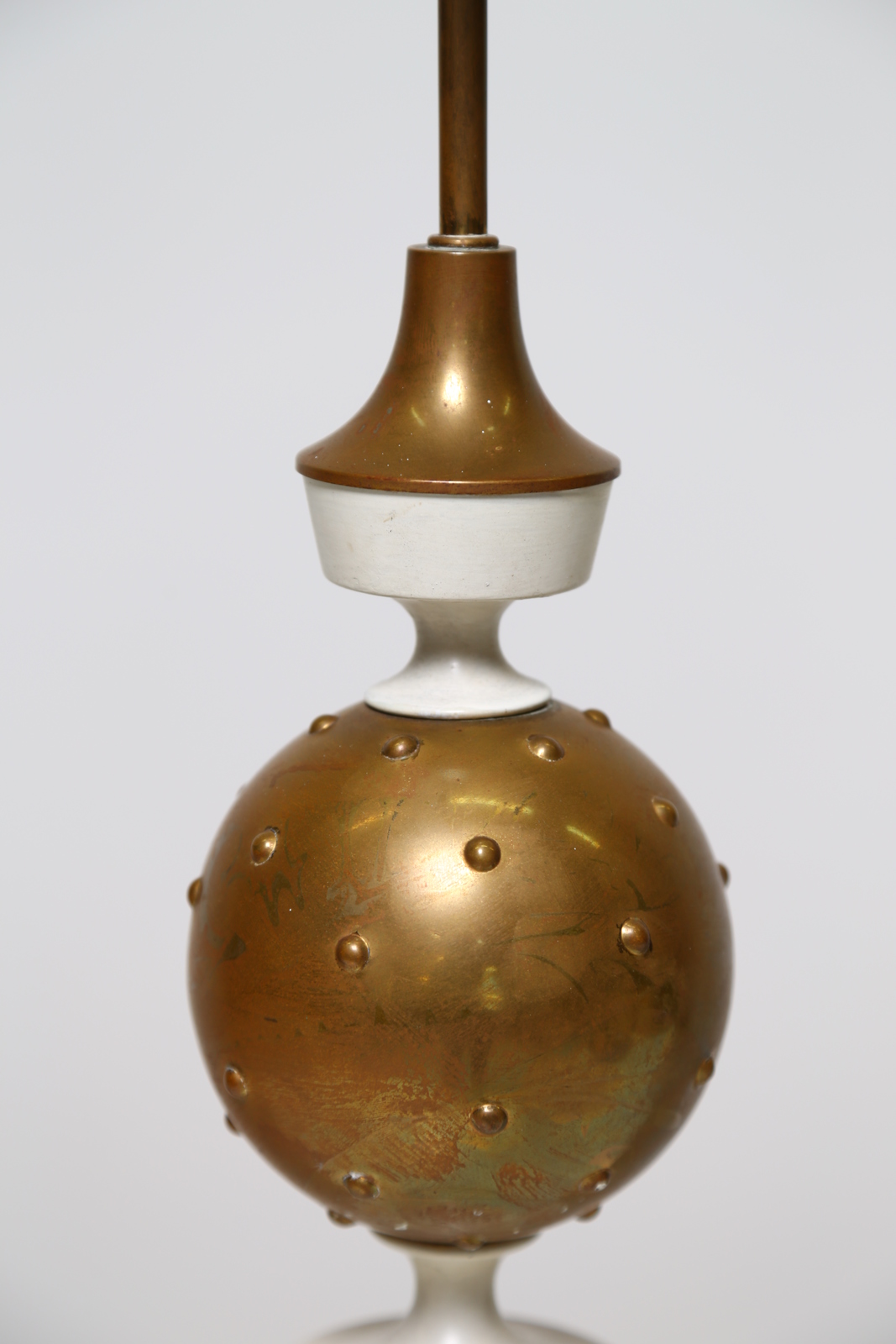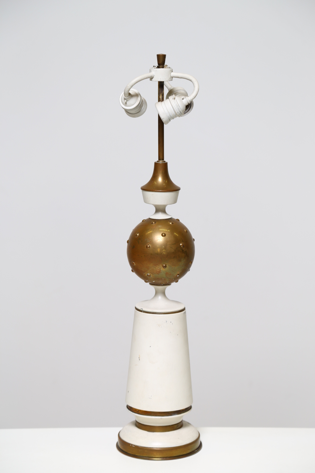 STILNOVO Lampada da tavolo. Metallo laccato e ottone. Cm 15,00 x 67,00 x 15,00. Ottone e matallo laccato, marchio presente alla base, anni 50.