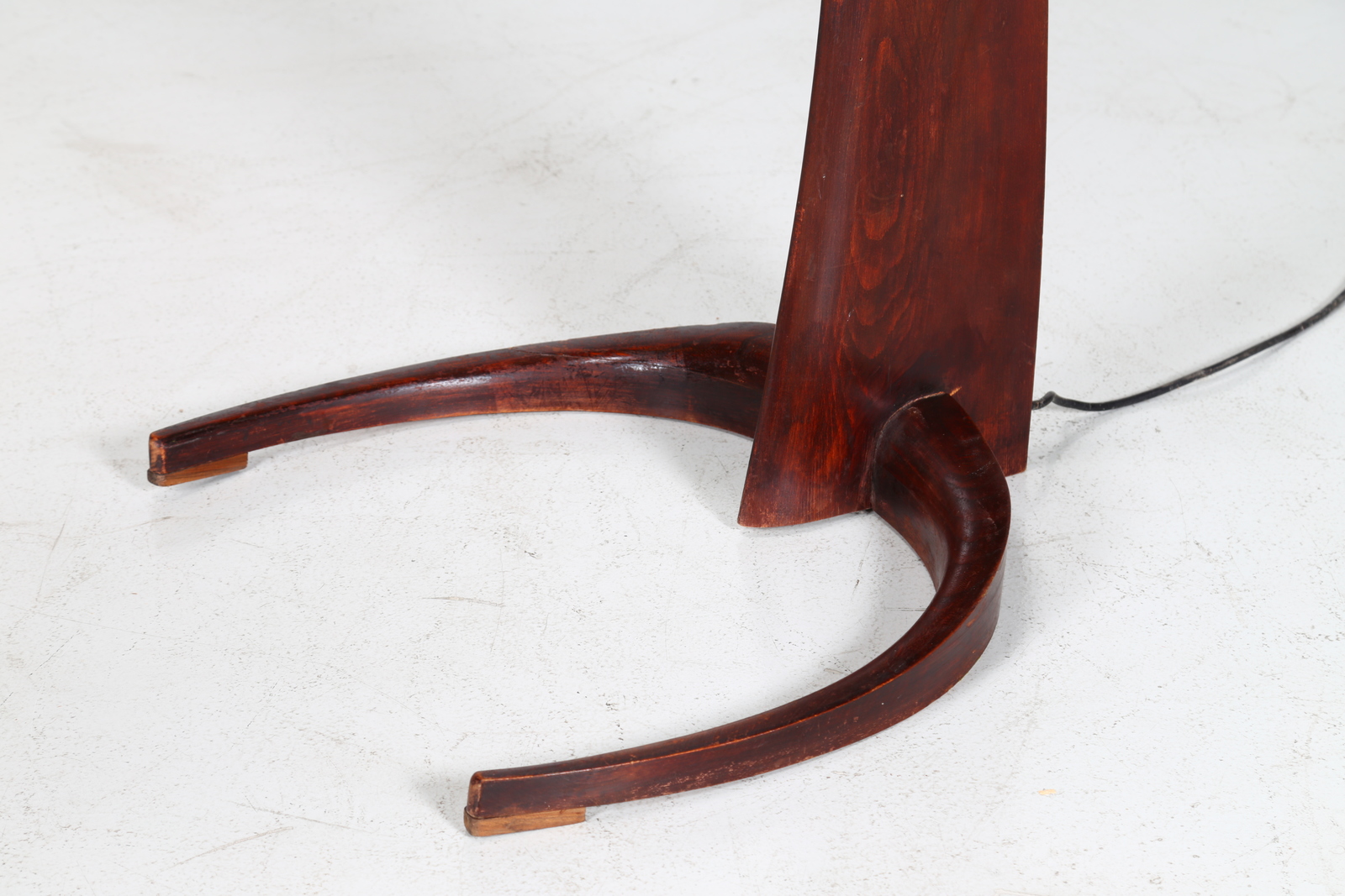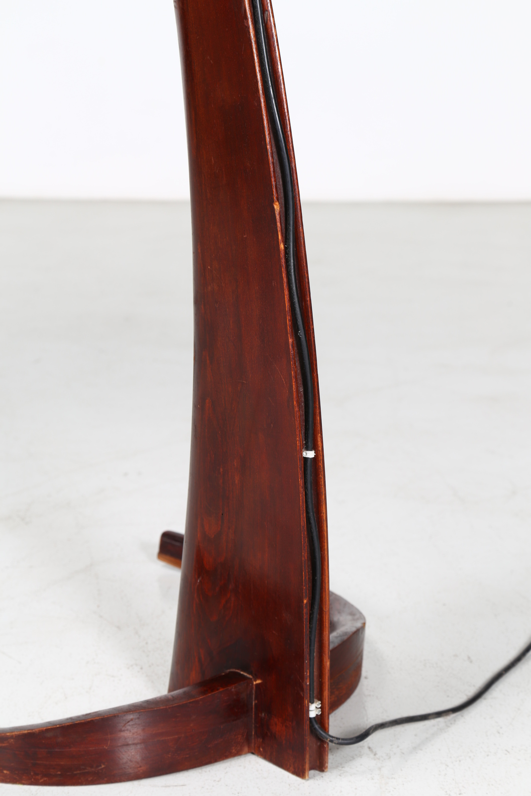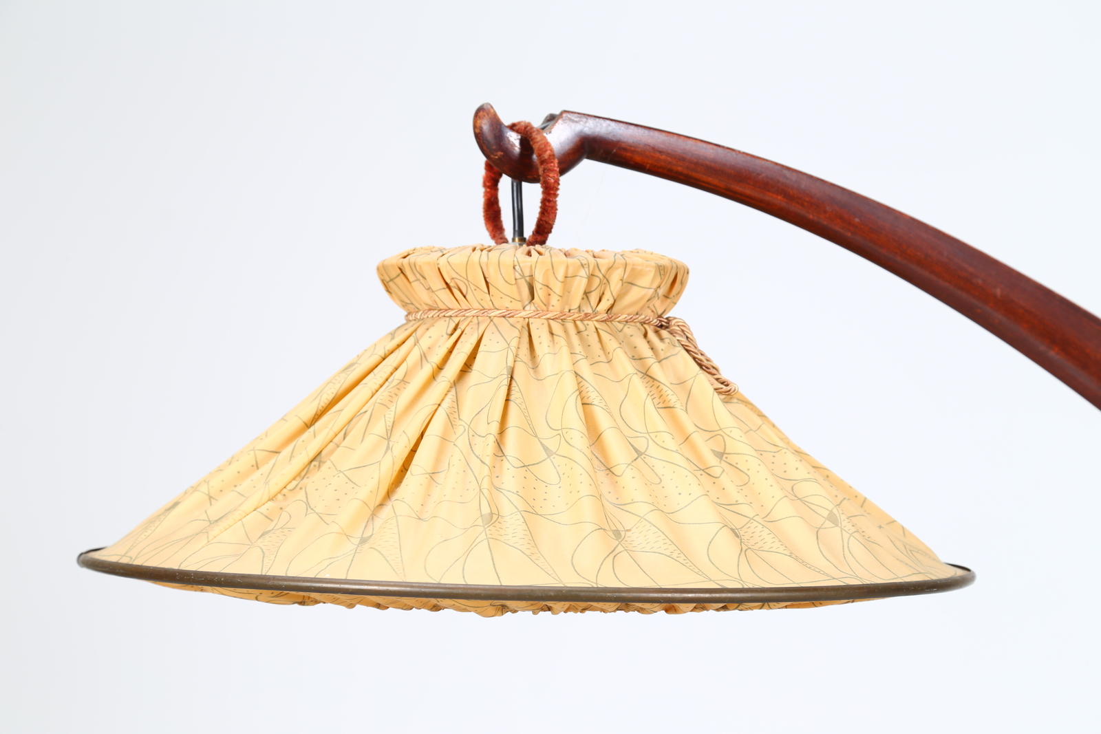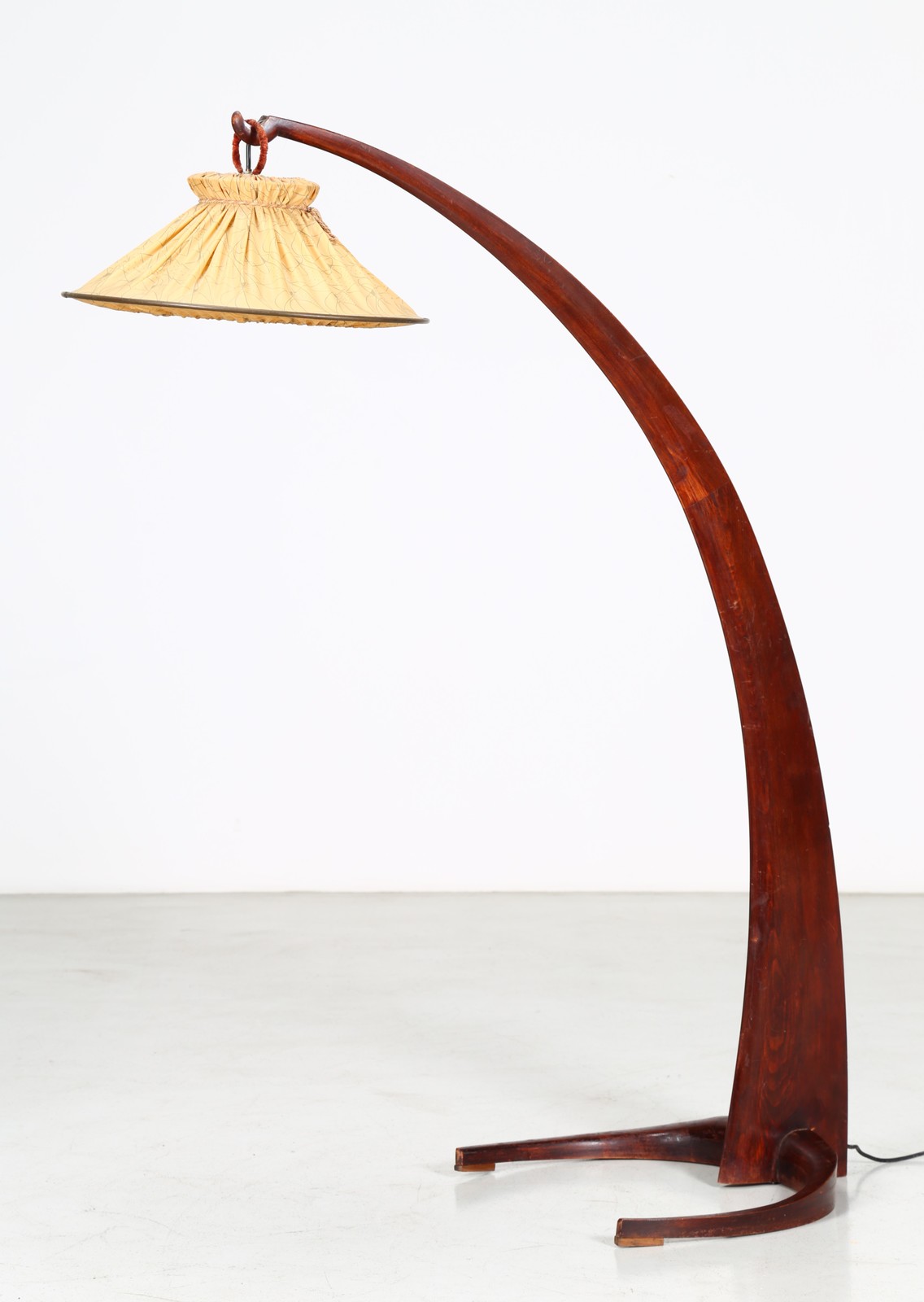 ITALIAN MANUFACTURE Floor lamp. Wood, fabric and brass. Cm 140,00 x 170,00 x 59,00. Fabric, wood and brass. 50s.