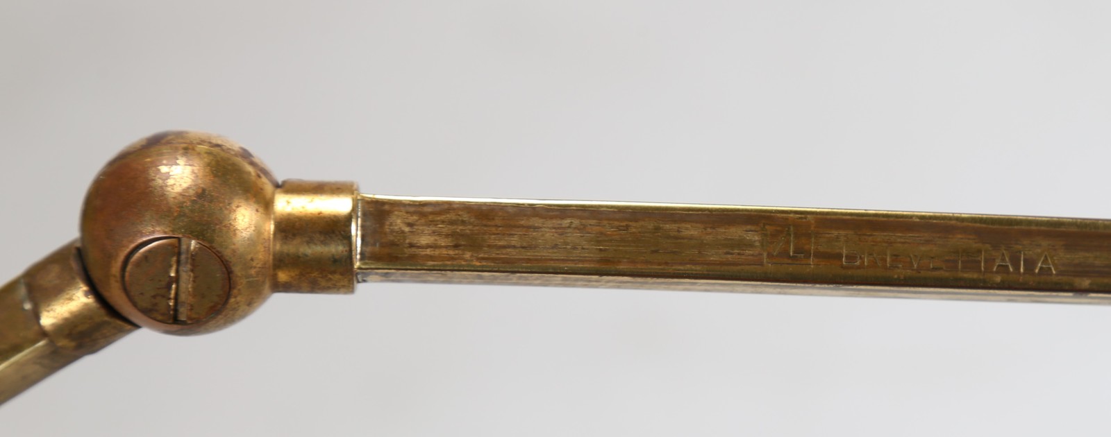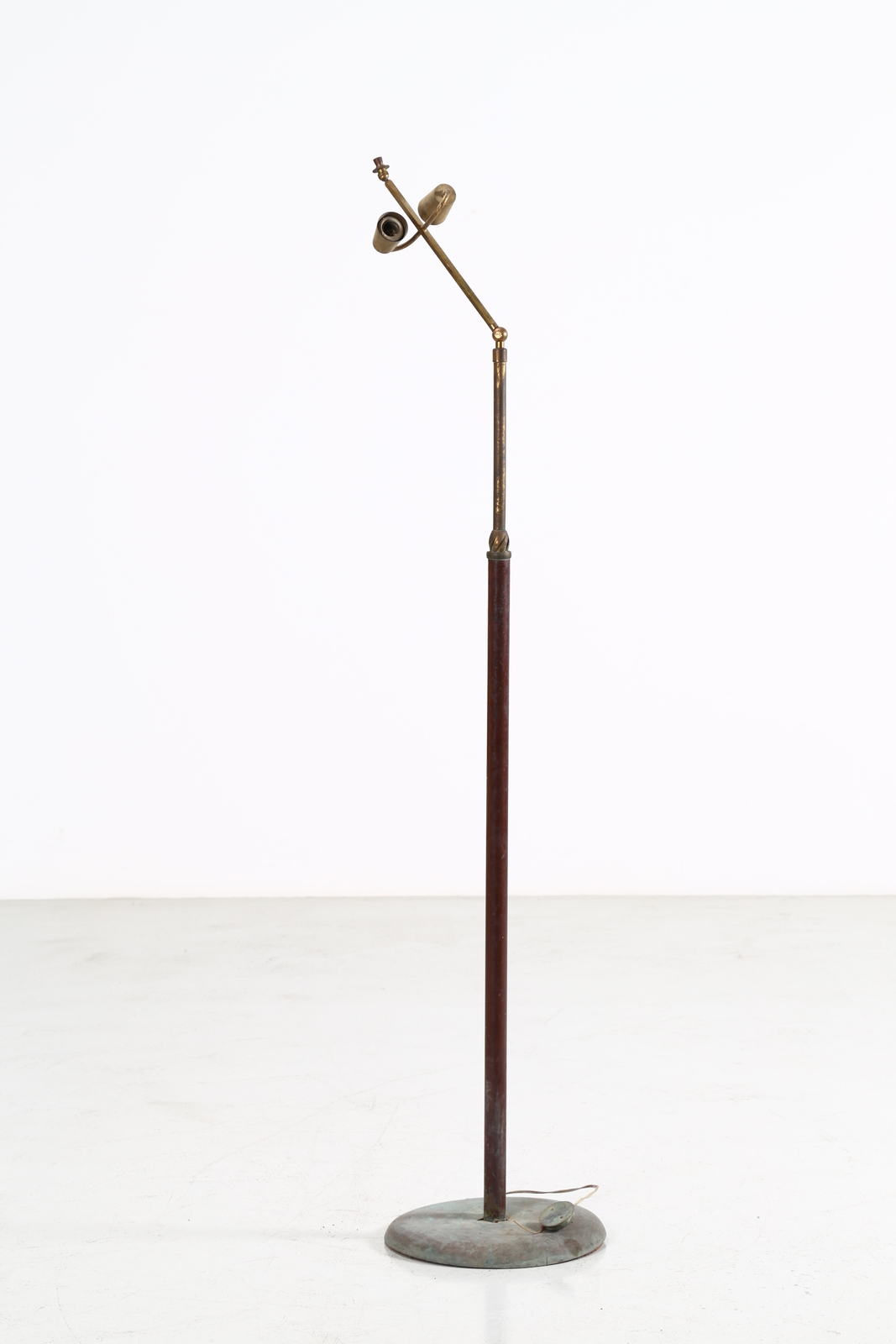 ARREDOLUCE Floor lamp. Aluminium and brass.. Cm 140,00 x 176,00 x 34,00. Brass and aluminum, present trademark, 50s.
