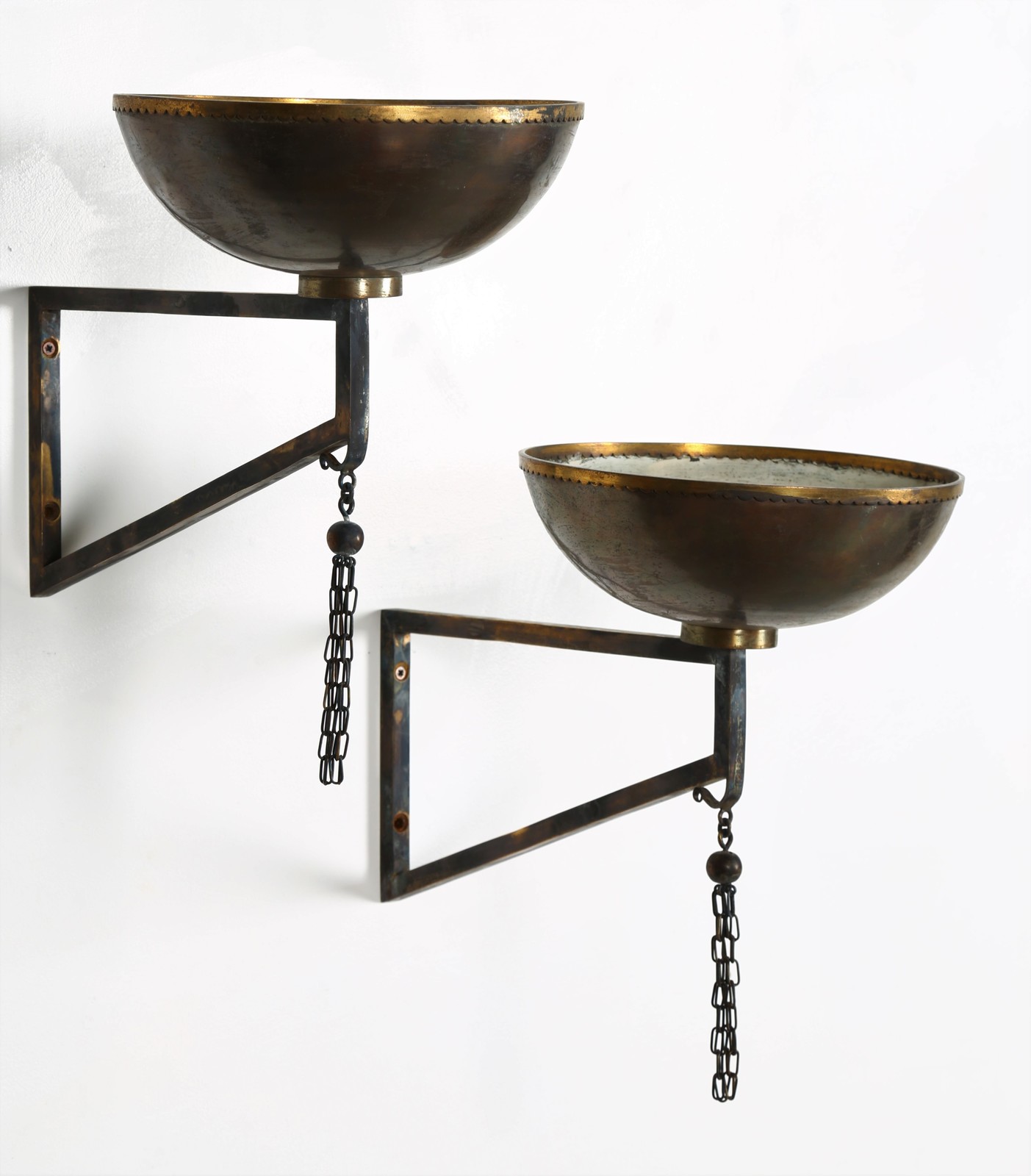 MANIFATTURA ITALIANA Coppia appliques. . Cm 27,50 x 30,00 x 50,00. Ottone