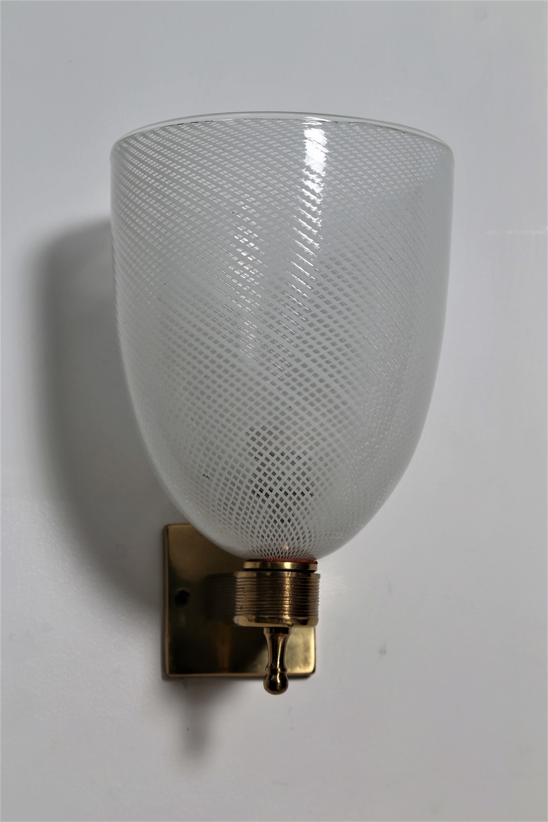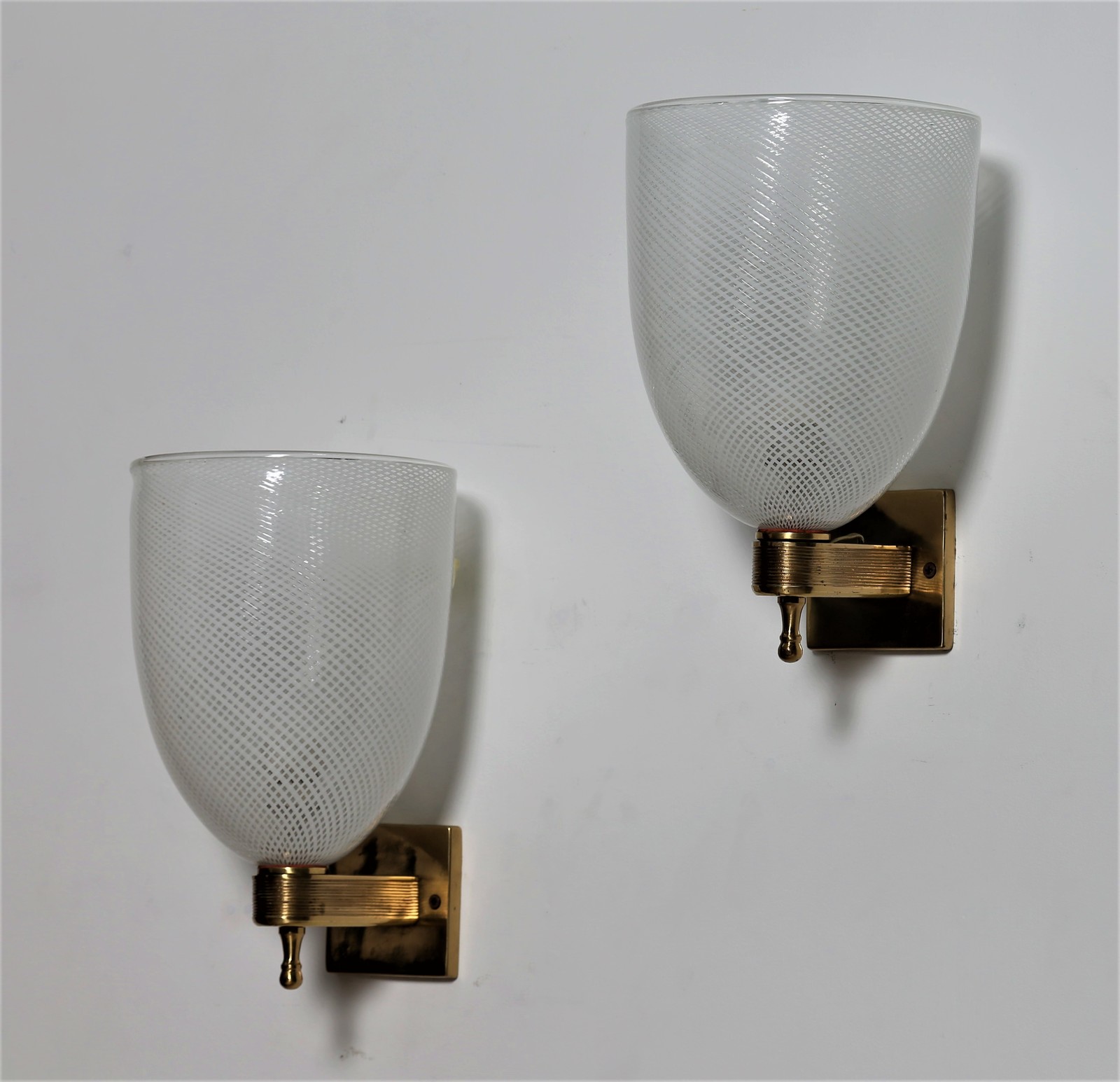VENINI Pair of wall lamps. . Cm 21,00 x 33,50 x 22,50. Reticulated glass and brass, 50s.