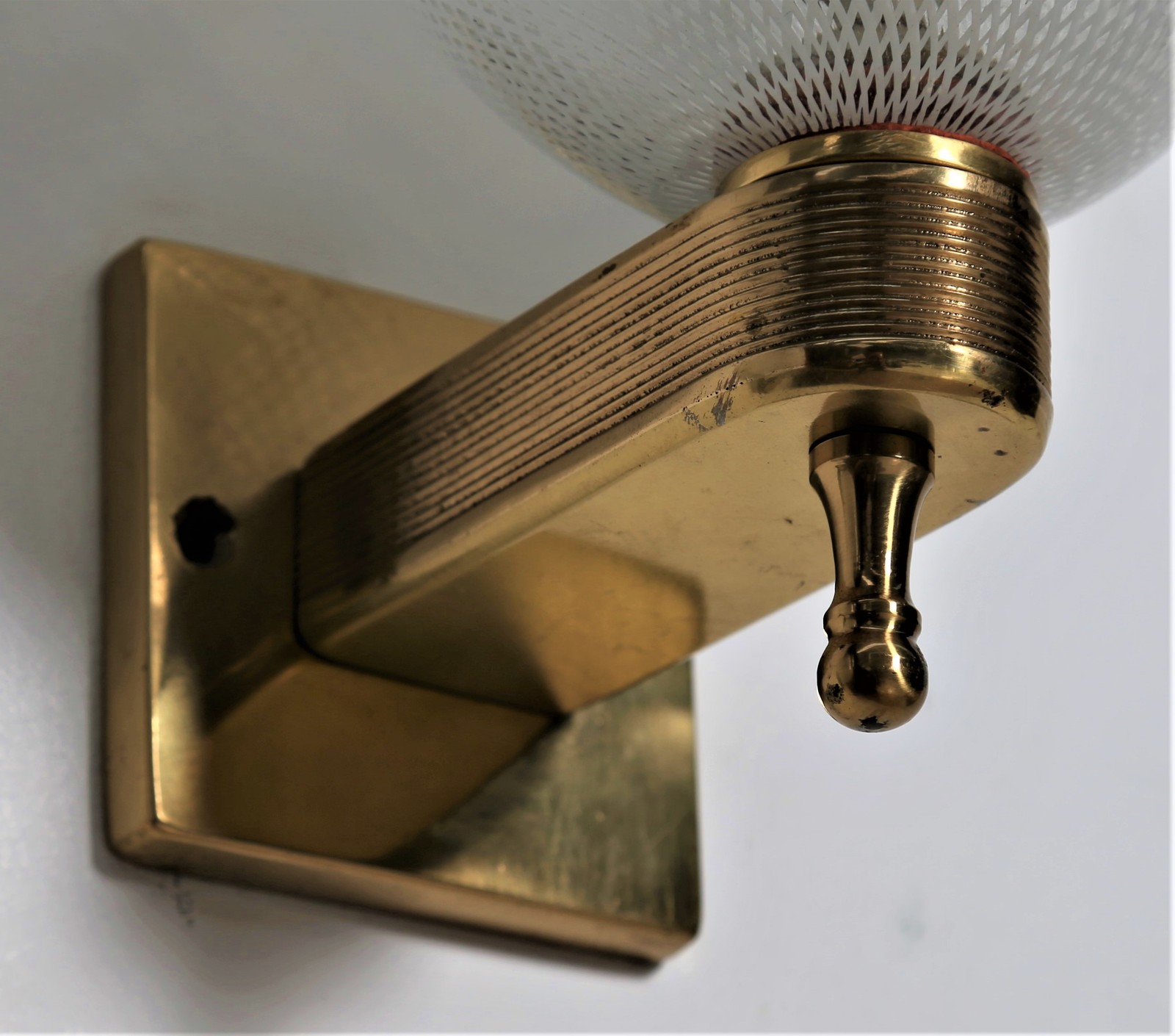 VENINI Coppia di lampade da parete . . Cm 21,00 x 33,50 x 22,50. Vetro reticello e ottone, anni 50.