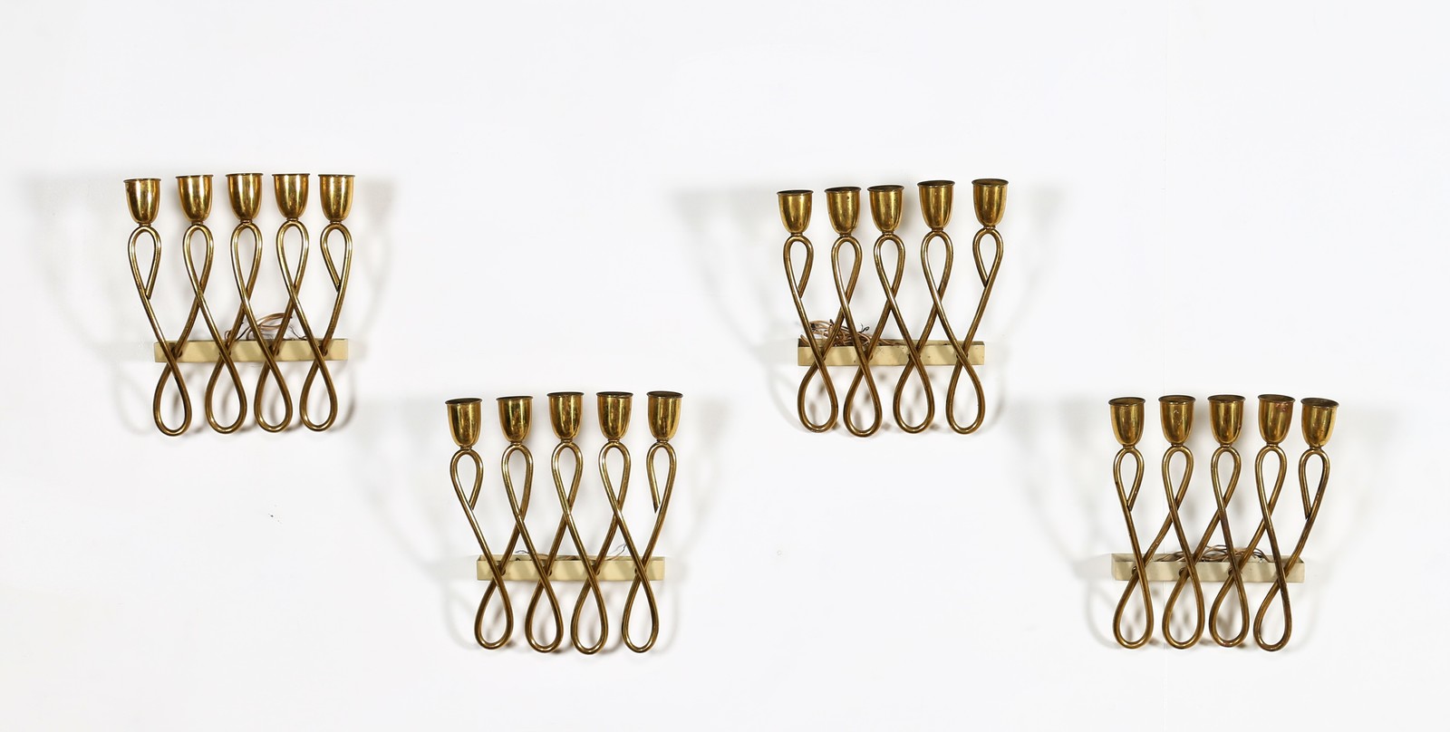 LUMEN MILANO Quattro appliques . Metallo laccato, ottone. Cm 25,00 x 28,00 x 6,00. Ottone e metallo laccato, anni 40/50.