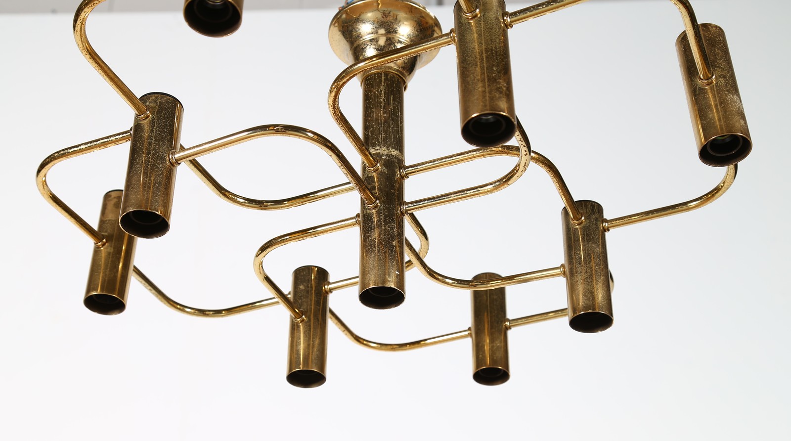 LUMI MILANO Lampadario nove luci. Ottone, plastica. Cm 60,00 x 27,00 x 60,00....