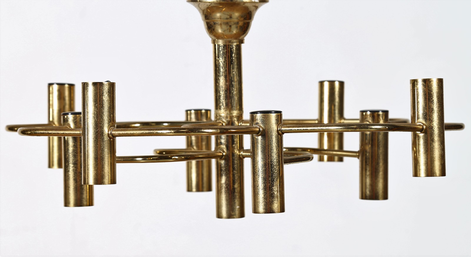 LUMI MILANO Nine lights chandelier. Brass, plastic. Cm 60,00 x 27,00 x 60,00. Brass and plastic.