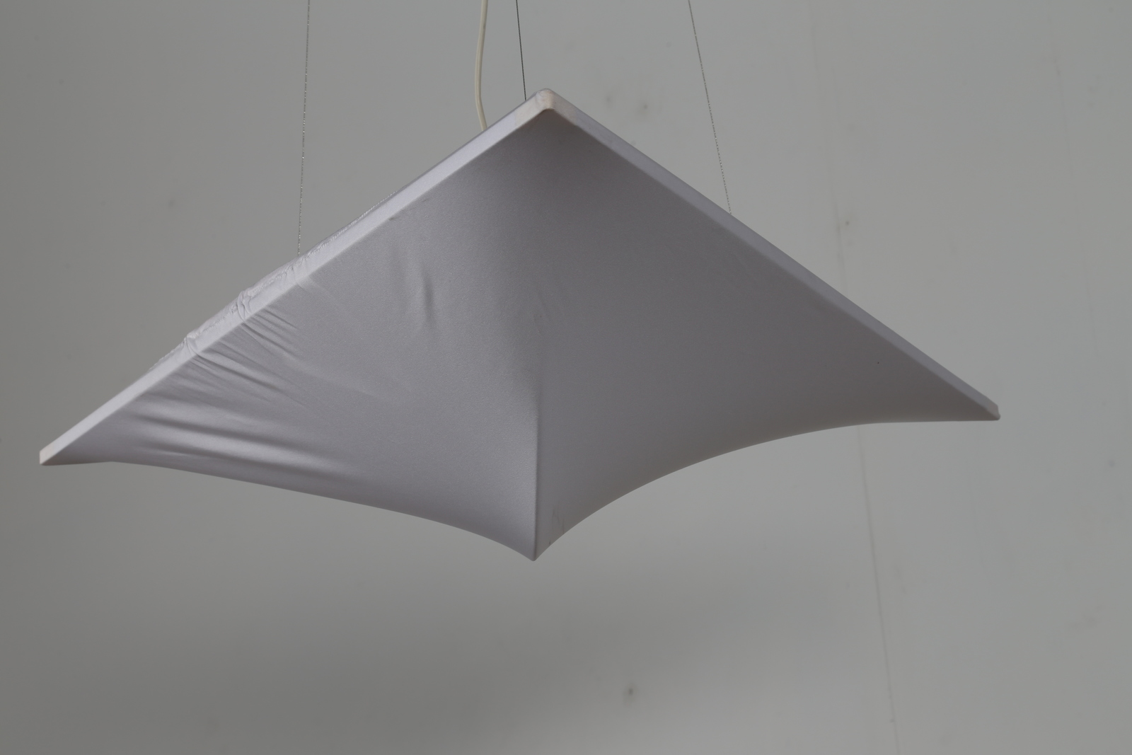 TAKAHAMA KAZUIDE Ceiling lamp mod. Sanka . Plastic. Cm 88,00 x 20,00. Plastic and fabric, for Sirrah, 1970.