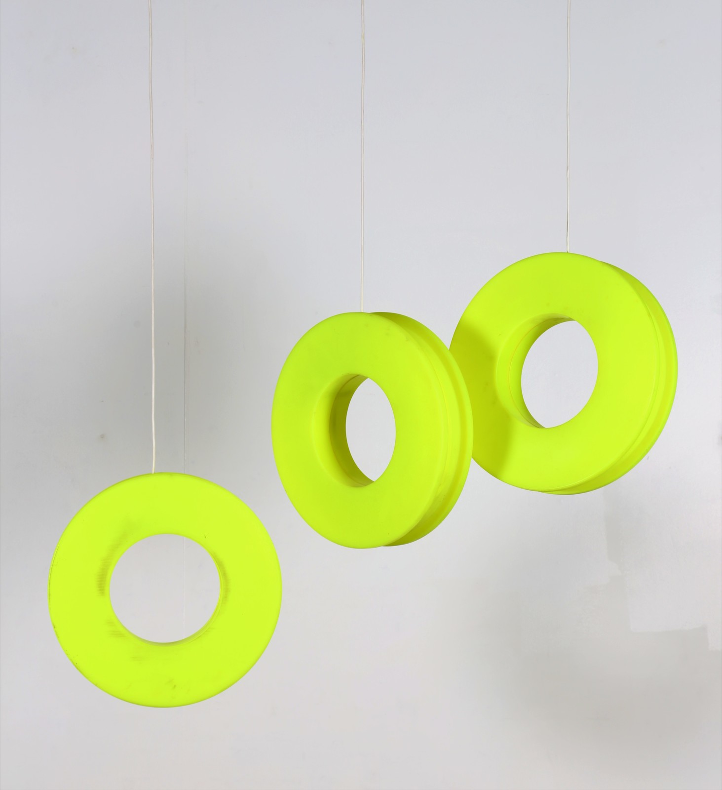 KAZUHIRO YAMANAKA (n. 1971) Tre lampade da soffitto mod. Rainy day. Polietilene. Cm 50,00 x 50,00 x 10,00. Polietilene, per Pallucco Italia, 2004. Pubblicazioni: Domus, n. 872, Luglio 2004, Pag. 172-173 Esposizioni: "Rainy Day" Lamps, Kazuhiro Yamanaka, collezione permanente del MoMA (NY)