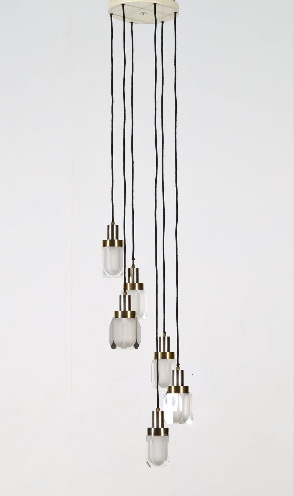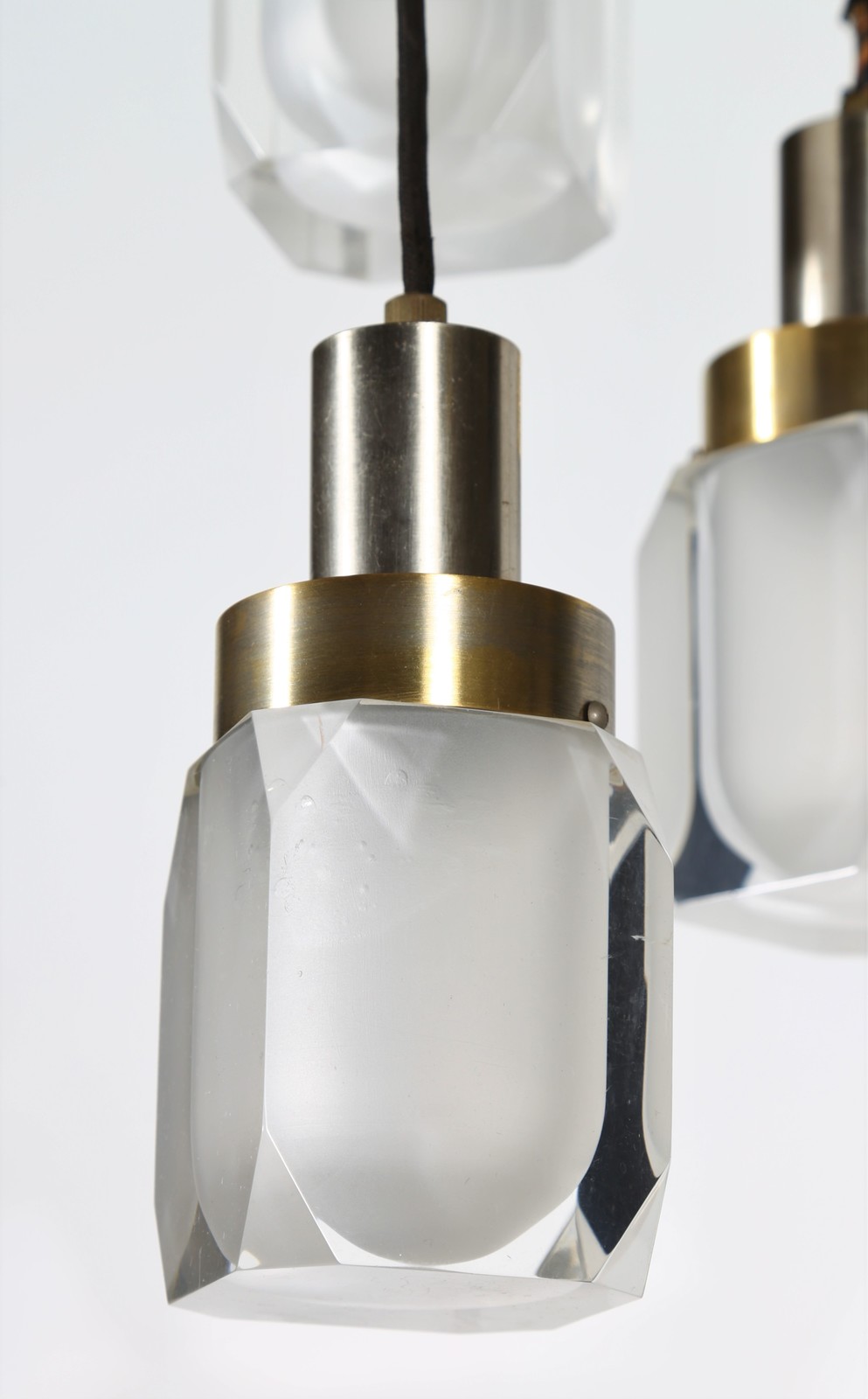 GAETANO MISSAGLIA Lampadario sei luci. Metallo laccato, plexiglass e ottone....