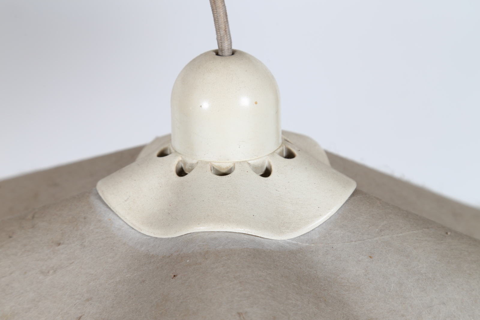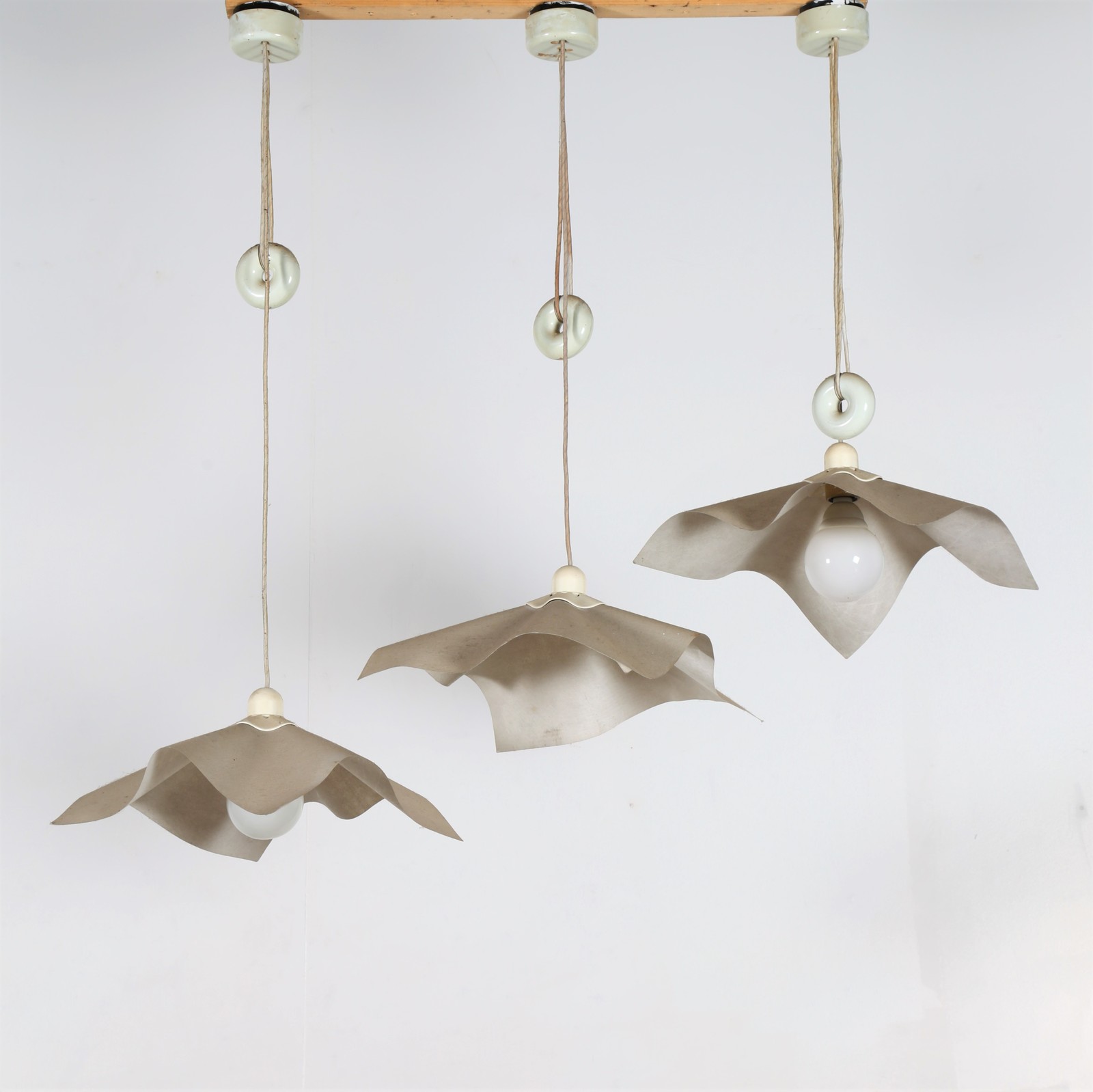 BELLINI MARIO (n. 1935) Tre lampade da soffitto mod. Area. Metallo e cocoon. Cm 44,00 x 160,00. Metallo e cocoon, per Artemide, anni 70.