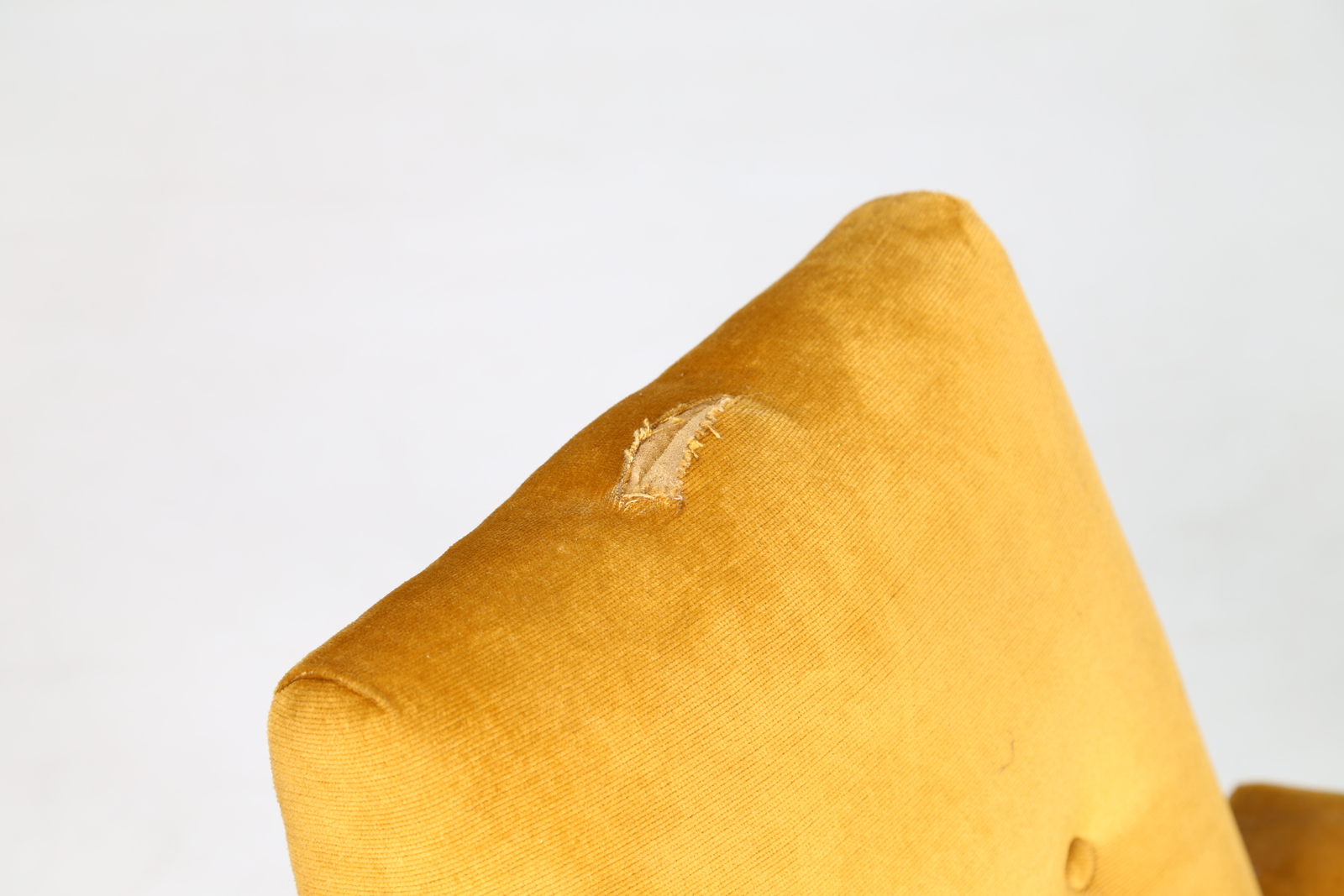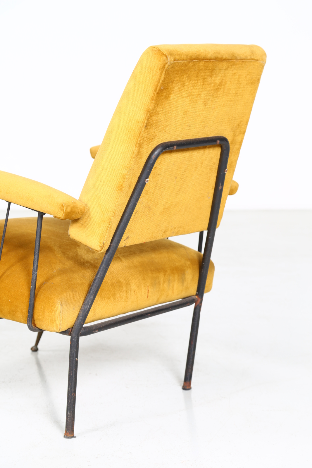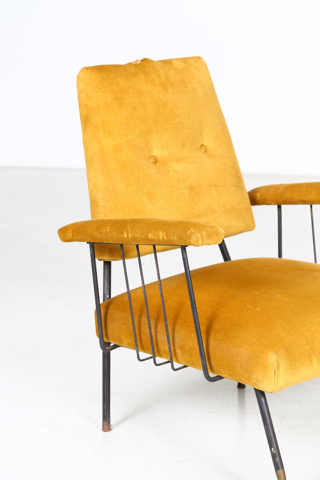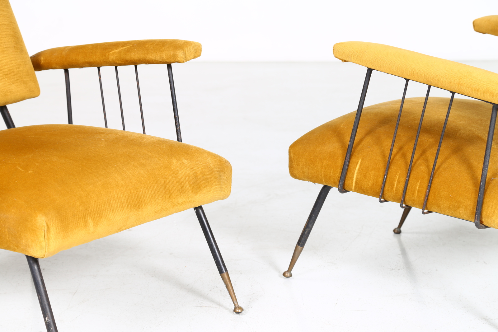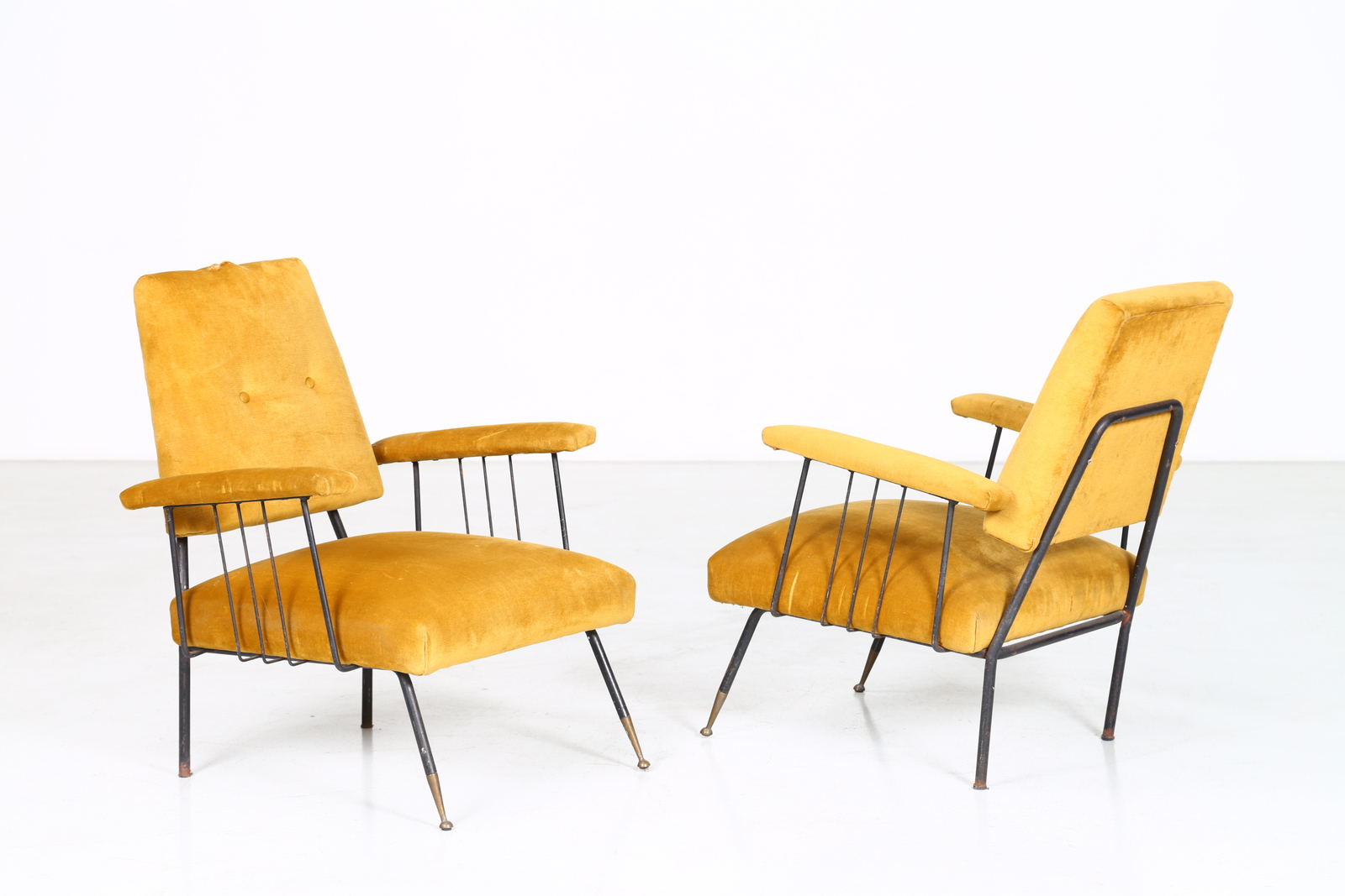 ITALIAN MANUFACTURE Pair of armchairs. Metal, fabric. Cm 66,00 x 80,00 x 70,00. Metal and fabric, 50s.