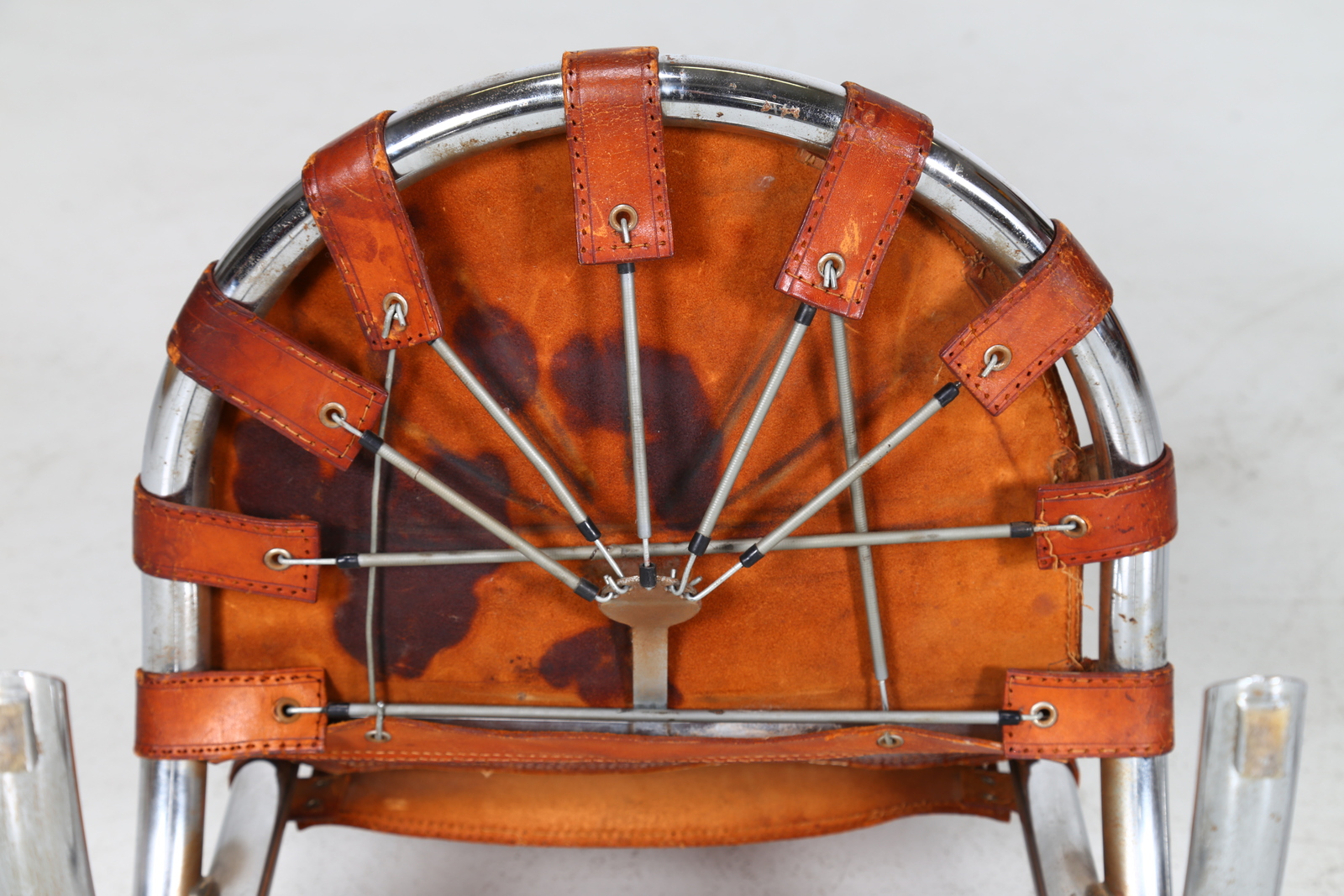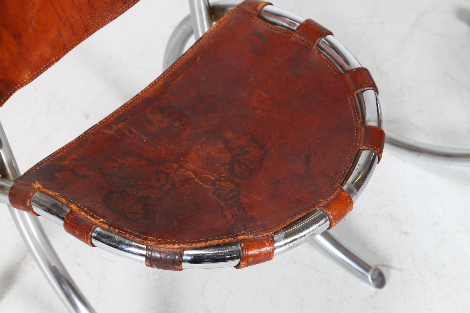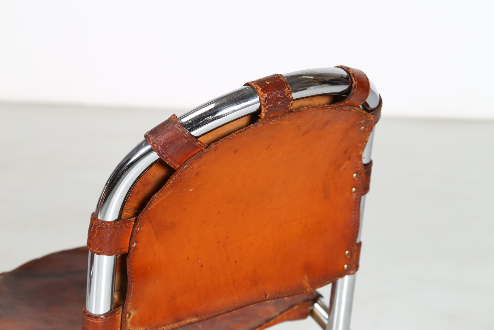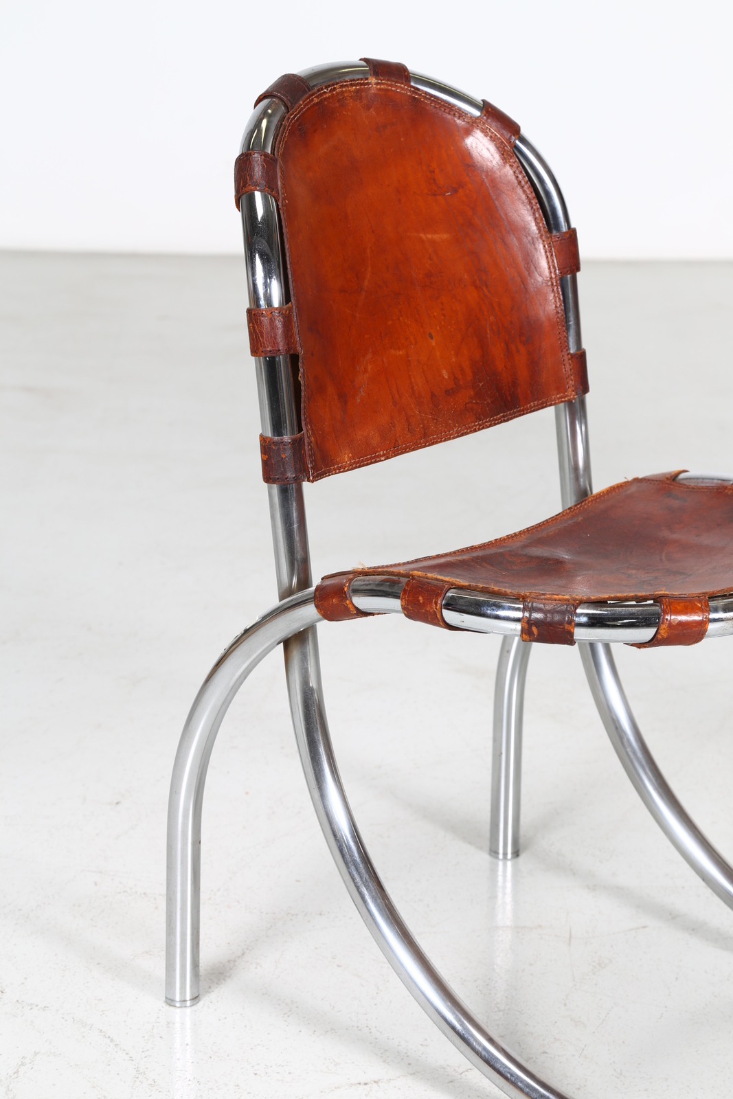 STUDIO TETRARCH Coppia di sedie mod. Medusa. Metallo cromato e cuoio. Cm 47,00 x 80,00 x 54,00. Metallo cromato e cuoio. Design Alberto Bazzani per Studio Tetrarch, 1969.