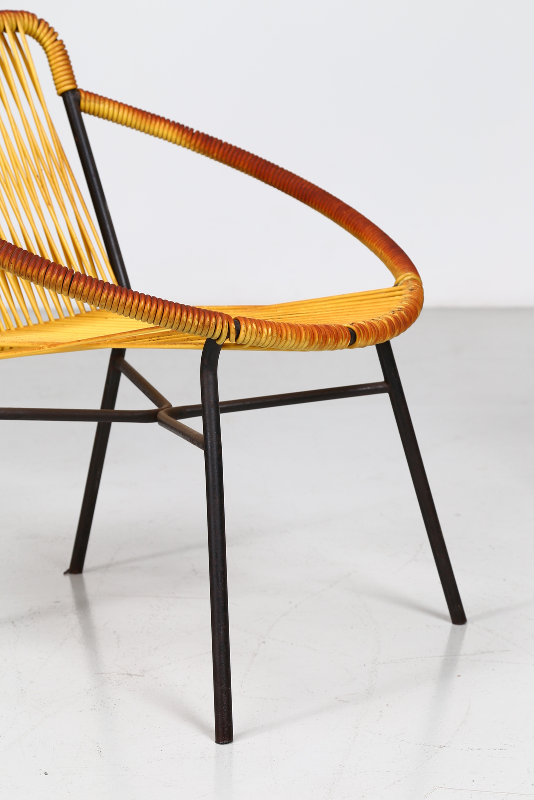 MANIFATTURA ITALIANA Tre poltroncine da giardino. Metallo e plastica. Cm 69,00 x 73,00 x 66,00. Metallo e plastica, anni 60.