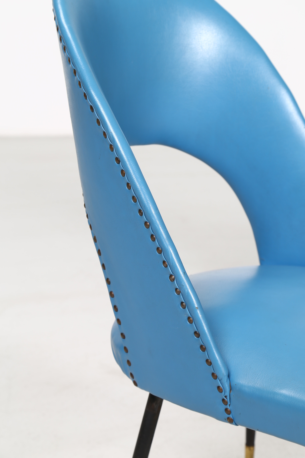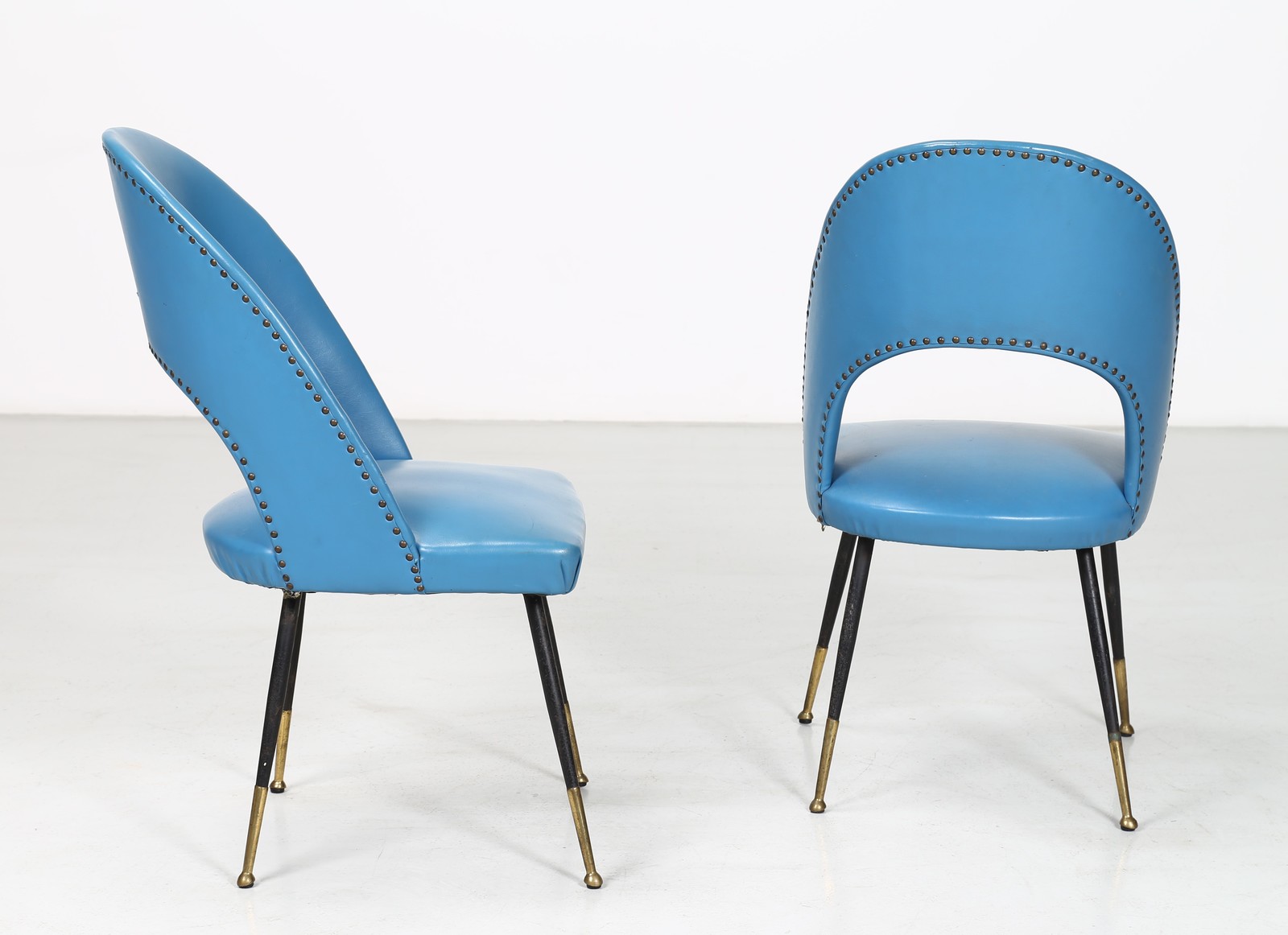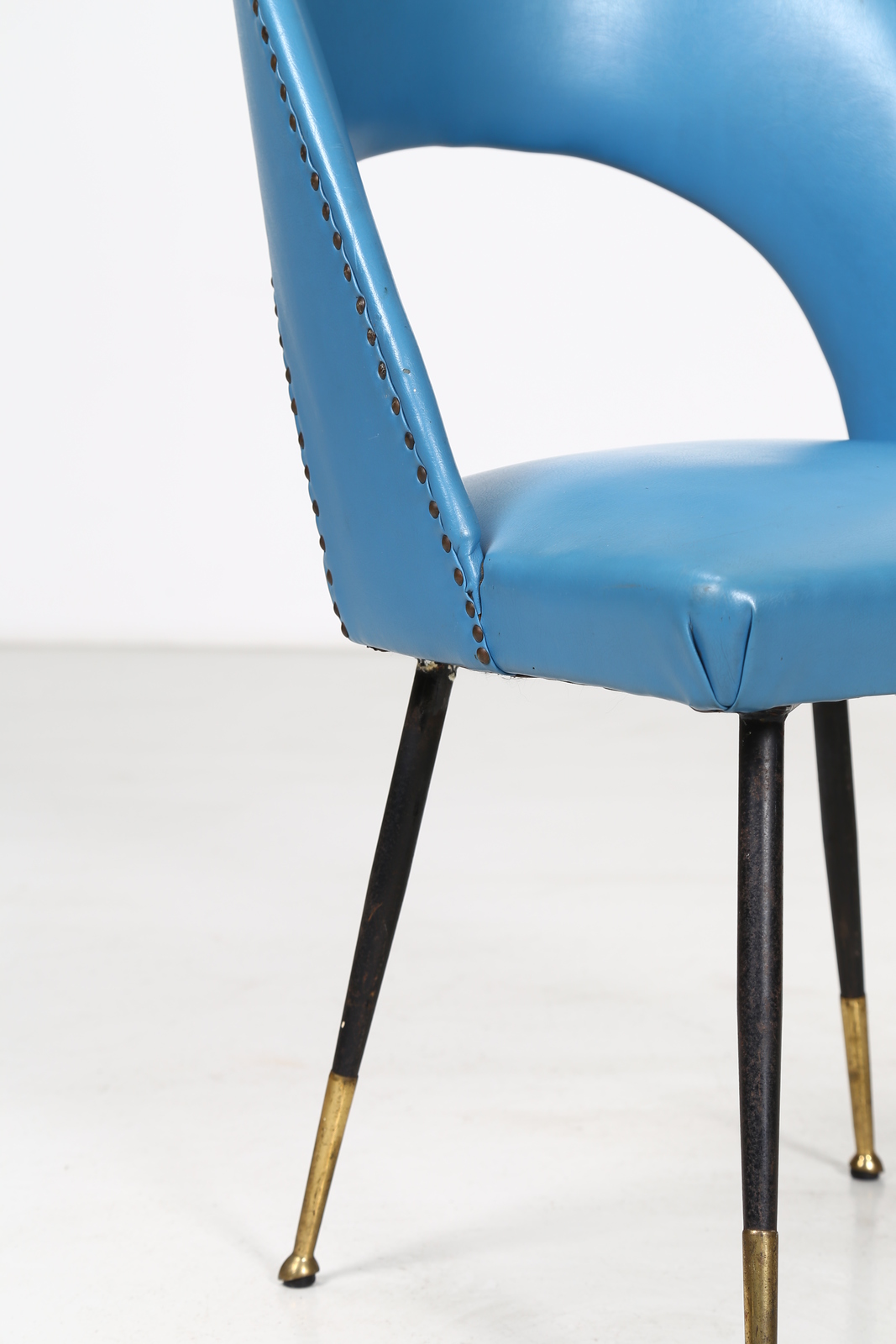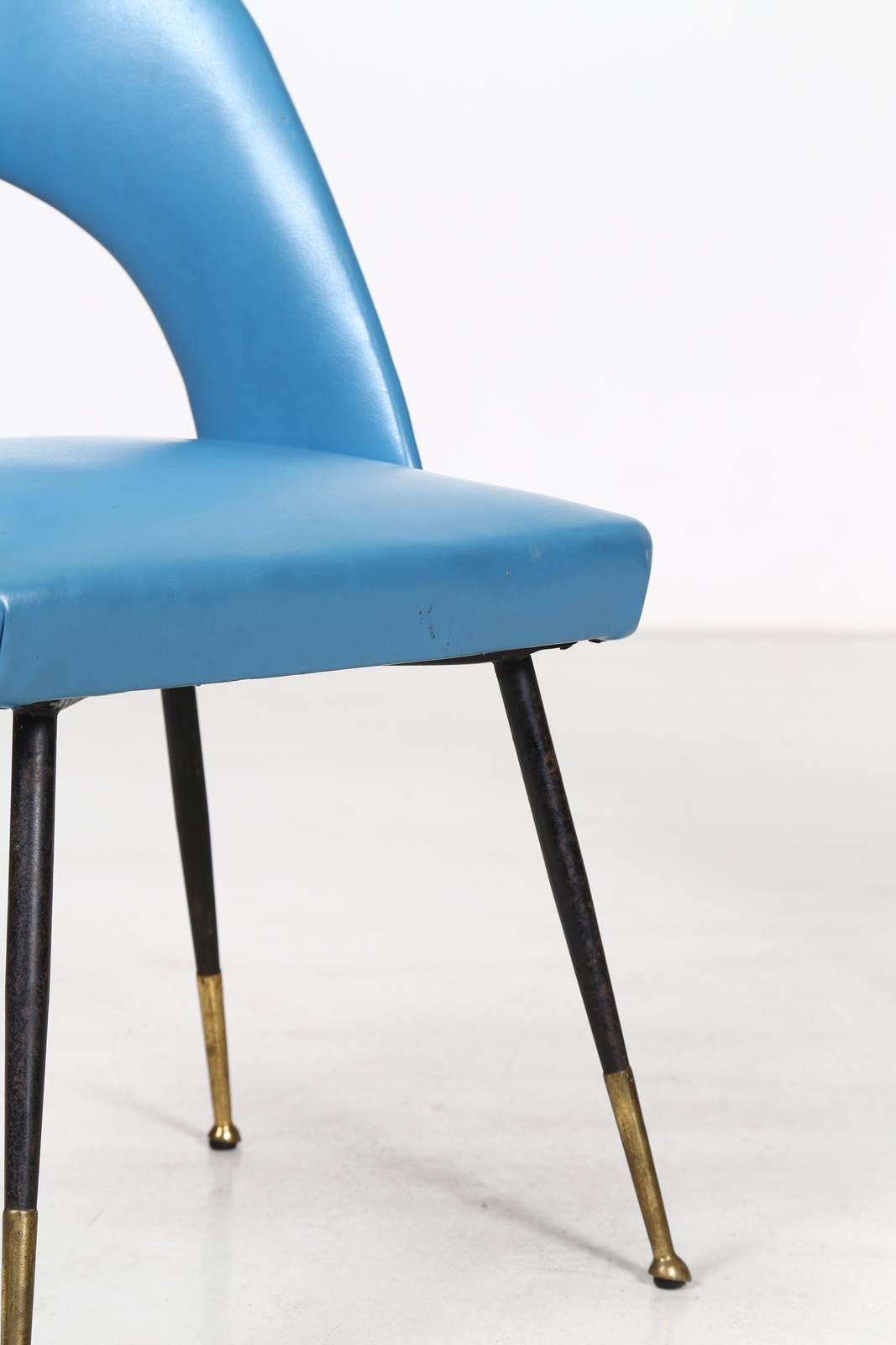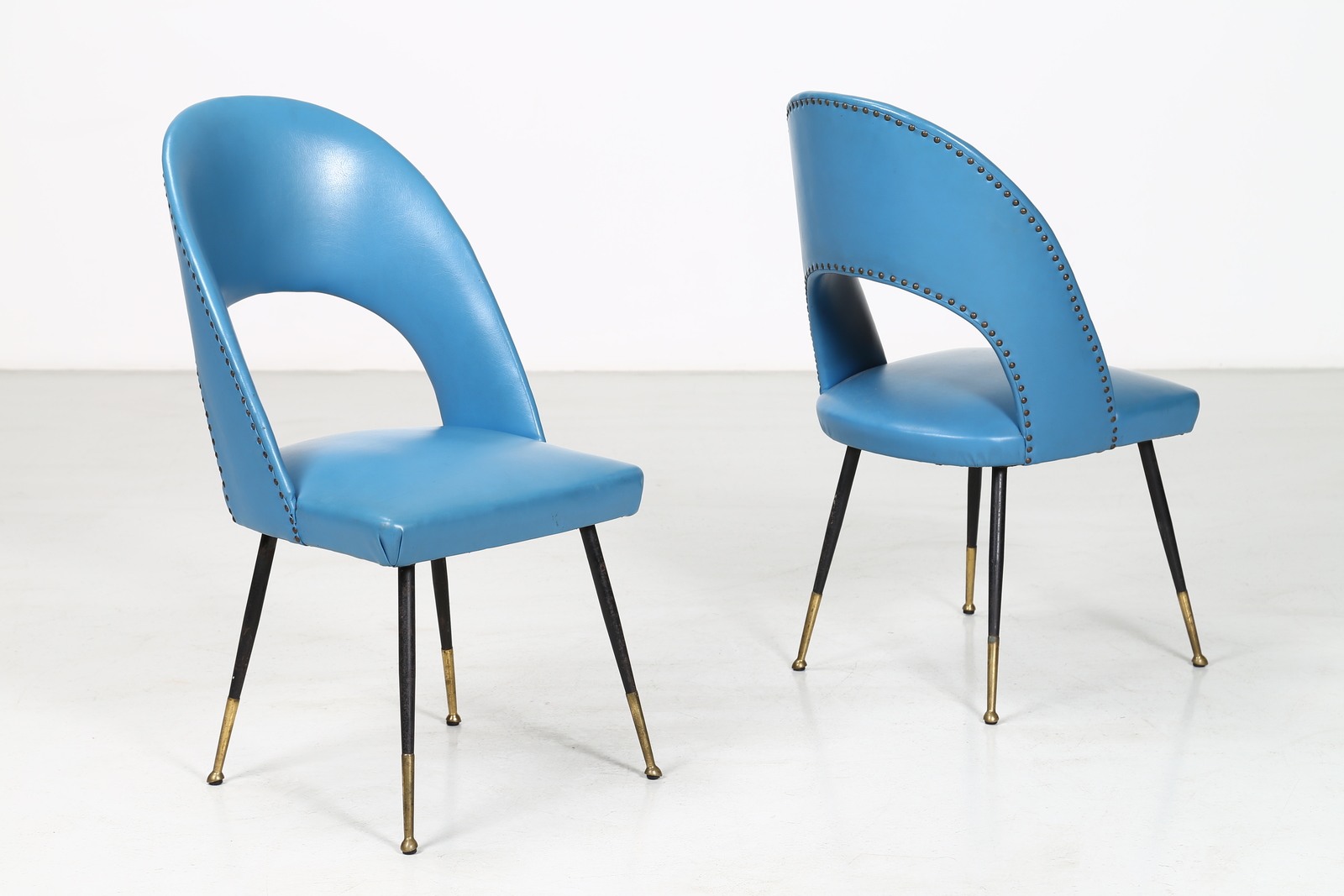 LENZI Pair of chairs. Metallo laccato, ottone e skai.. Cm 48,00 x 91,00 x 58,00. Lacquered metal, brass and skai. For Quarrata, 50s.