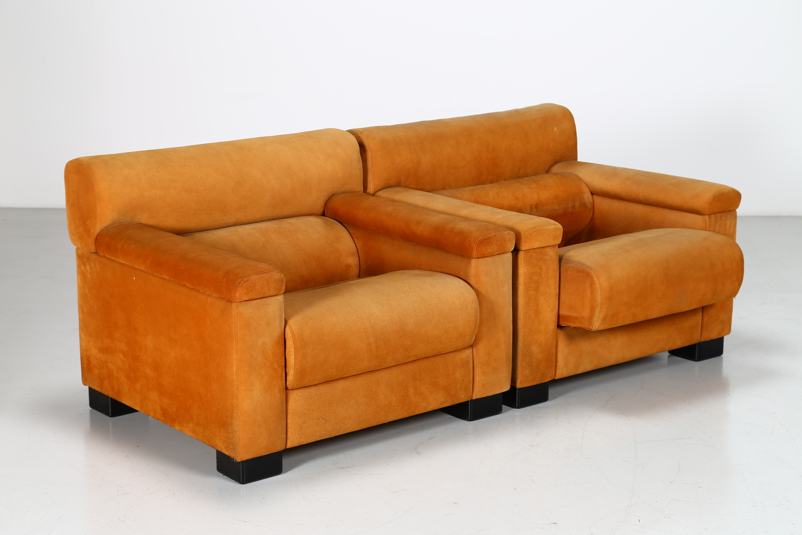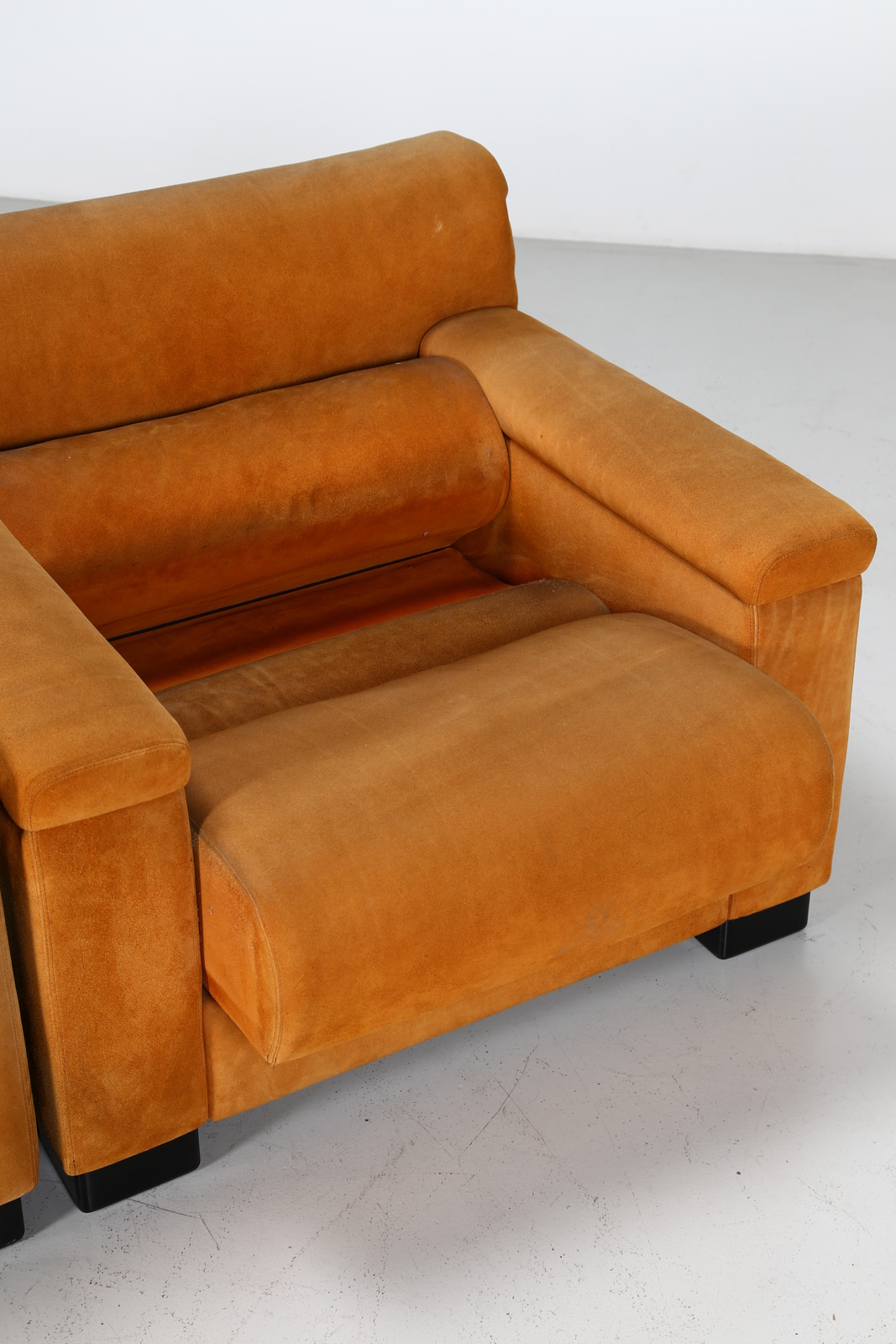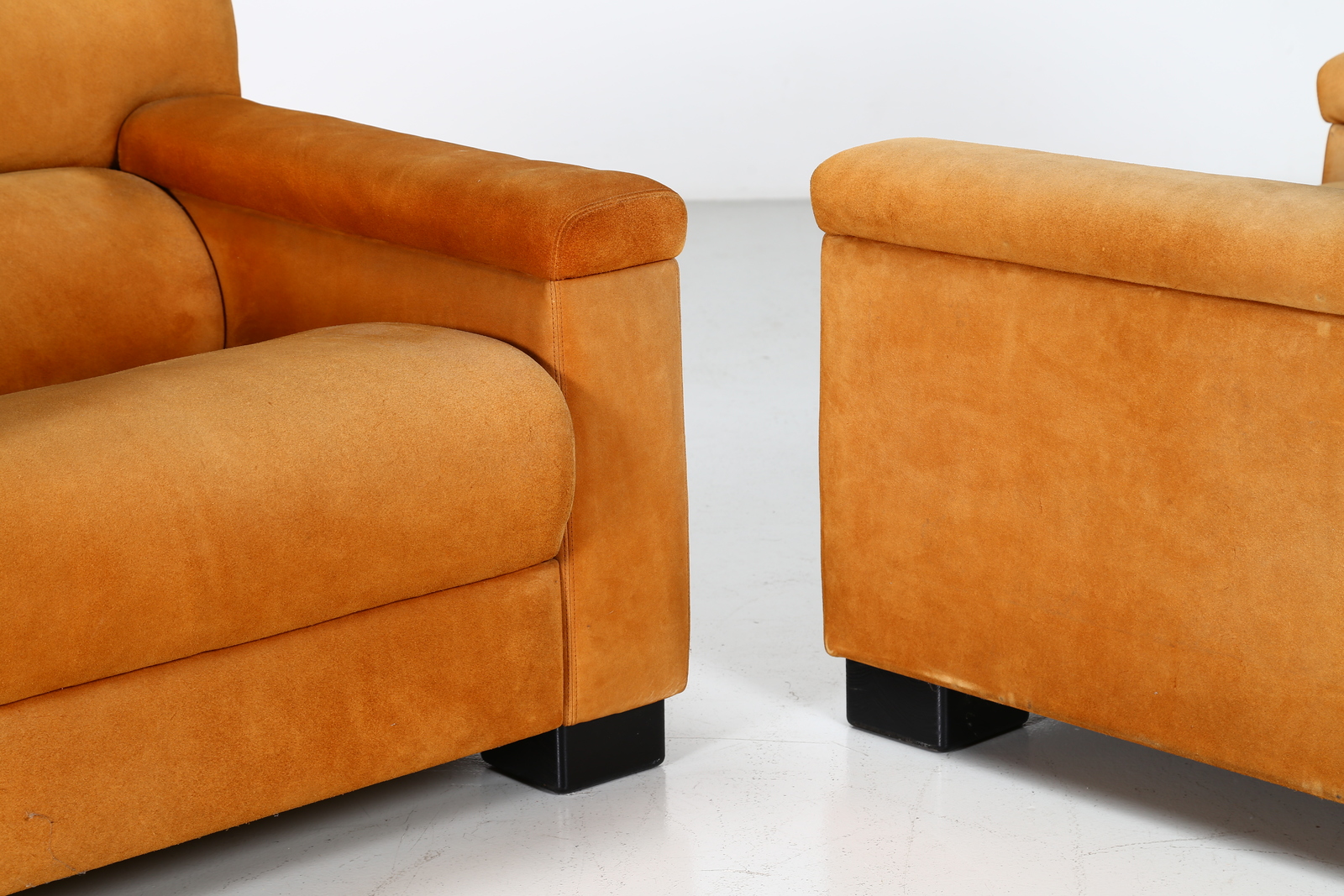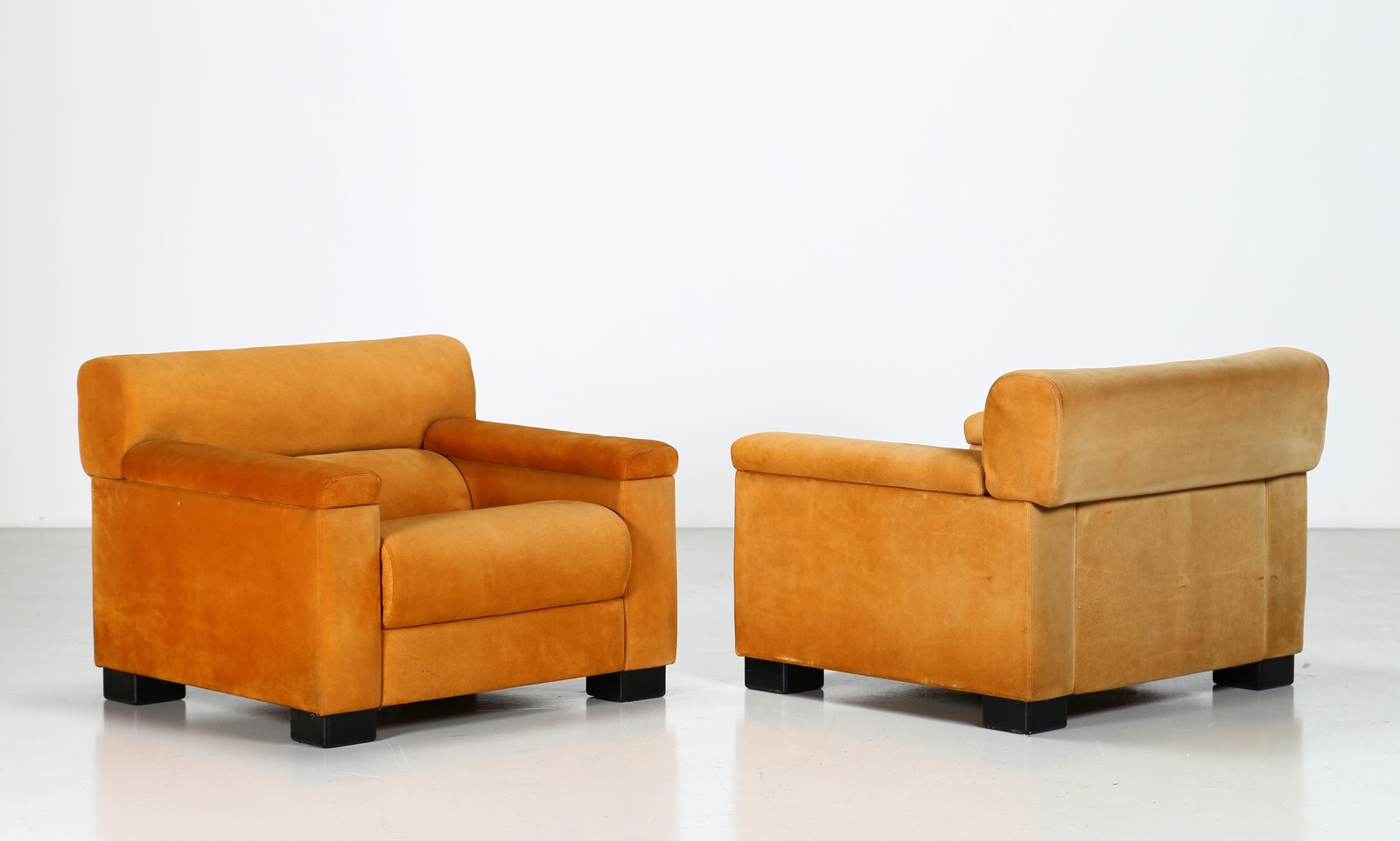 TECNO Coppia di poltrone . Legno e alcantara. Cm 88,00 x 73,00 x 88,00. Legno e alcantara, marchio presente.