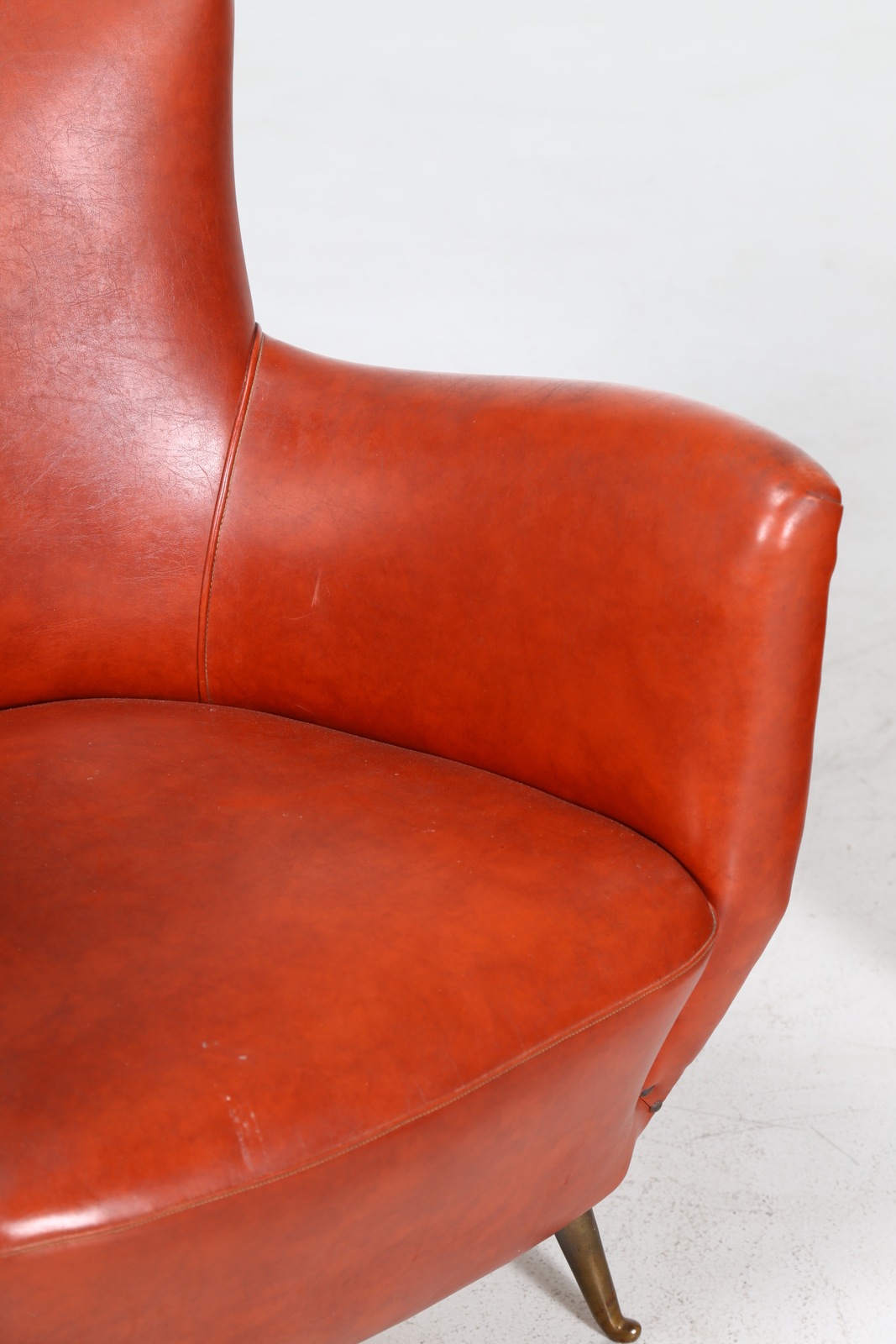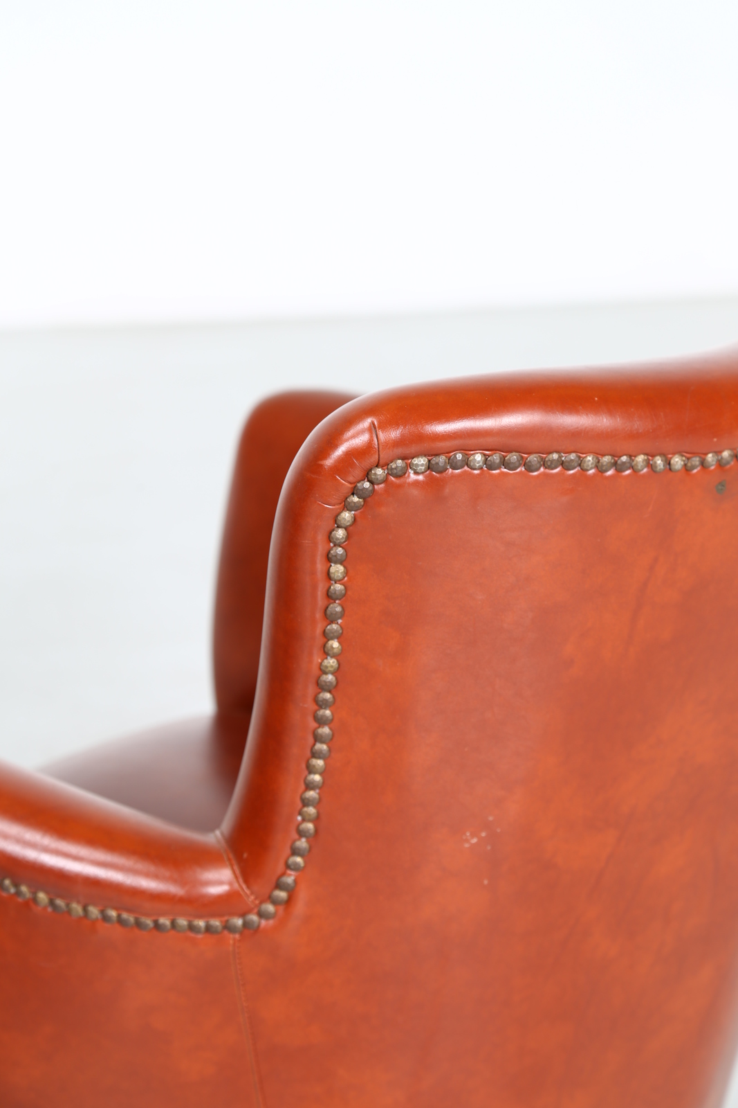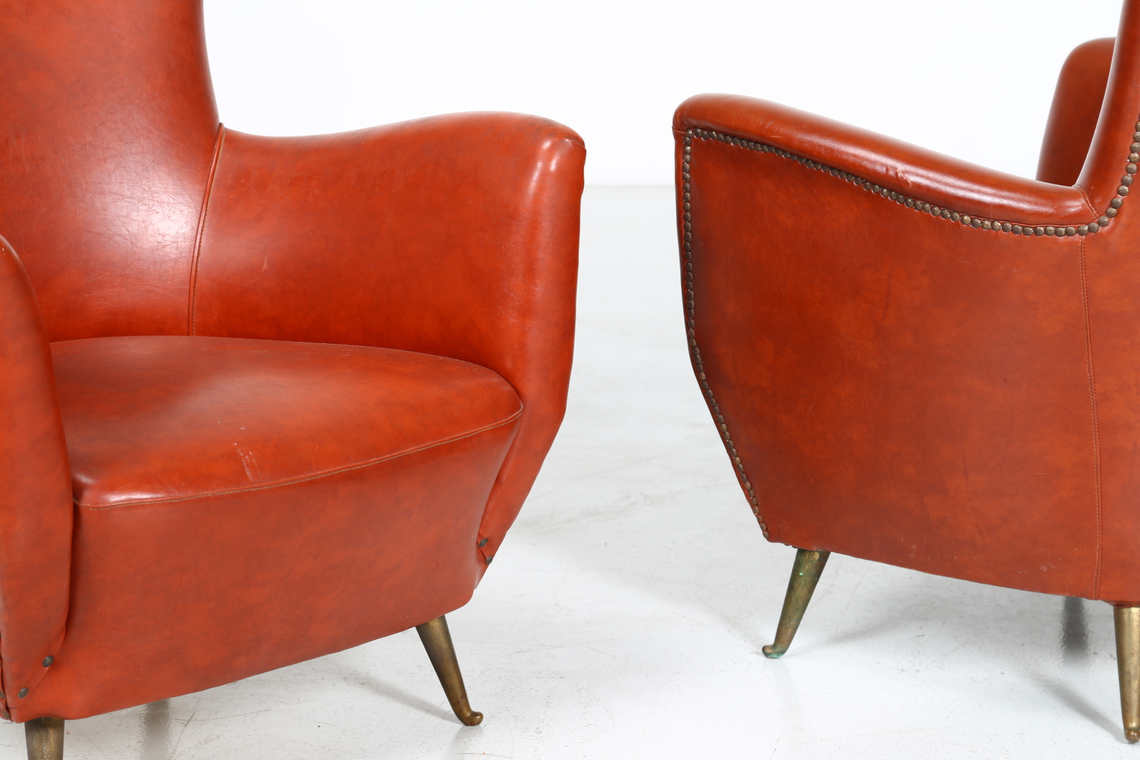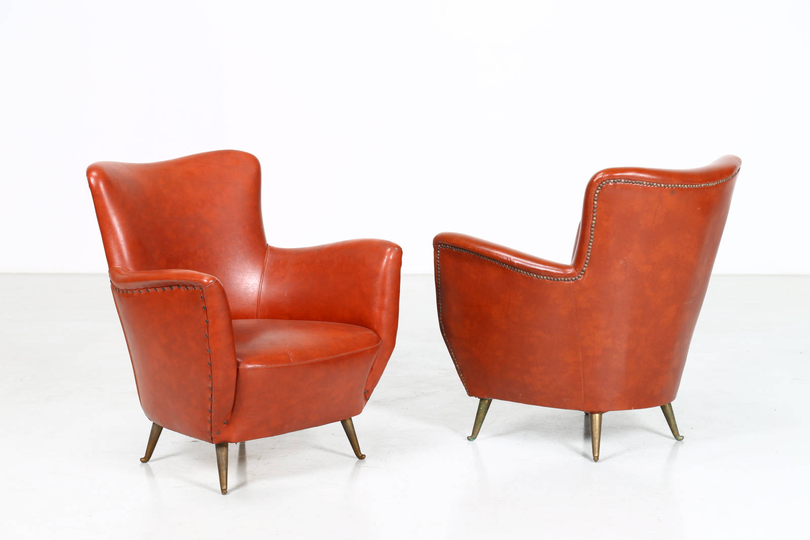 Lotto 228 | ISA BERGAMO Coppia di poltrone. Ottone e skai. Cm 70,00 x 77,00 x 70,00....