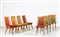 ITALIAN MANUFACTURE Nine chairs. Wood, fabric and brass. Cm 44,00 x 91,50 x 60,00. Wood, fabric and brass, 50s.