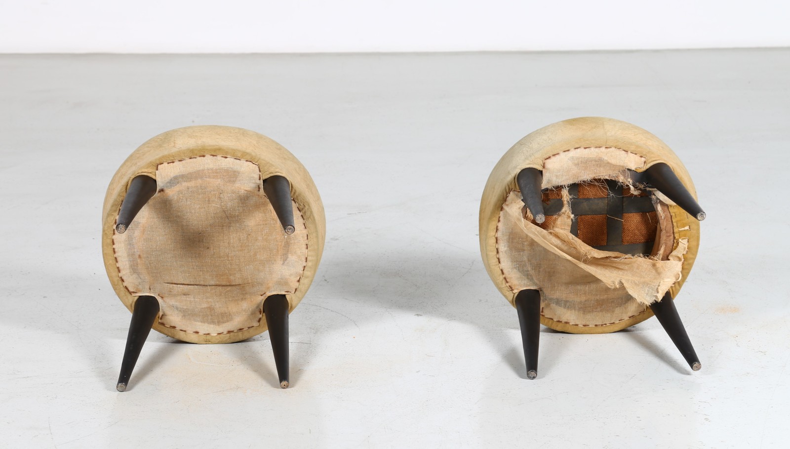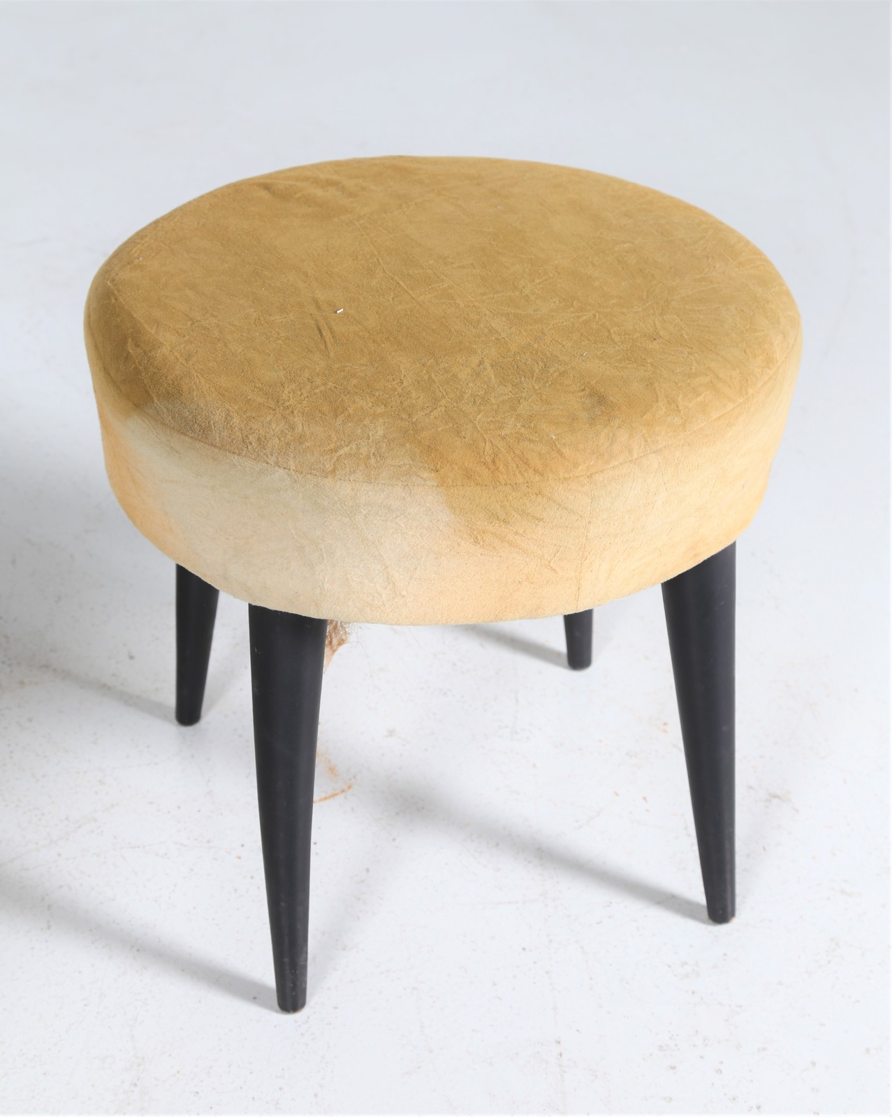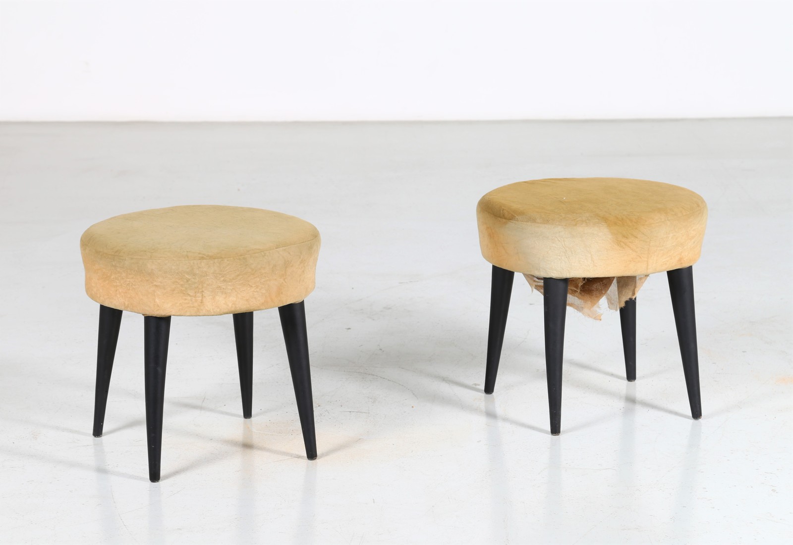 ITALIAN MANUFACTURE Pair of stools. Wood and fabric. Cm 42,00 x 41,00 x 42,00. Wood and fabric, Luigi Colombo Salotti d'Arte, Label present.