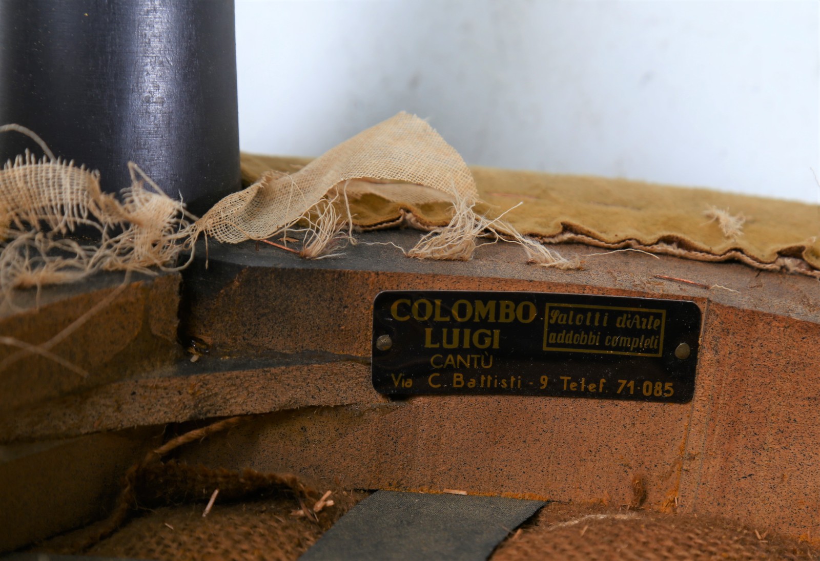 MANIFATTURA ITALIANA Coppia di sgabelli . Legno e tessuto. Cm 42,00 x 41,00 x 42,00. Legno e tessuto, Luigi Colombo Salotti d'Arte, Etichetta presente.