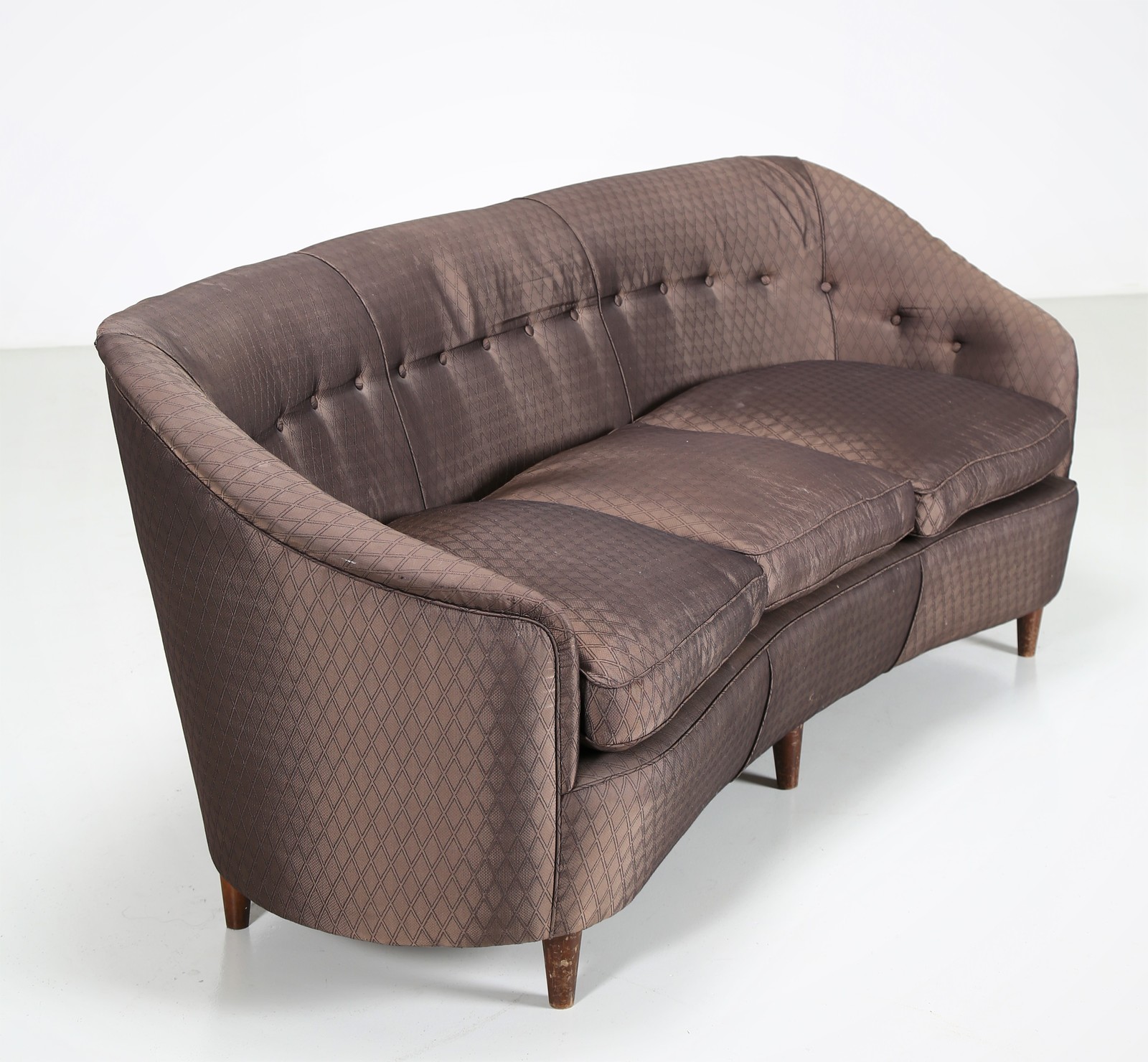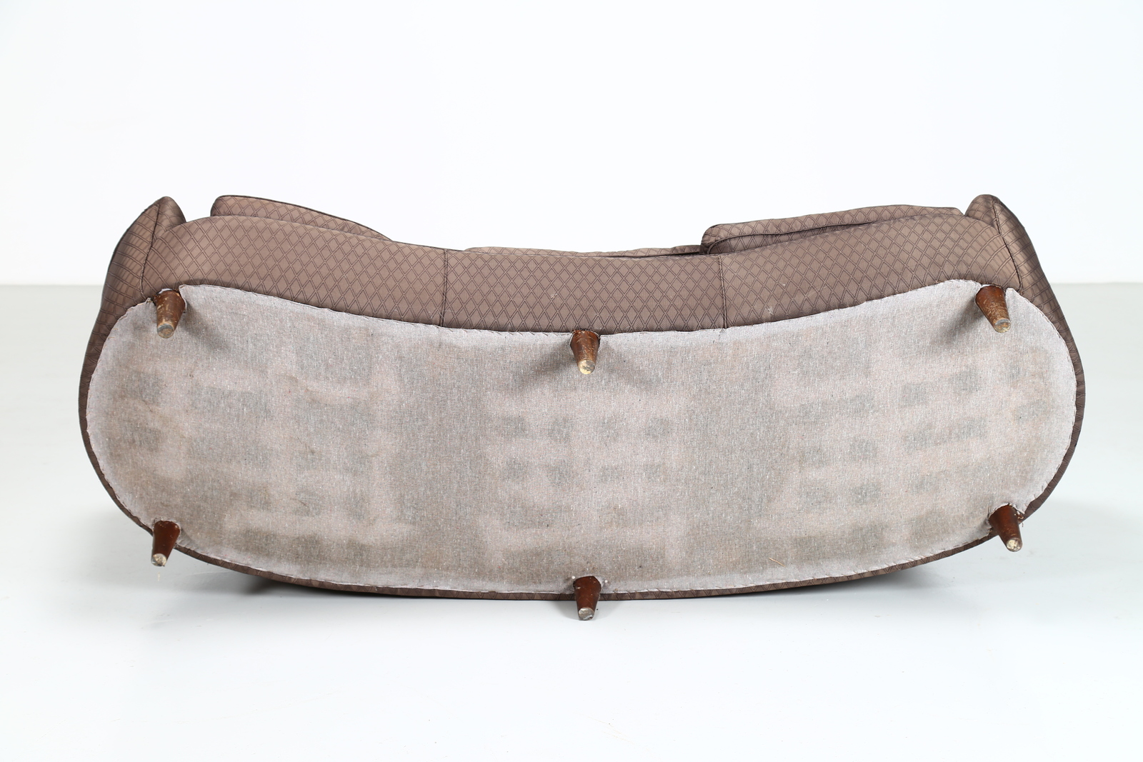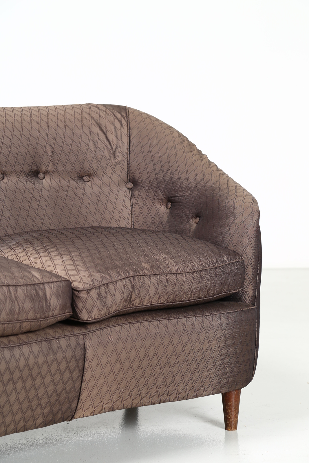 CASA E GIARDINO Curved sofa. Wood and fabric. Cm 195,00 x 80,00 x 90,00. Wood and fabric, for Casa e Giardino, 50s.