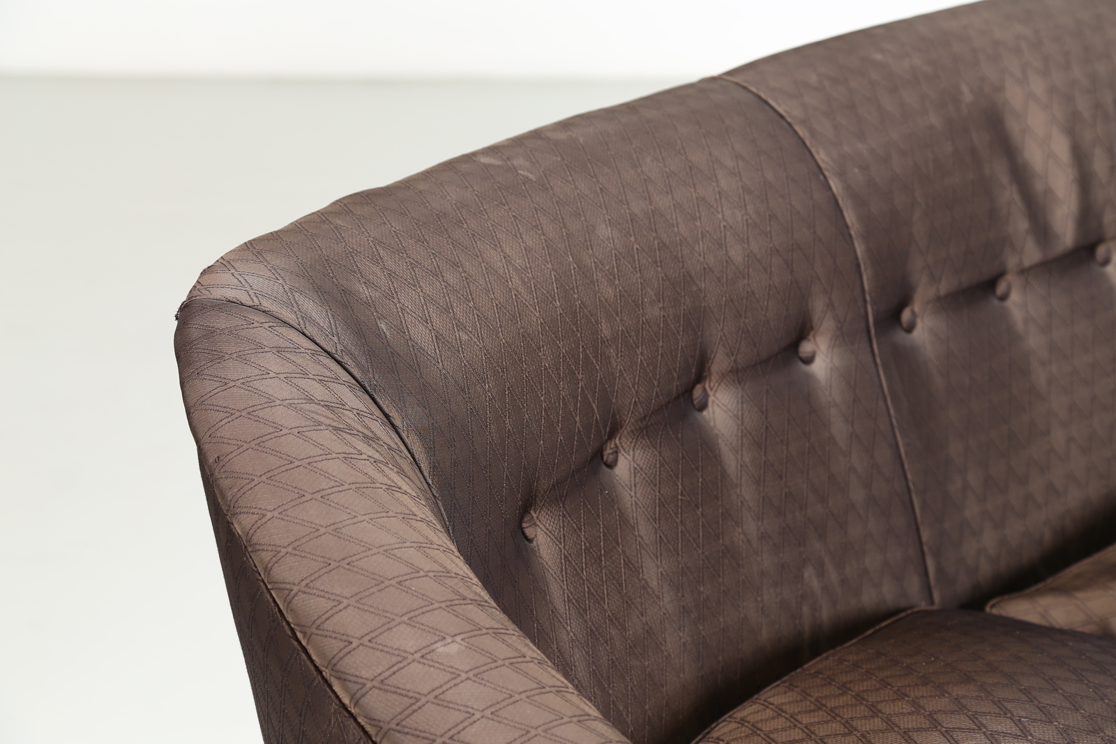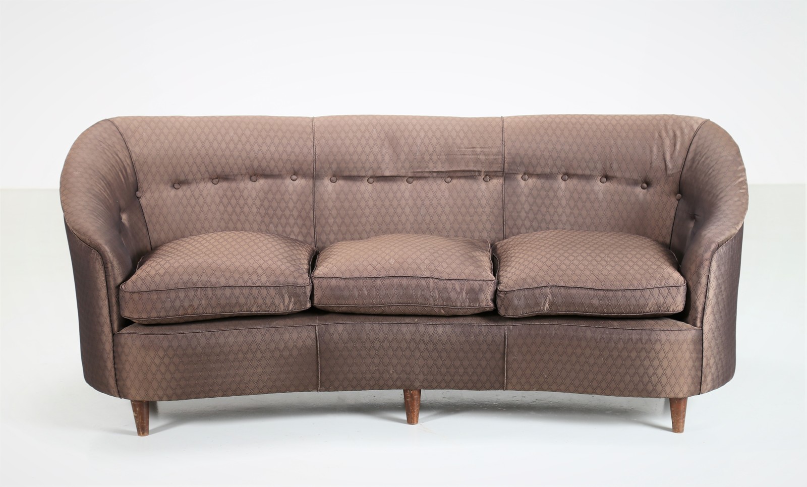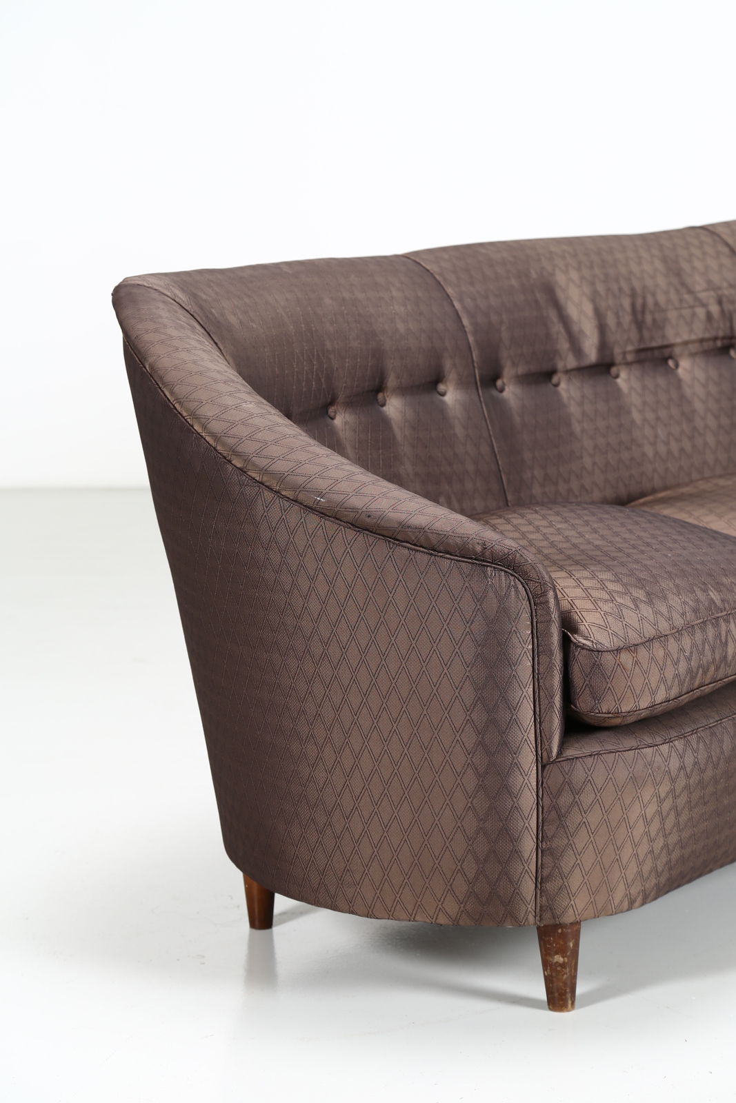 CASA E GIARDINO Curved sofa. Wood and fabric. Cm 195,00 x 80,00 x 90,00. Wood and fabric, for Casa e Giardino, 50s.