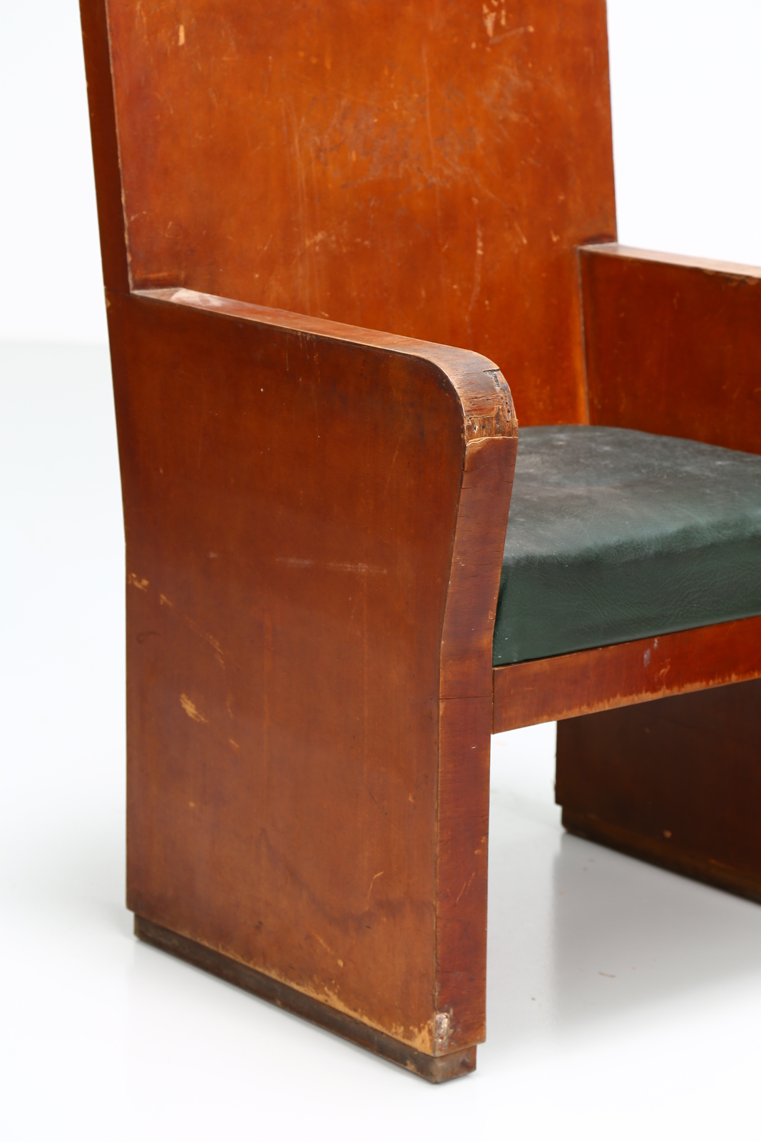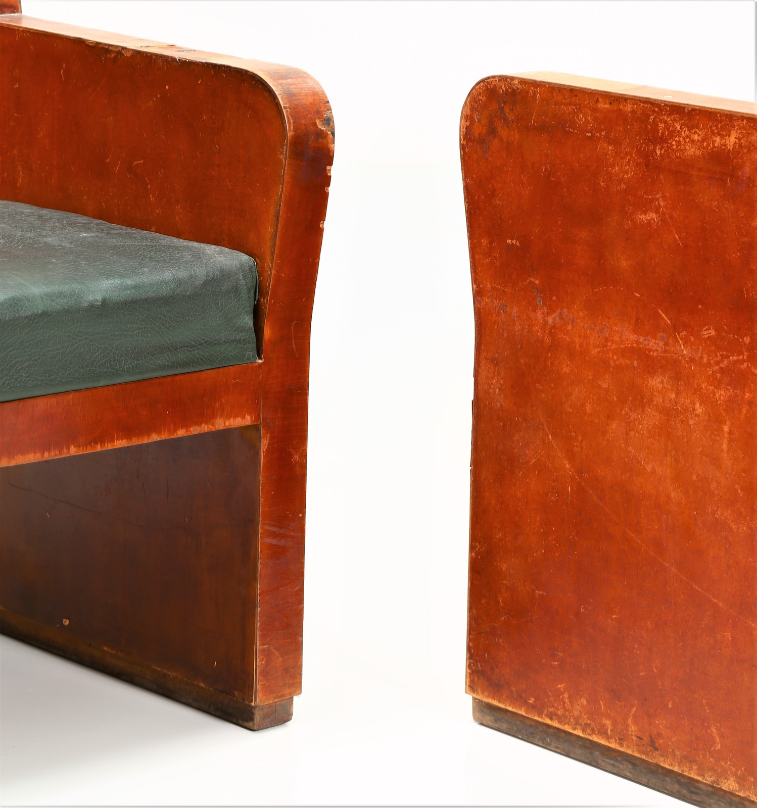 GINO LEVI MONTALCINI & GIUSEPPE PAGANO Coppia di sedie. Legno e skai. Cm 64,00 x 96,00 x 60,00. Legno e skai, anni 30.