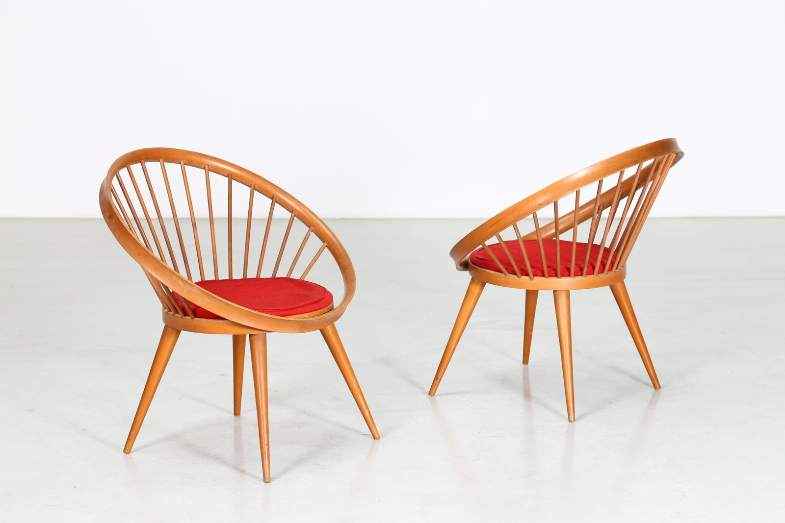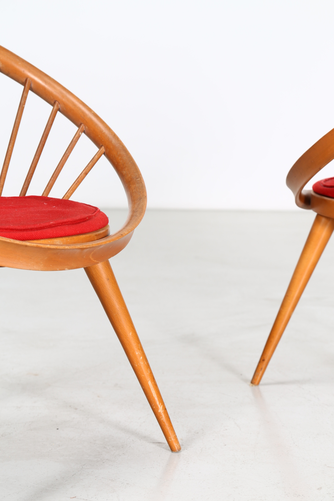 EKSTROM YNGVE (1913 - 1988) Pair of chairs mod. Circle chair. Beech wood and fabric. Cm 65,00 x 71,00 x 56,00. Beech wood and fabric, 1960.