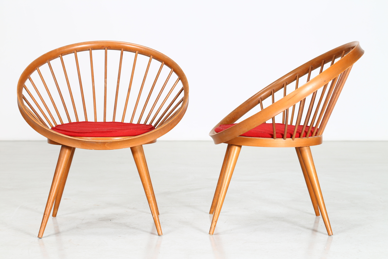 EKSTROM YNGVE (1913 - 1988) Coppia di sedie mod. Circle chair. Legno di faggio e tessuto. Cm 65,00 x 71,00 x 56,00. Legno di faggio e tessuto, 1960.