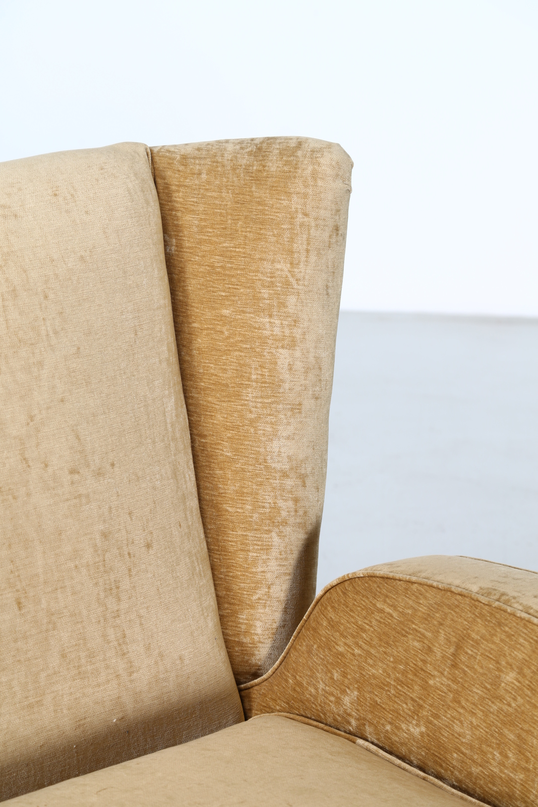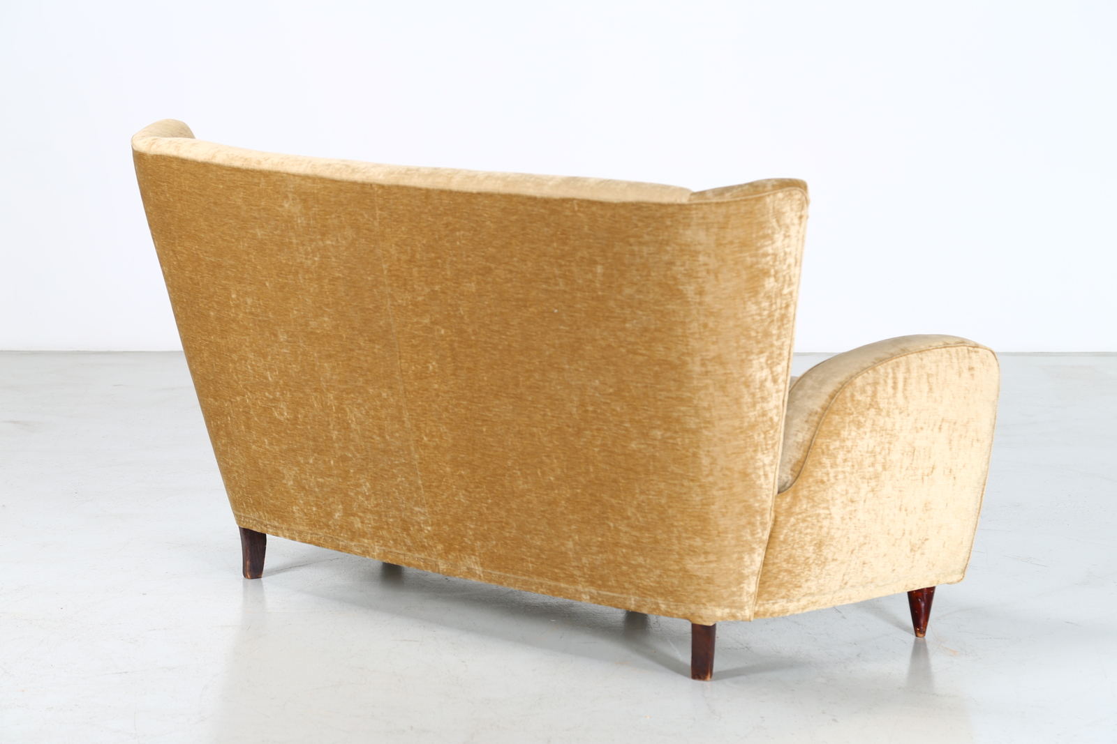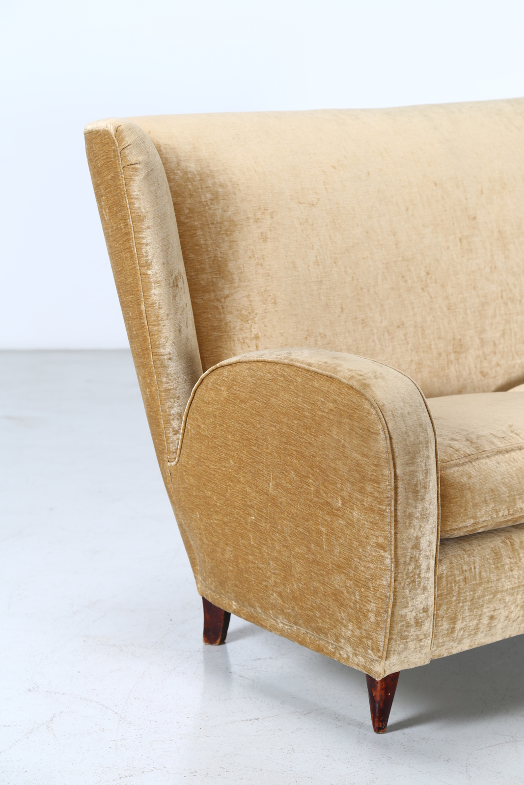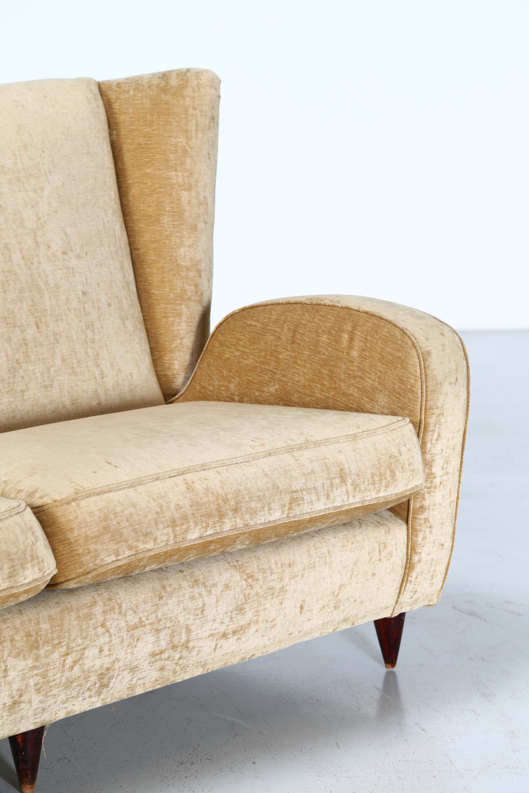 ITALIAN MANUFACTURE Sofa. Wood and fabric. Cm 150,00 x 87,00 x 83,00. Wood and fabric, 50s.
