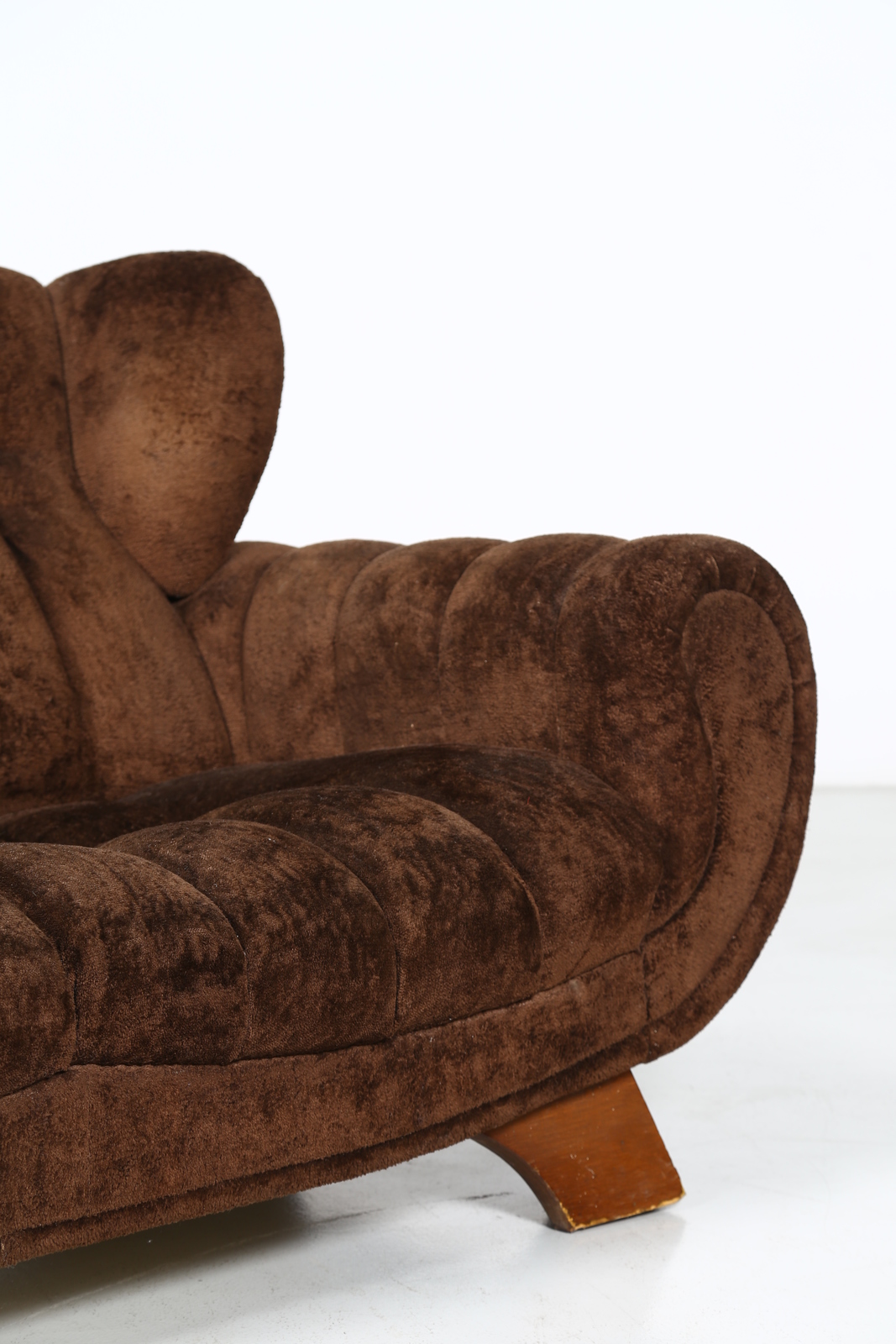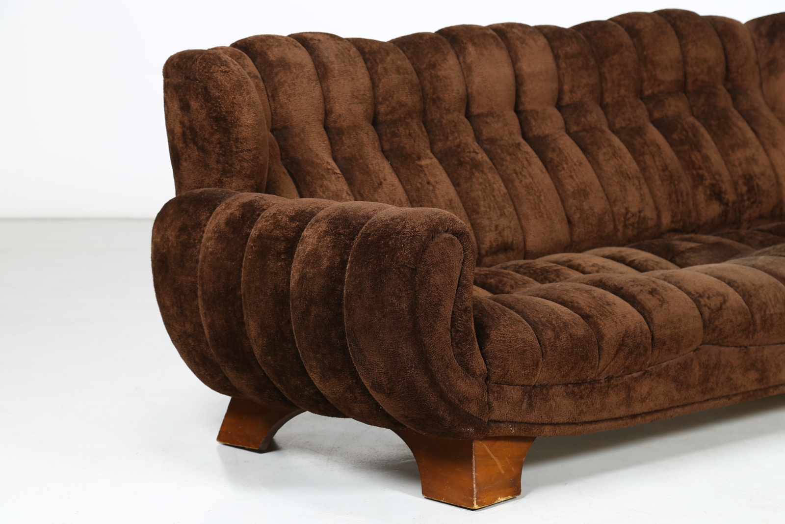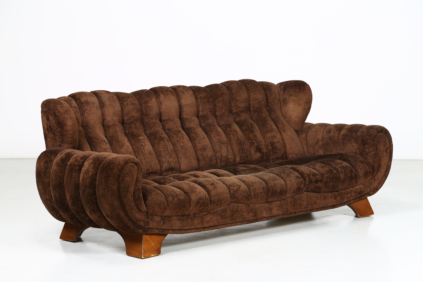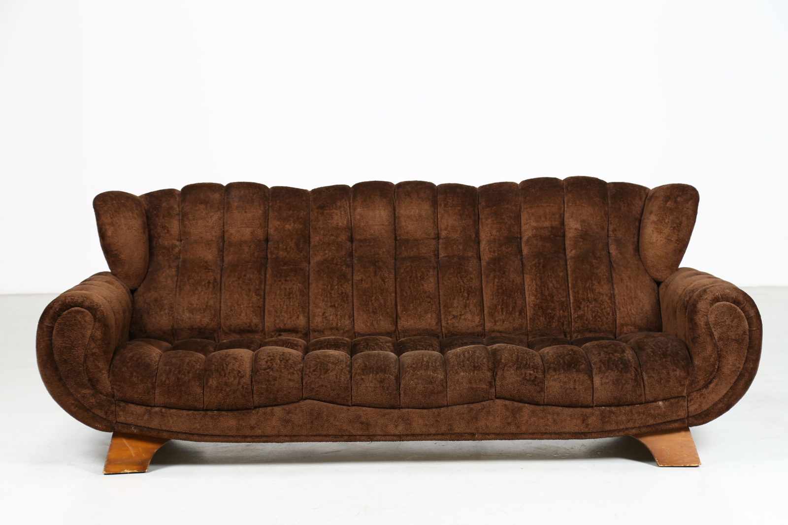 ITALIAN MANUFACTURE Sofa. Wood and fabric. Cm 225,00 x 82,00 x 102,00. Wood and fabric, 50s.