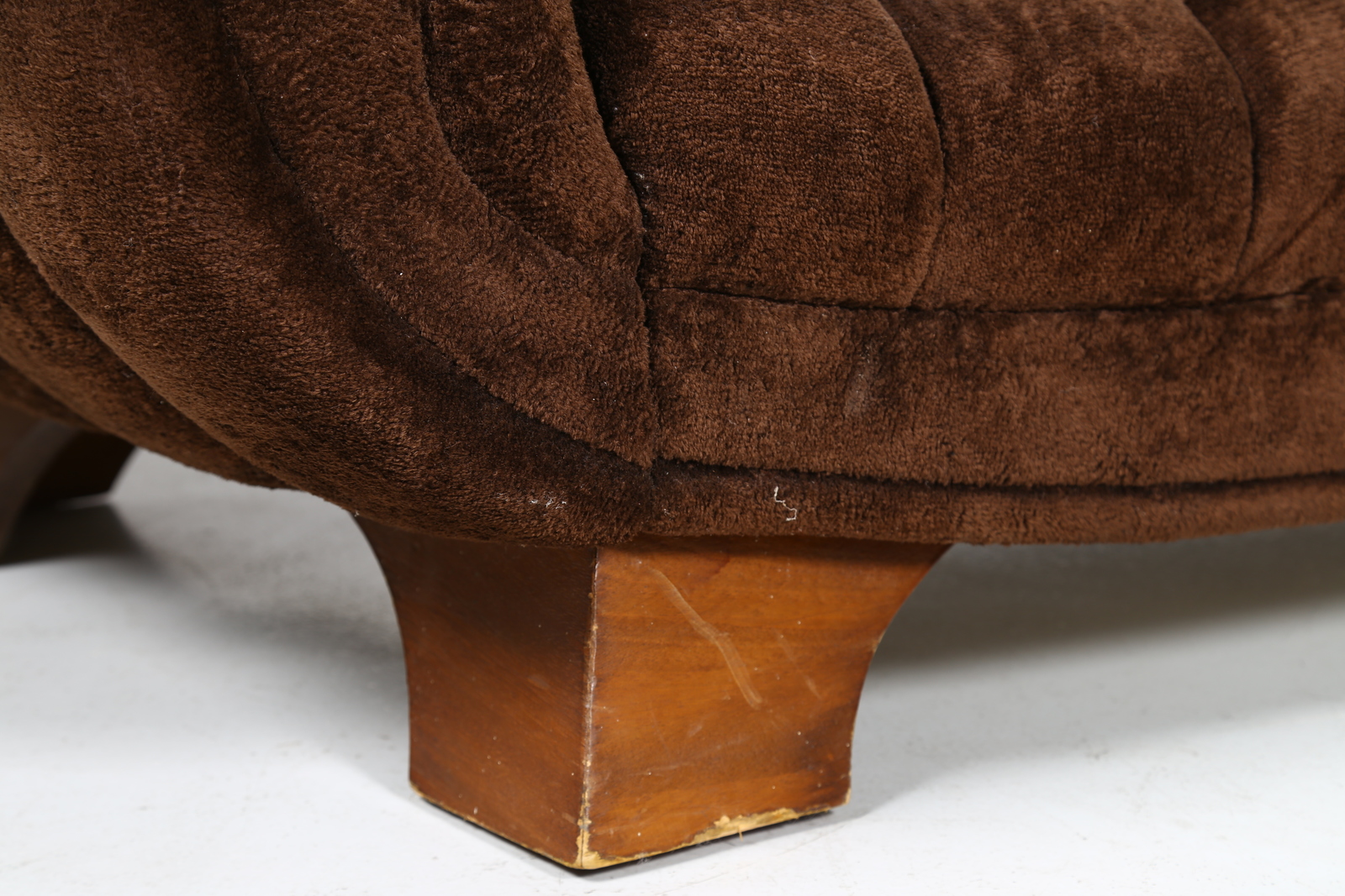 MANIFATTURA ITALIANA Divano. Legno e tessuto. Cm 225,00 x 82,00 x 102,00. Legno e tessuto, anni 50.