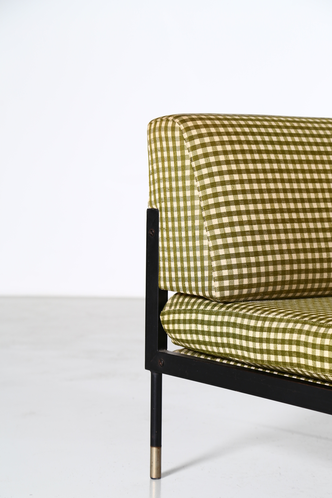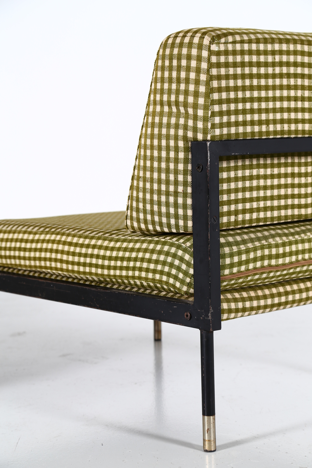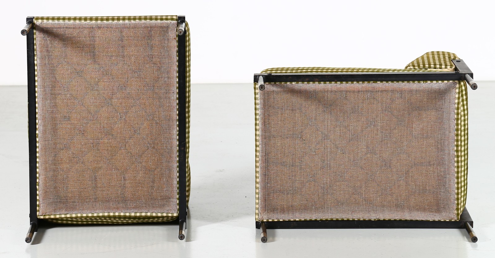 MANIFATTURA ITALIANA Coppia di poltrone. Metallo e tessuto. Cm 58,00 x 71,00 x 76,00. Metallo e tessuto, anni 60.