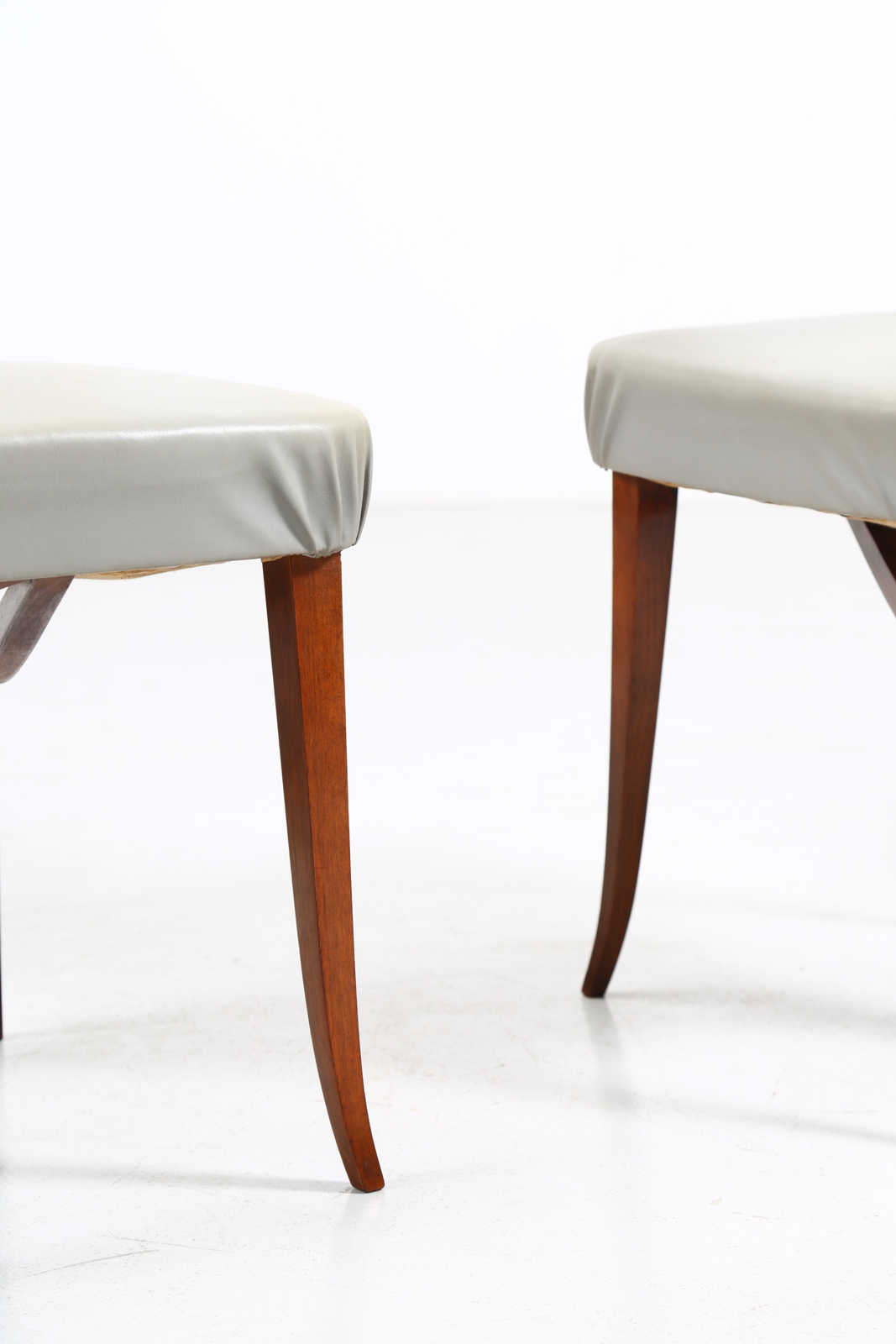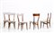BEGA MELCHIORRE (1898 - 1976) Six chairs. walnut wood and skai. Cm 44,00 x 93,00 x 47,00. Walnut and skai, 50s.