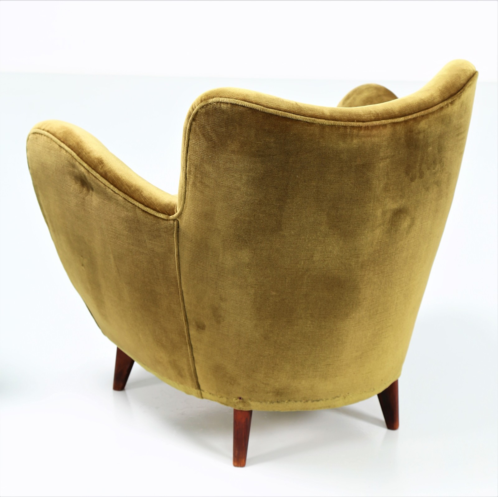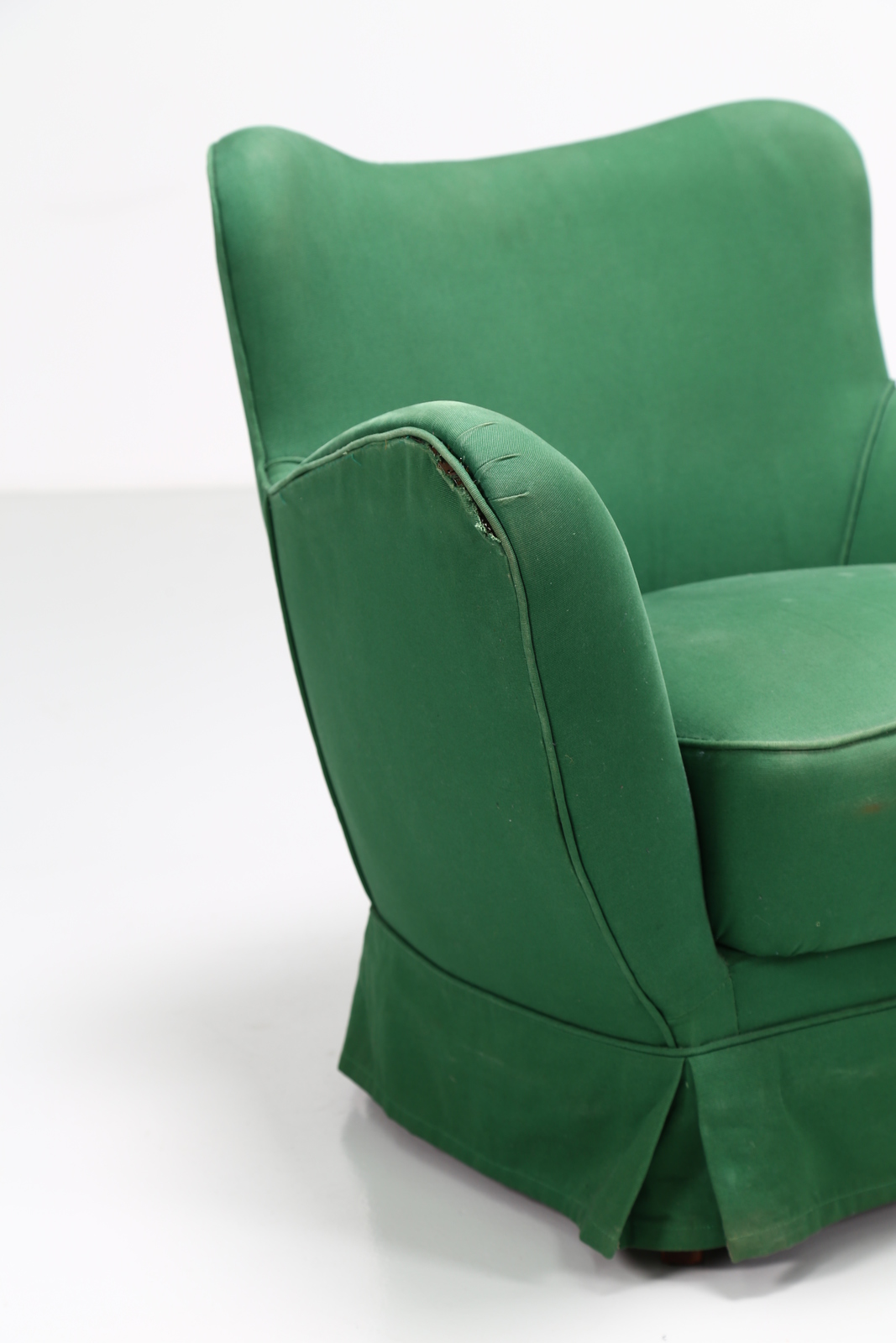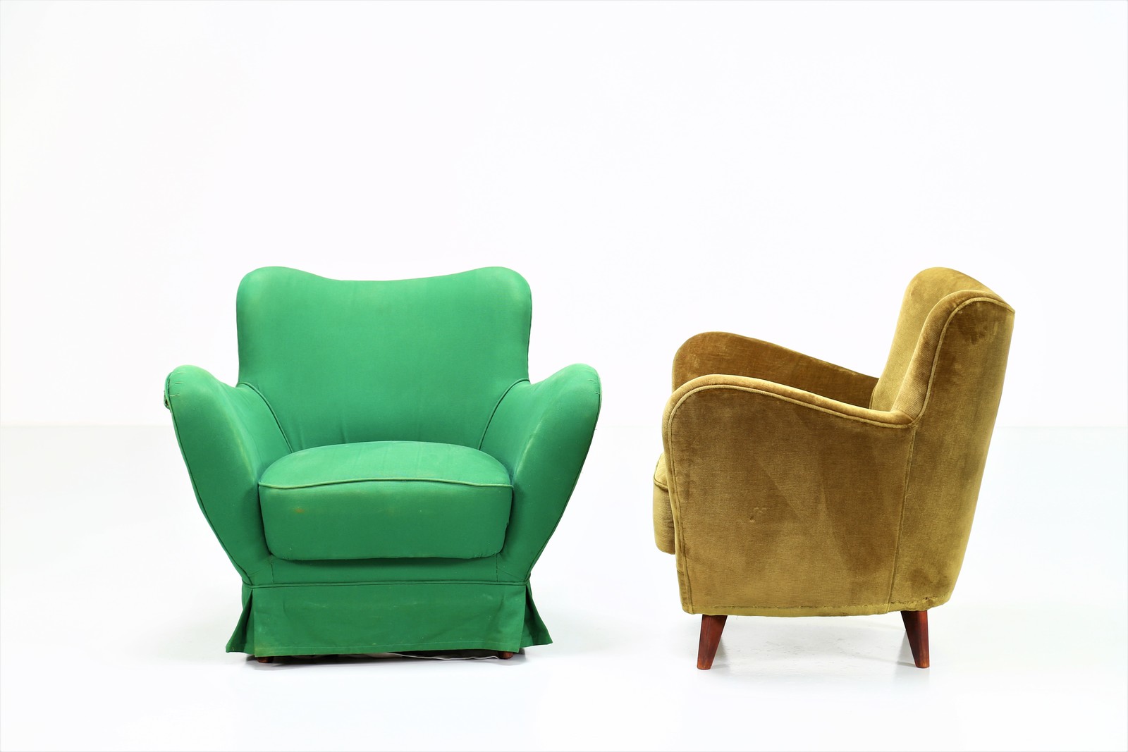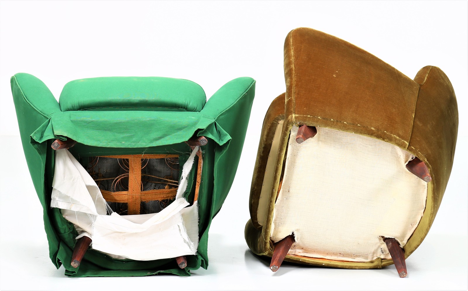 VERONESI GUGLIELMO Pair armchairs. Wood and fabric. Cm 88,00 x 79,00 x 65,00. Wood and fabric, for ISA Bergamo, 50s.
