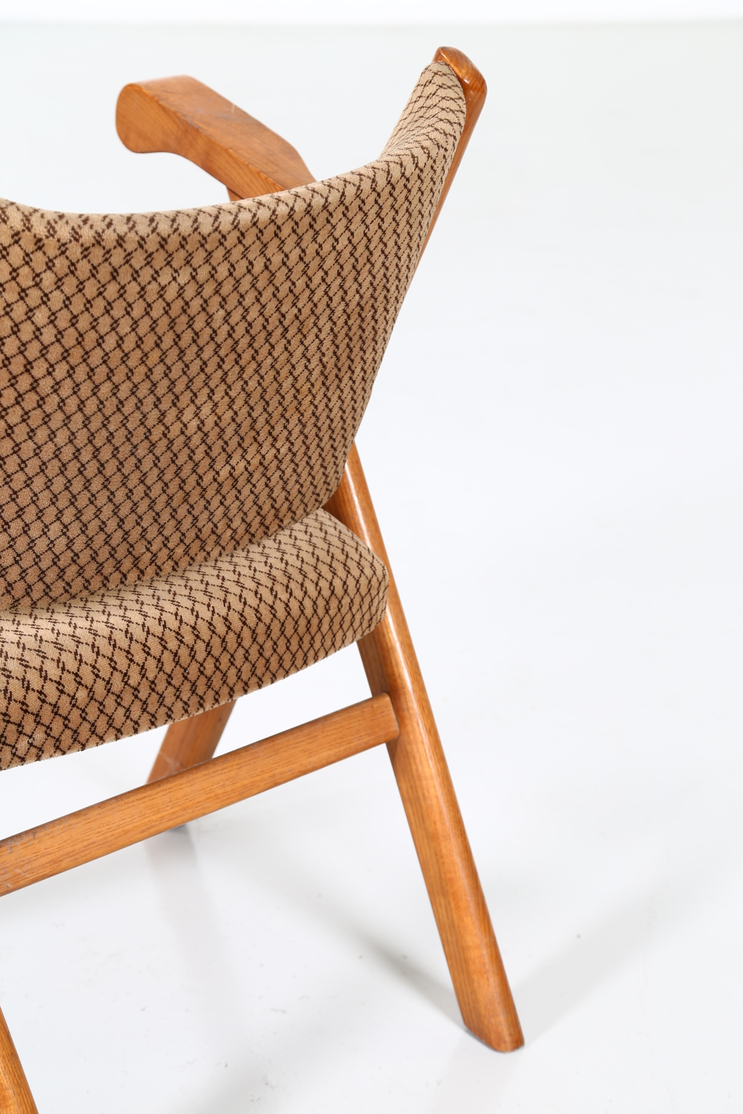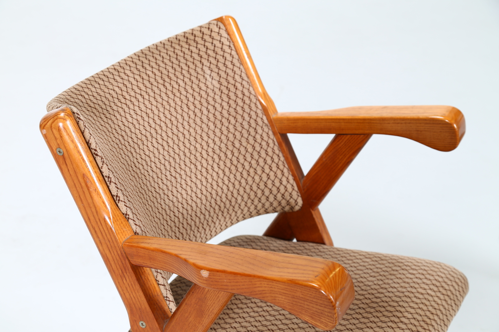 MANIFATTURA ITALIANA Quattordici poltroncine. Legno di frassino e tessuto. Cm 60,00 x 80,00 x 56,00. Legno di frassino e tessuto, anni 60.