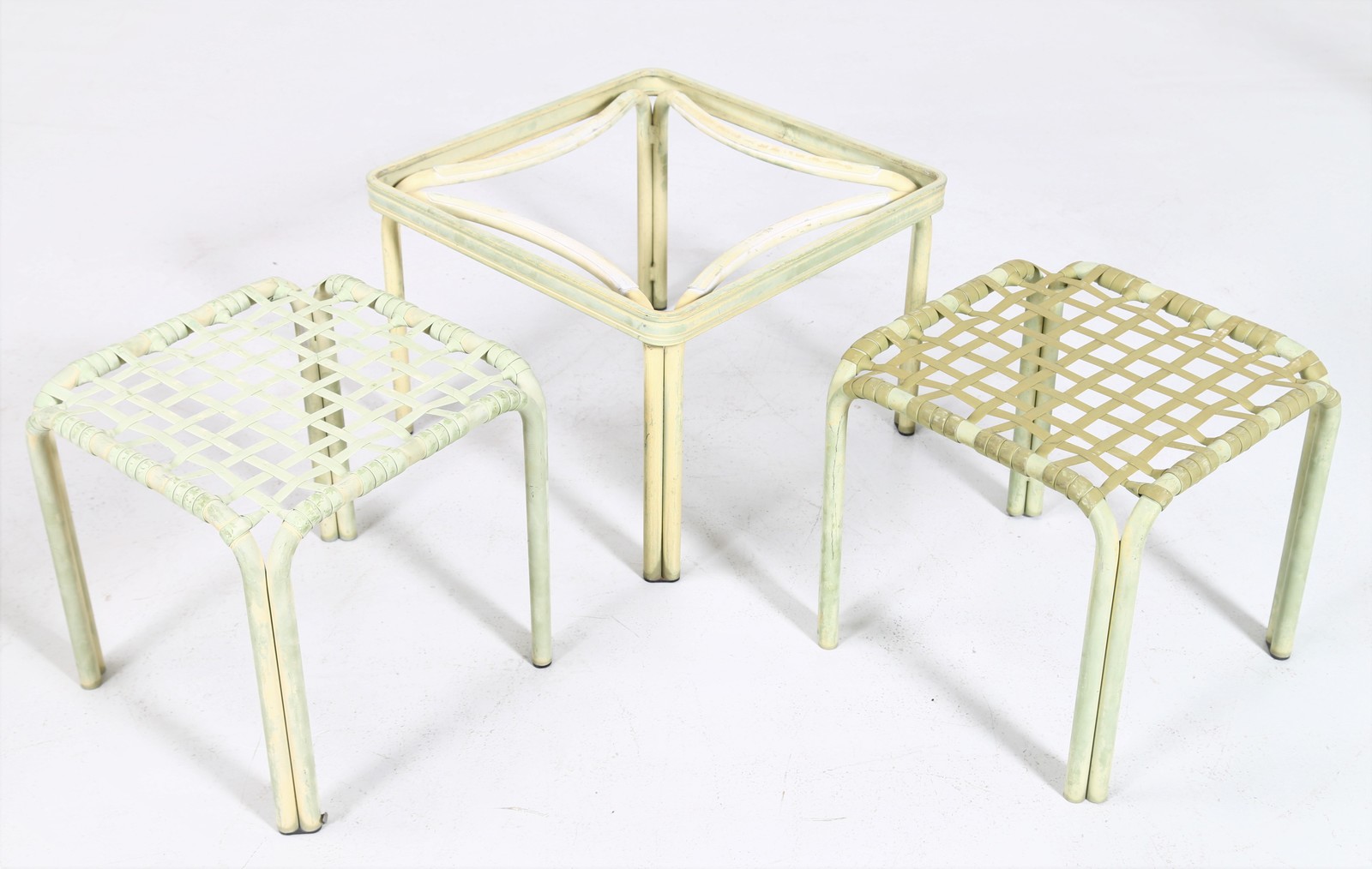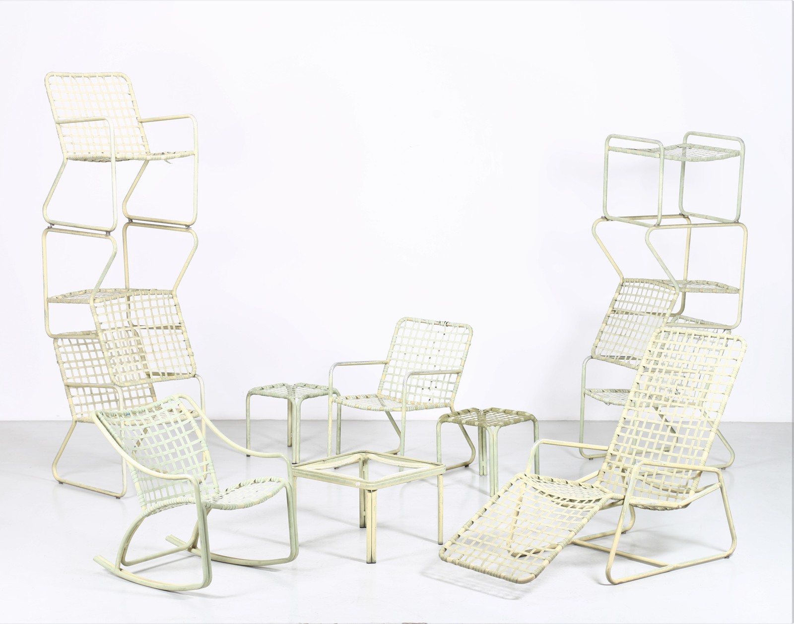 BROWN JORDAN Set da esterno. Metallo e plastica. Cm 62,00 x 98,00 x 134,00. Metallo e plastica. Prodotto da Gordon Furniture per Brown Jordan. Anni 60.