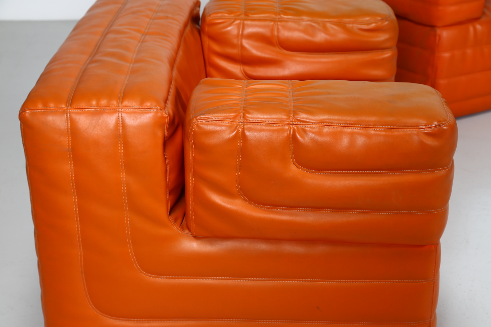 ITALIAN MANUFACTURE Pair of sofas and an armchair. Skai. Cm 240,00 x 72,00 x 92,00. Plastic and original skai, 1960s. Size: Small sofa H 72 L 193 D 92 Armchair H 72 L 110 D 92