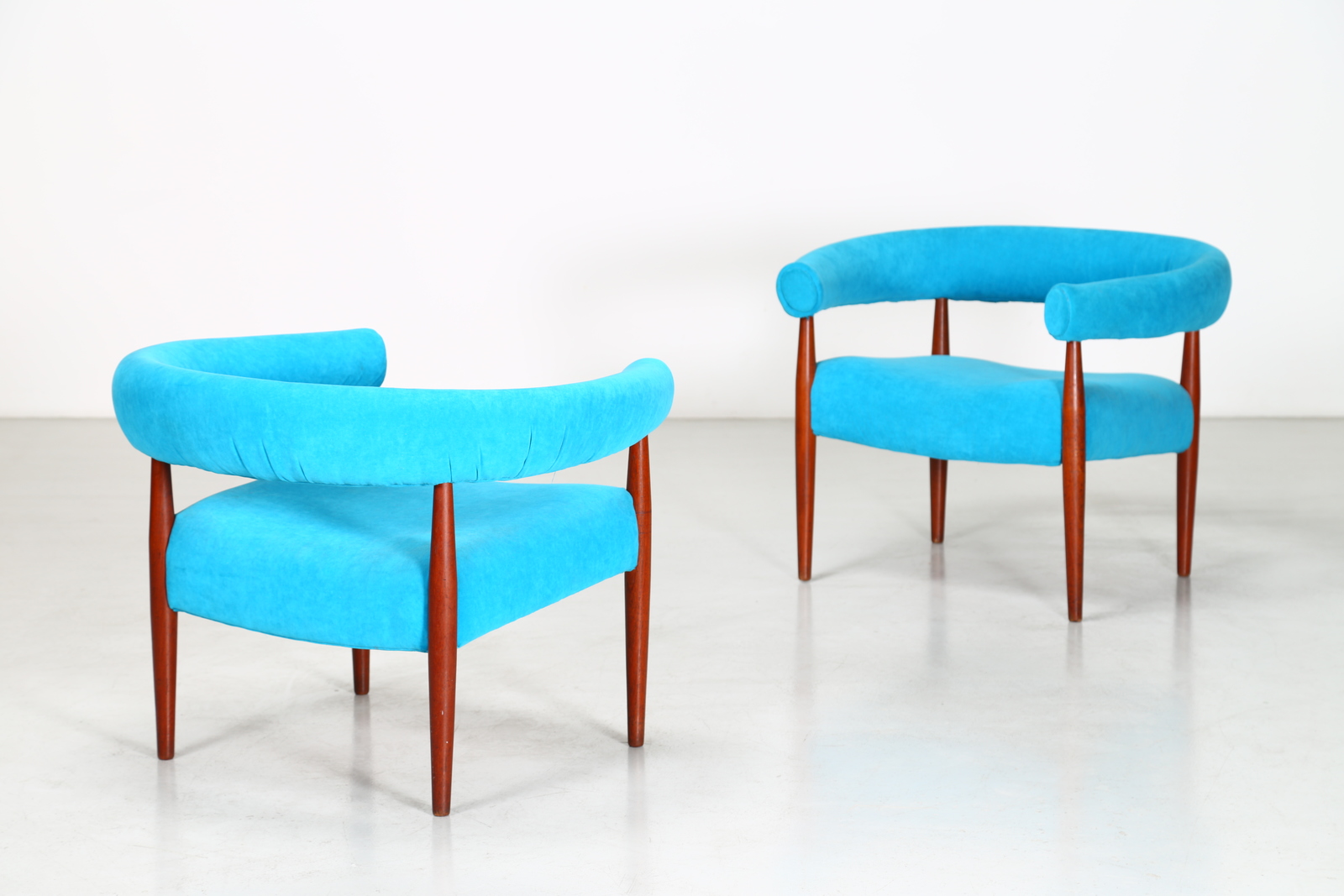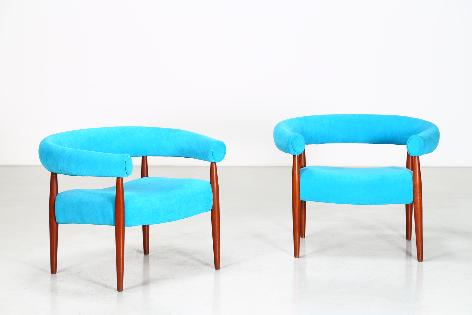 NANNA DITZEL (1923 - 2005) Pair of armchairs. Wood and fabric. Cm 82,00 x 64,00 x 68,00. Wood and fabric, 50s.