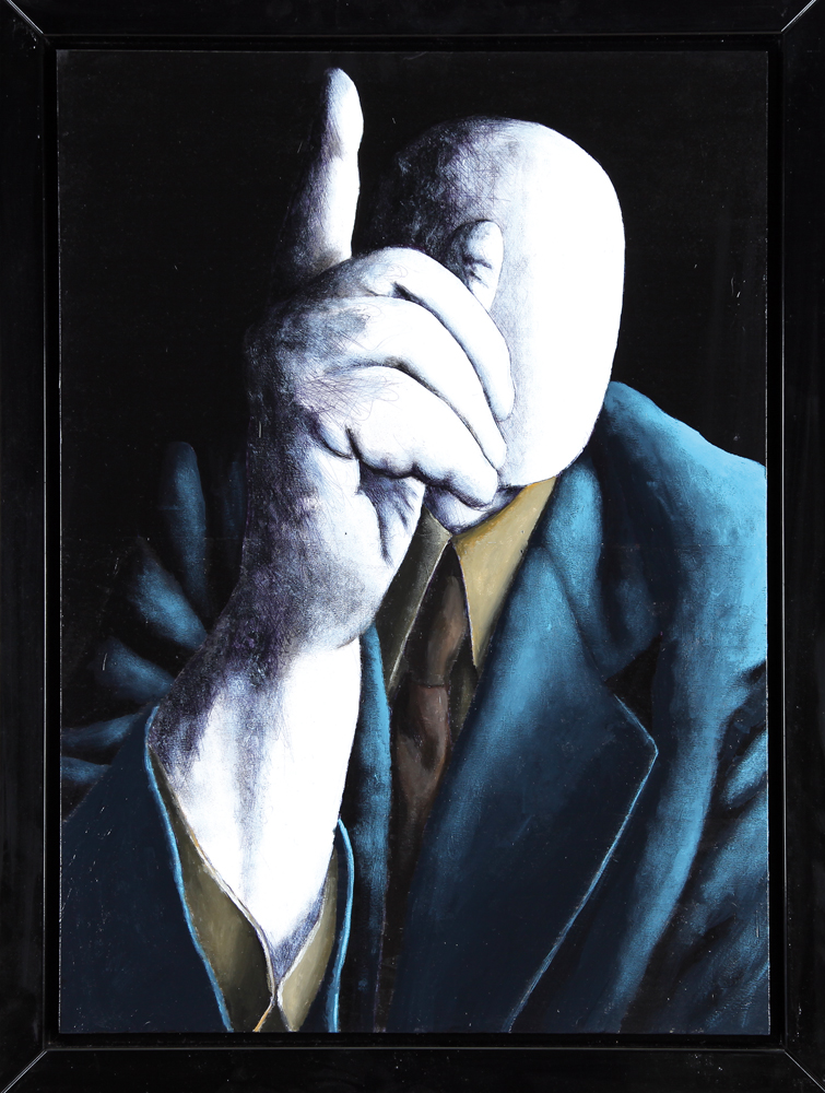 ALFONSO BONAVITA Amantea 10/01/1962  Umane identità perdute tecnica mista su tavola cm. 69,5x49,5; con cornice realizzata dall'artista cm. 79x59, opera non firmata, dichiarazione d'autenticità dell'artista su foto.