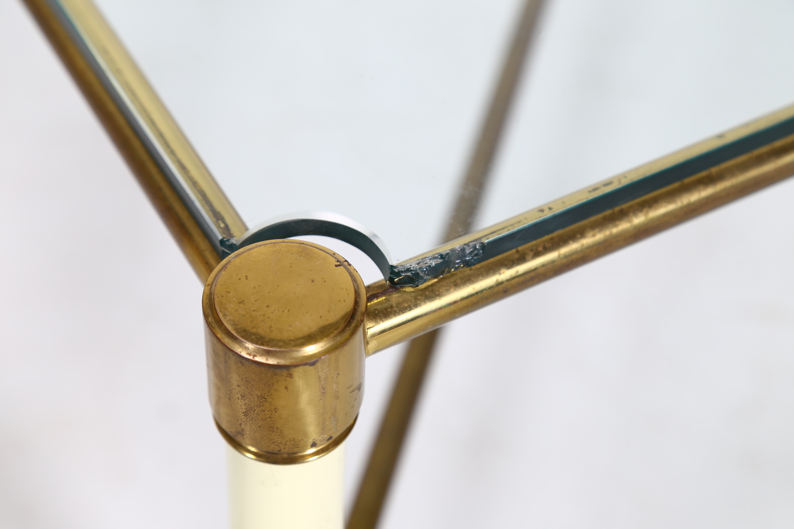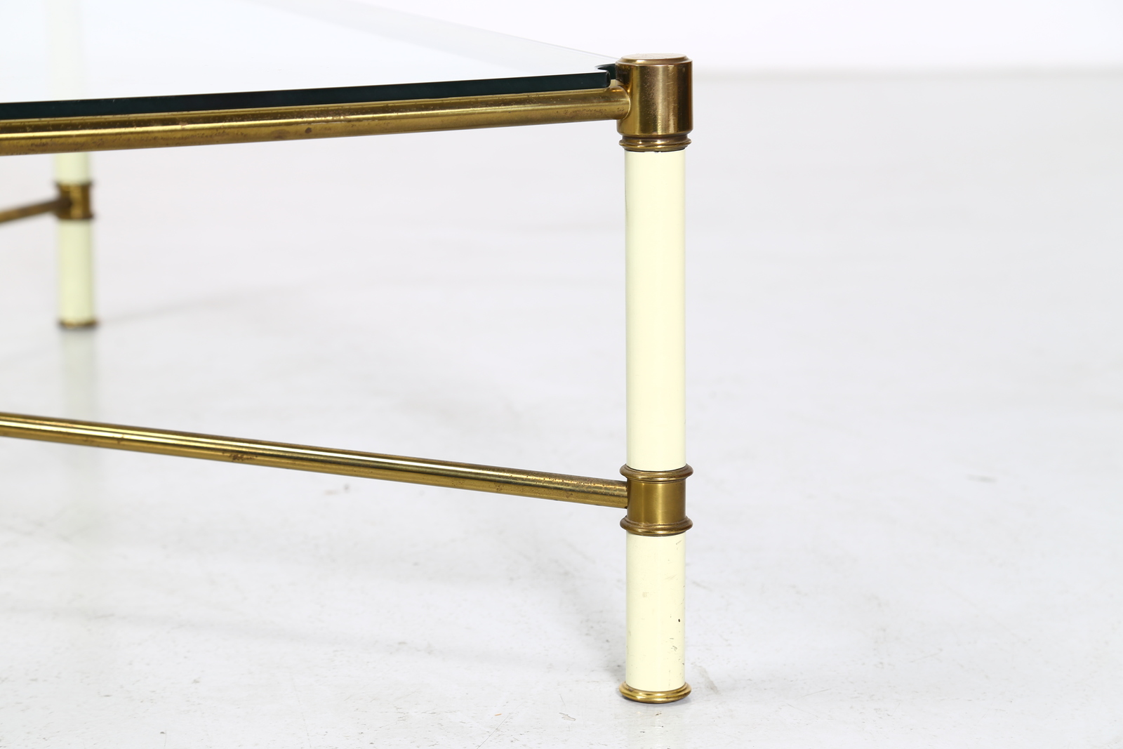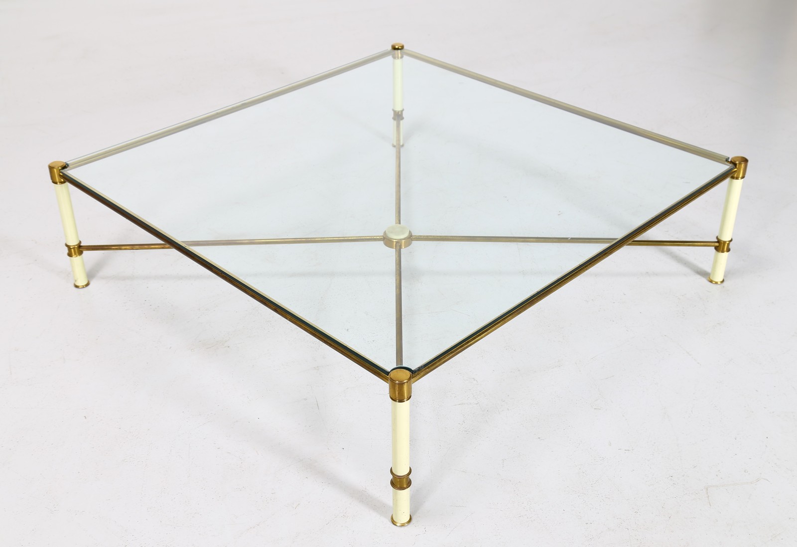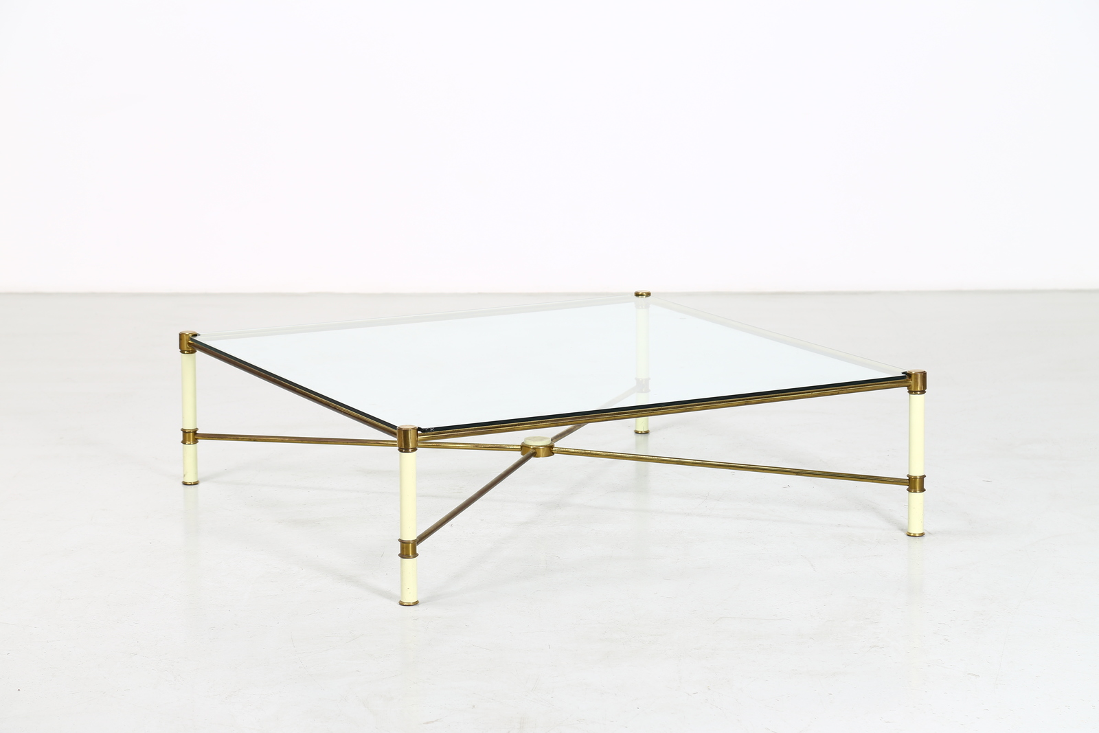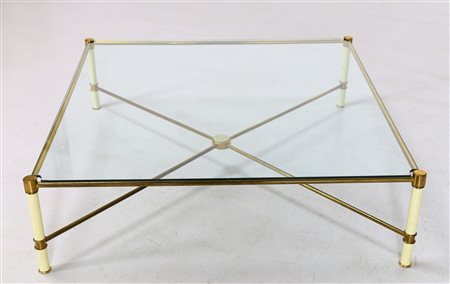 VIVAI DEL SUD Tavolino. Ottone, metallo laccato e vetro. Cm 112,00 x 32,50 x 112,00. Metallo laccato, ottone e vetro. Anni 70.