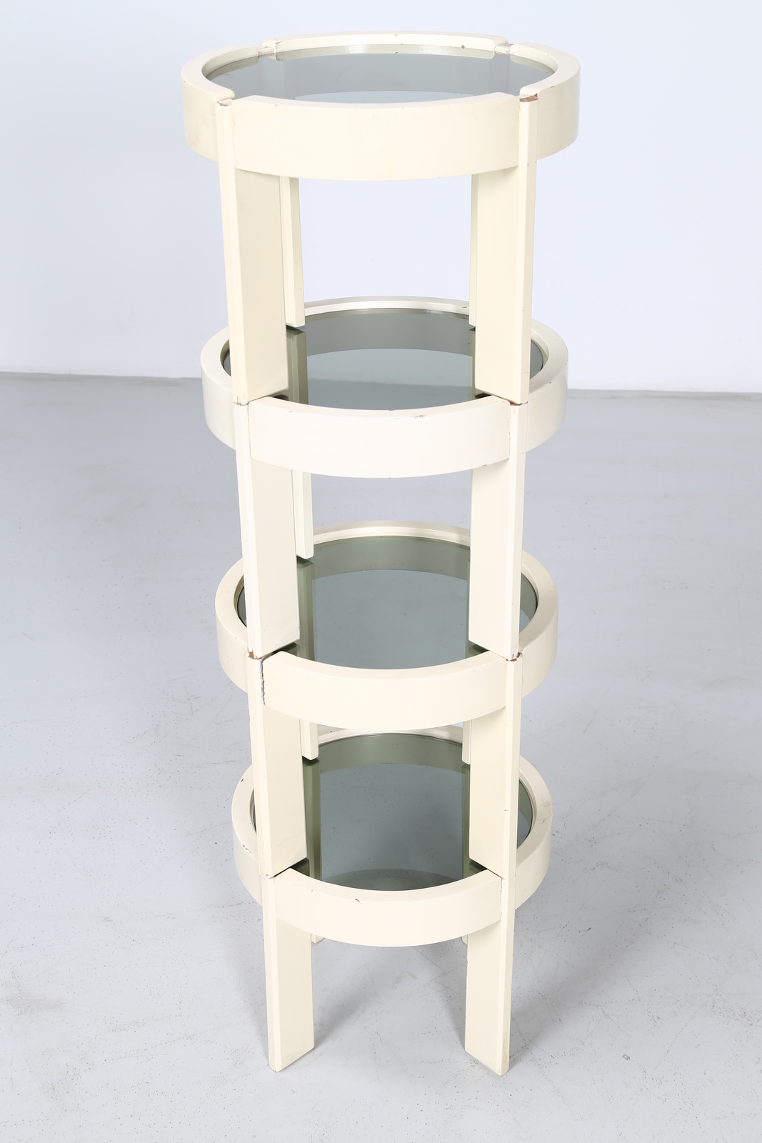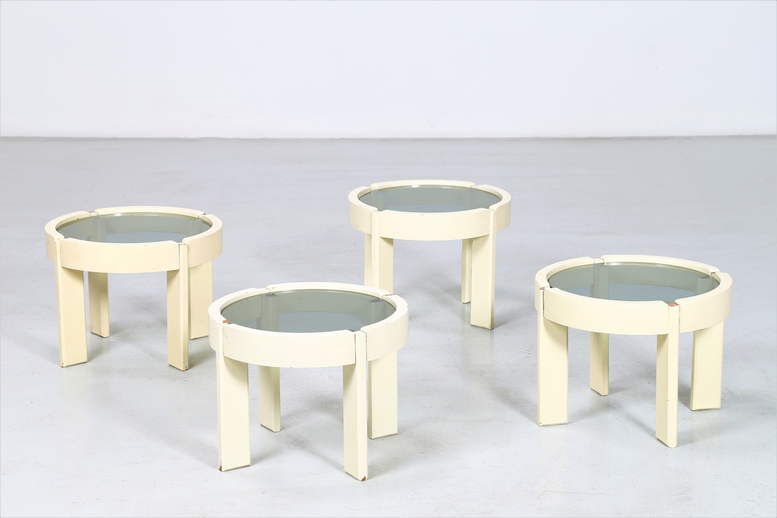ITALIAN MANUFACTURE Four coffee table. . Cm 41,00 x 30,00 x 41,00. Glass and lacquered wood, 70s.