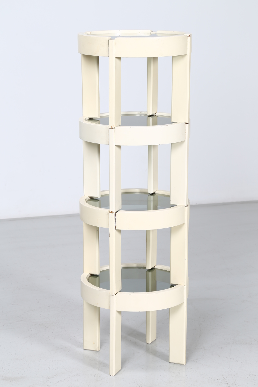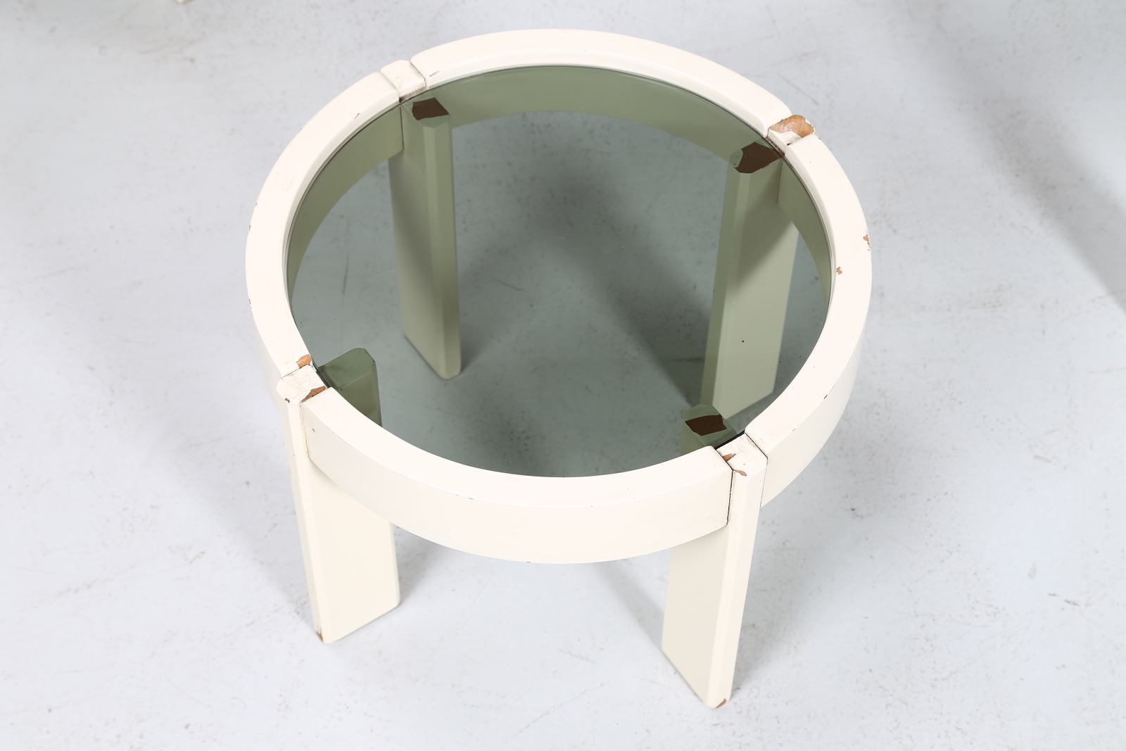 MANIFATTURA ITALIANA Quattro tavolini. Vetro e legno laccato. Cm 41,00 x 30,00 x 41,00. Vetro e legno laccato, anni 70.