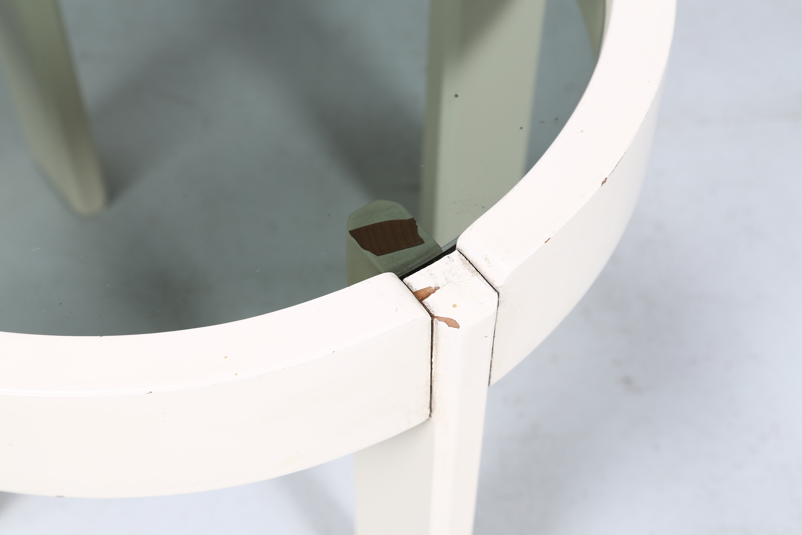 MANIFATTURA ITALIANA Quattro tavolini. Vetro e legno laccato. Cm 41,00 x...