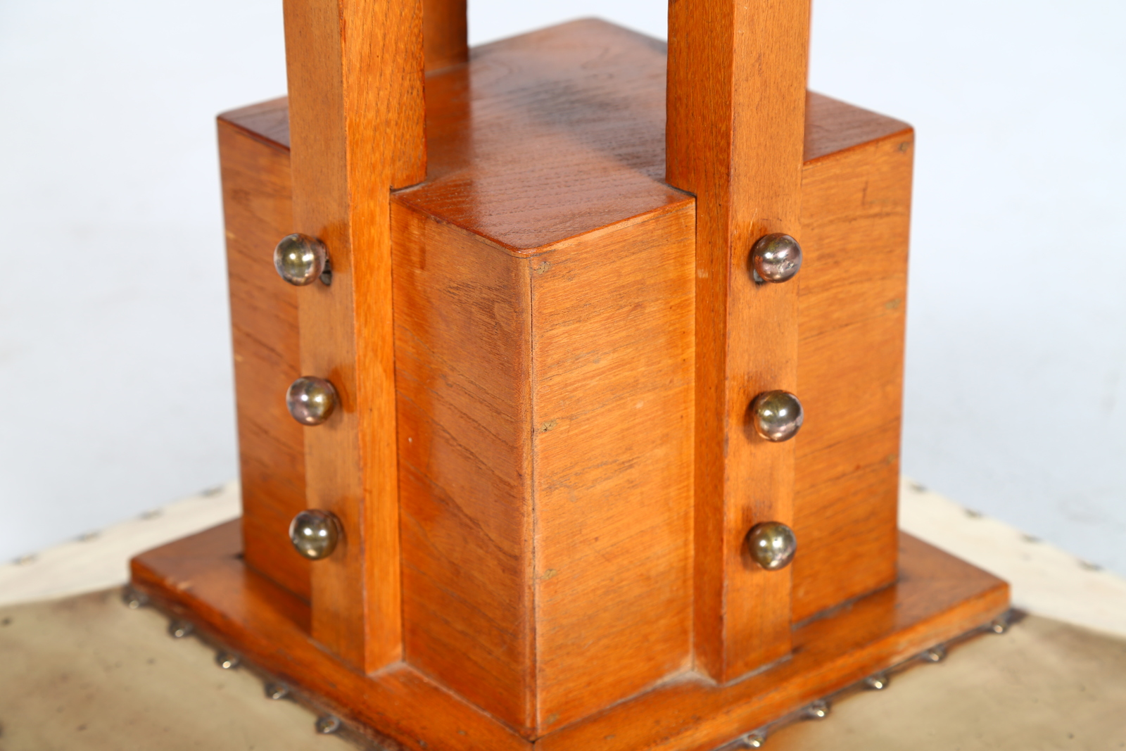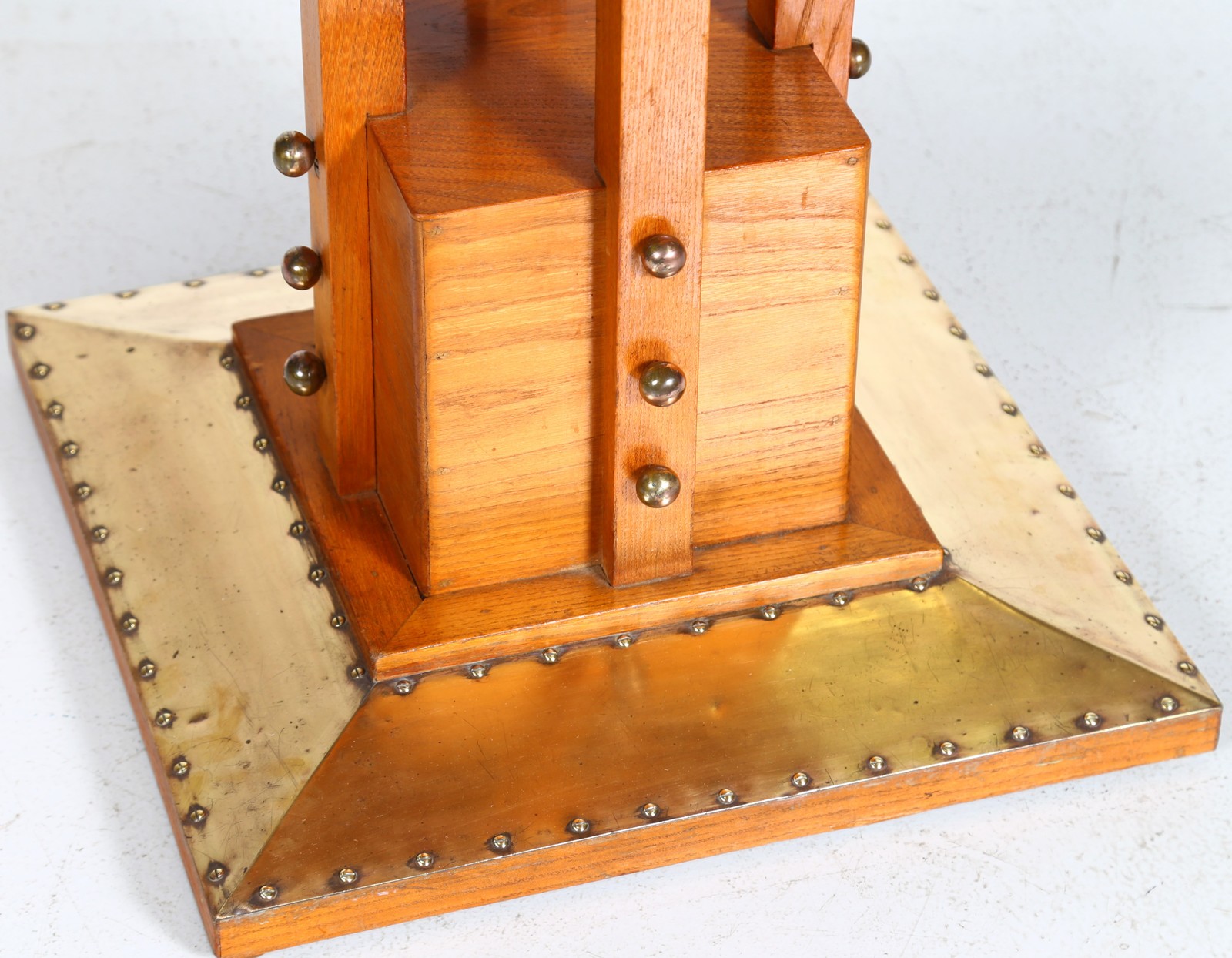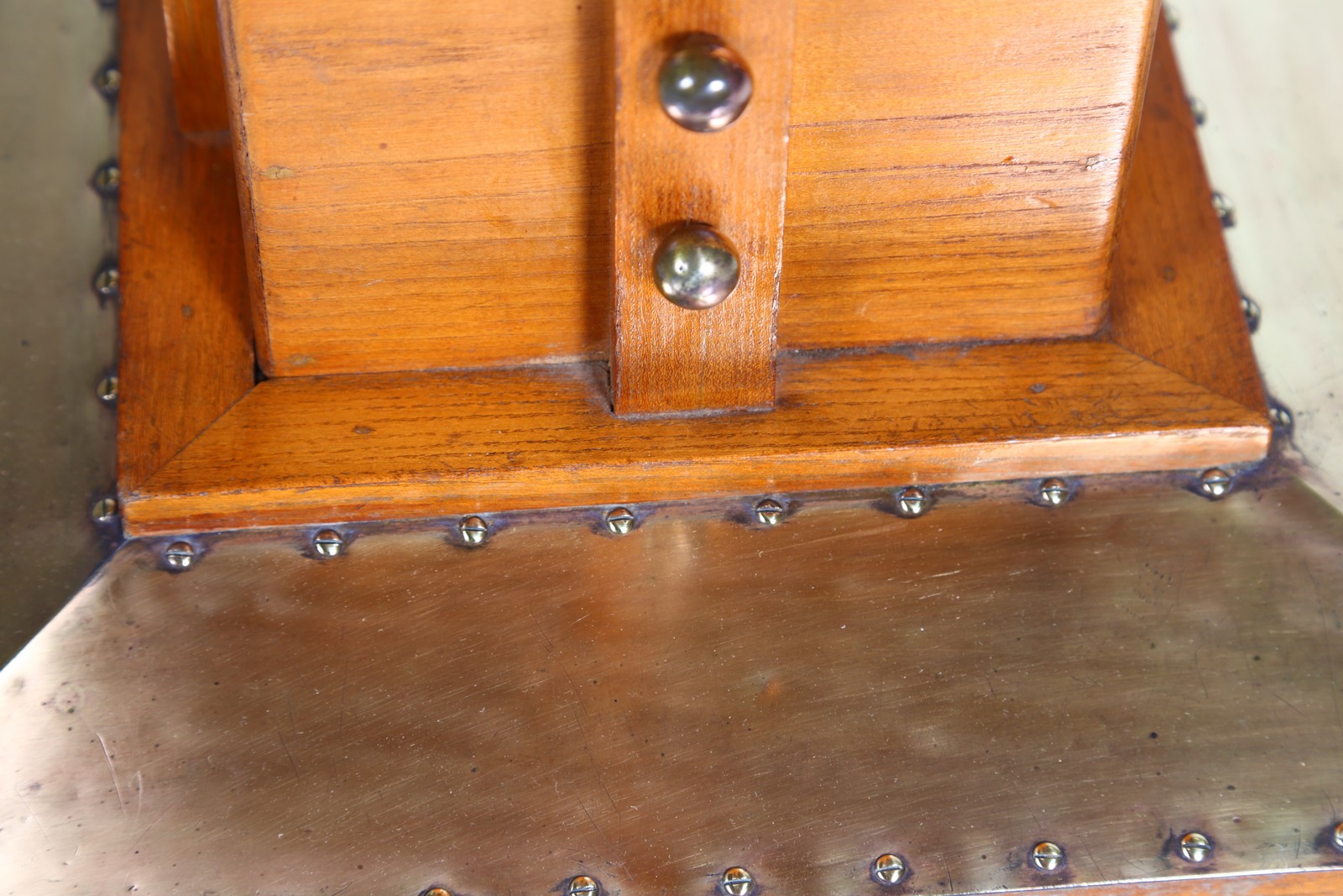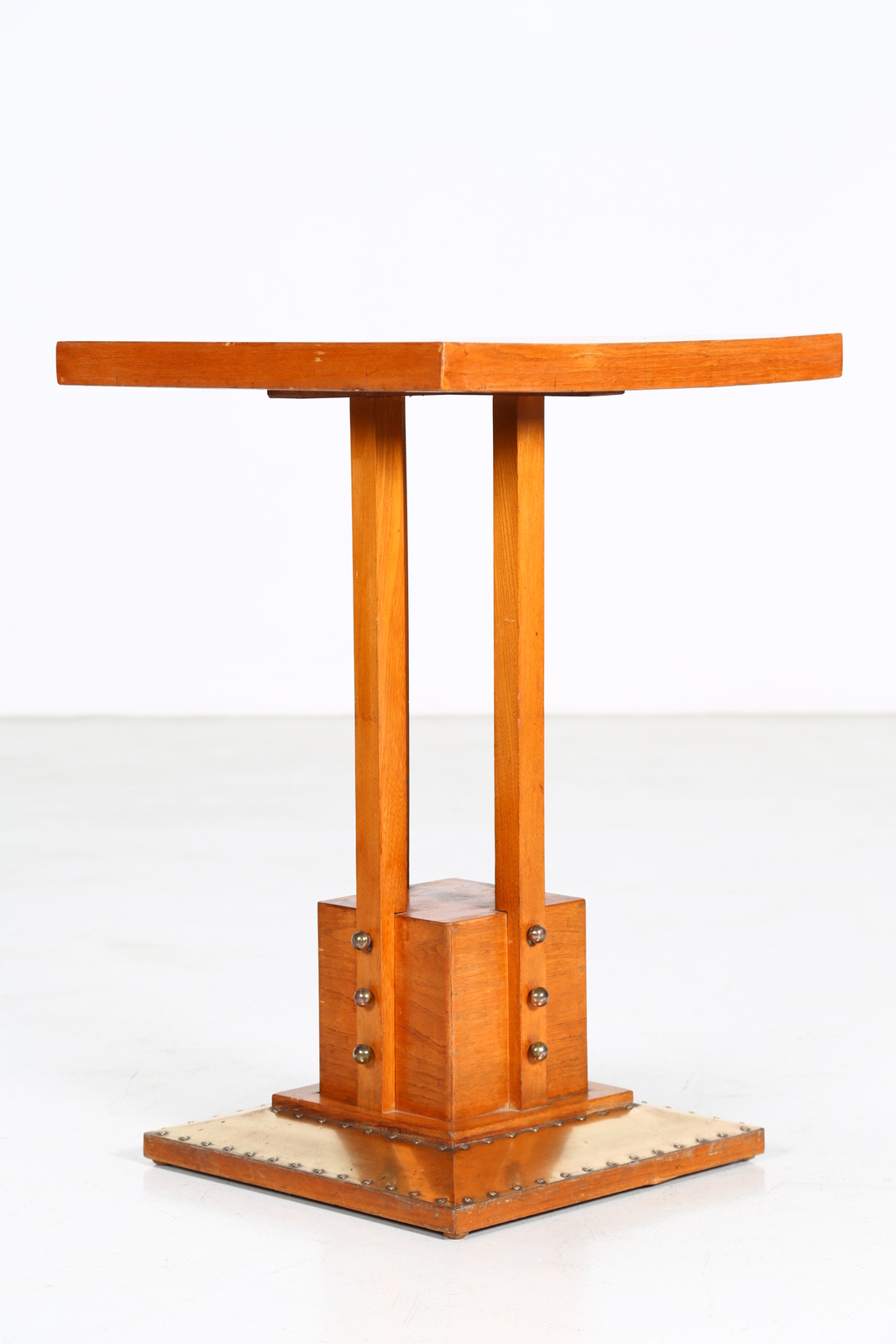MANIFATTURA AUSTRIACA DEL XX SECOLO Tavolino. Legno e ottone. Cm 50,50 x 76,00 x 49,50. Legno di olmo e lamiera di ottone, Secessione viennese.